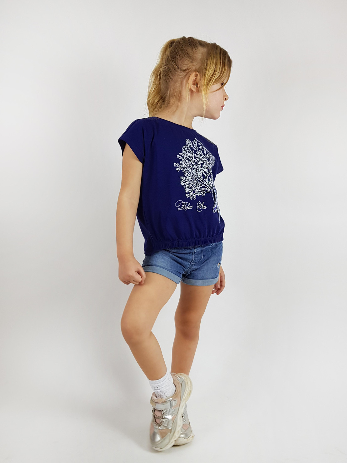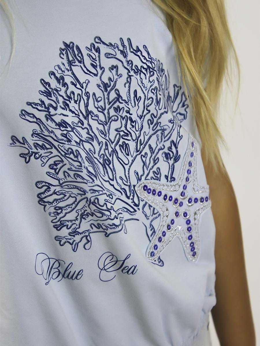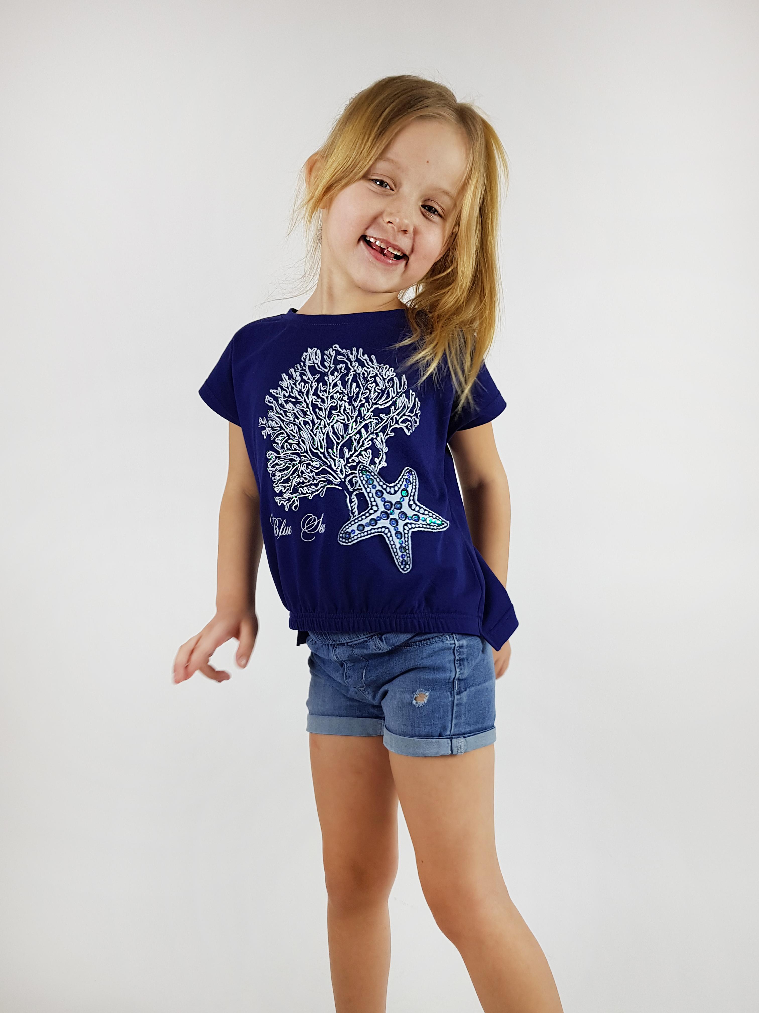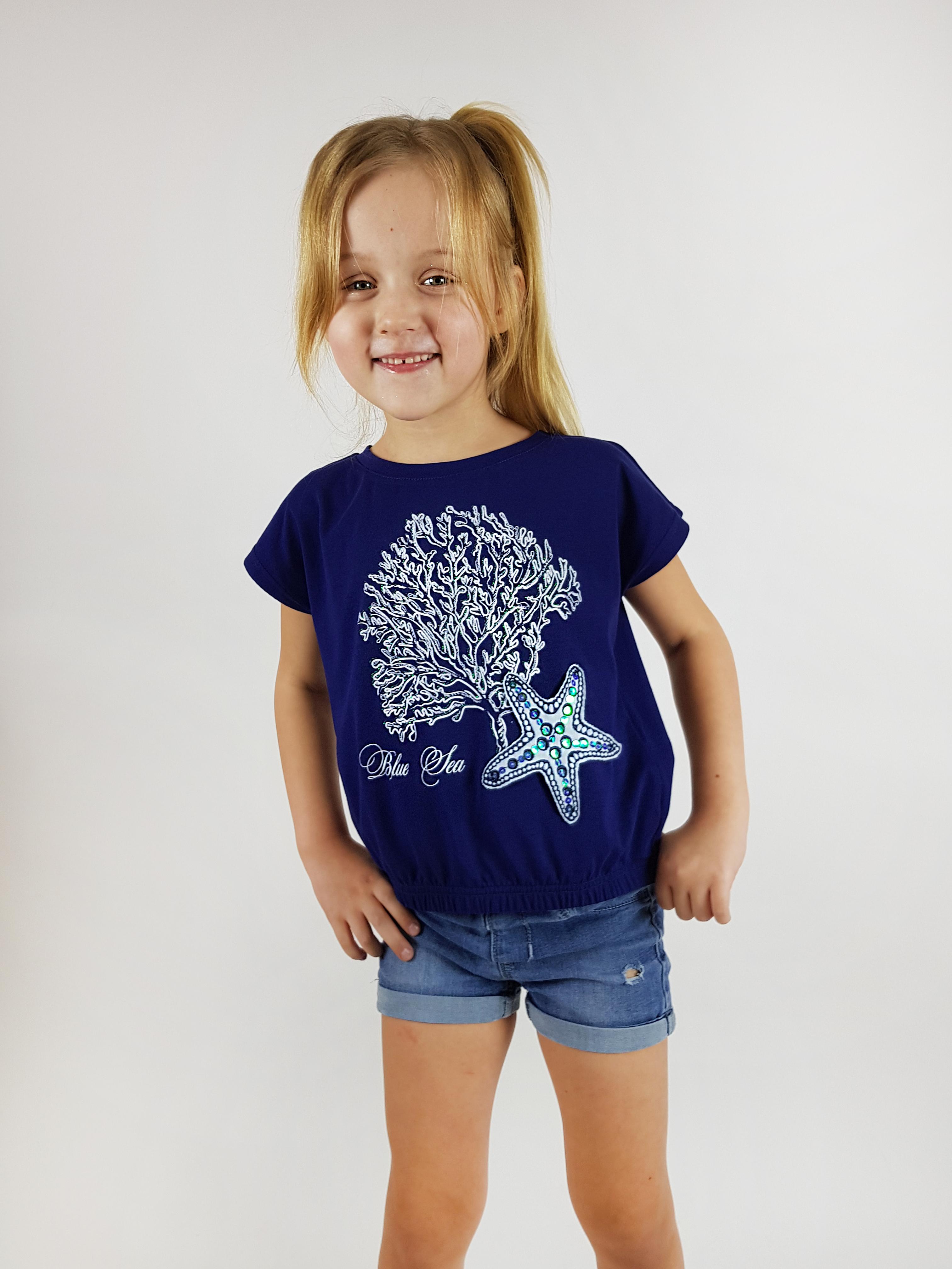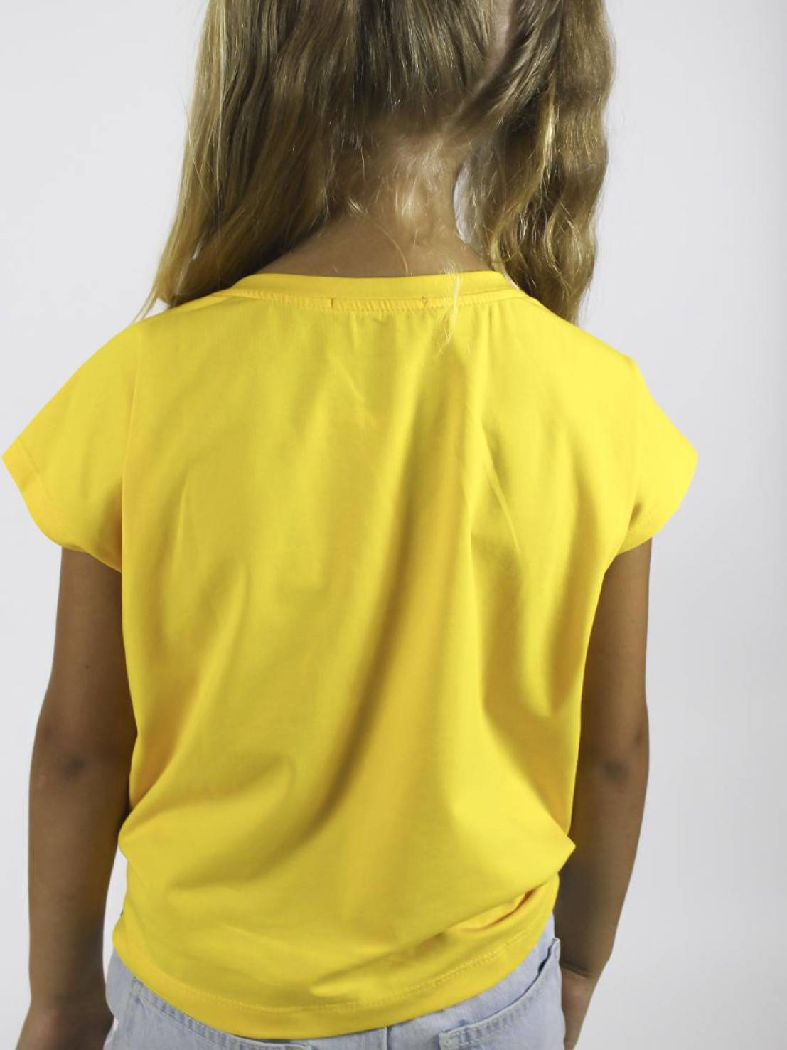 Футболка для девочки изготовлена из кулирного полотна (95 % хлопок, 5% лайкра). Модель прямого силуэта. Оригинальный принт с вышивкой (пайетки) точно понравится юным модницам. Ткань изделия мягкая, дышащая и приятная к телу.