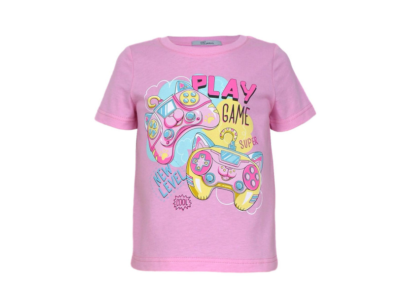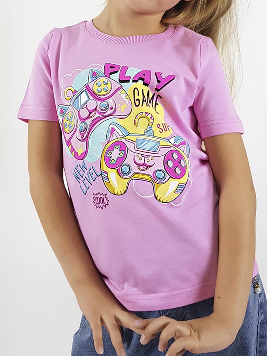Кулирное полотно:100% х/б. Фуфайка-прямой силуэт,печать на переде,короткий втачной рукав.Низ рукава и фуфайки подшит.Горловина обработана ластиком.