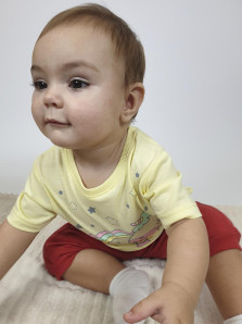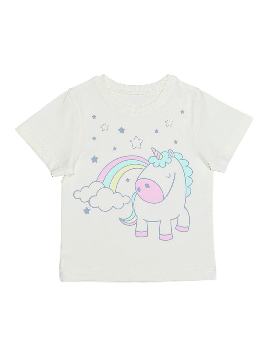 Кулирное полотно:100% х/б. Фуфайка-прямой силуэт,короткий втачной рукав.Горловина обработана ластиком.Печать на переде.