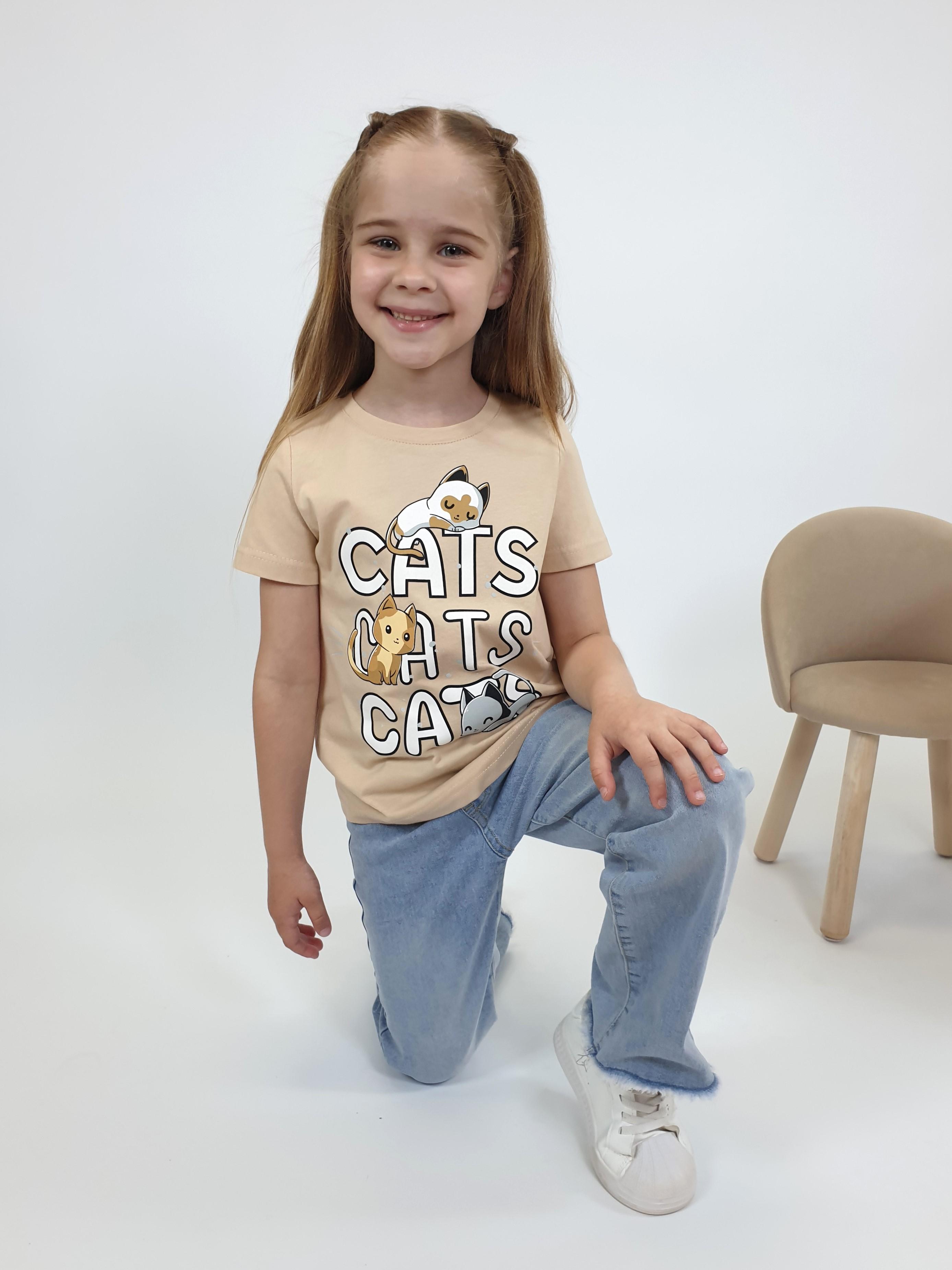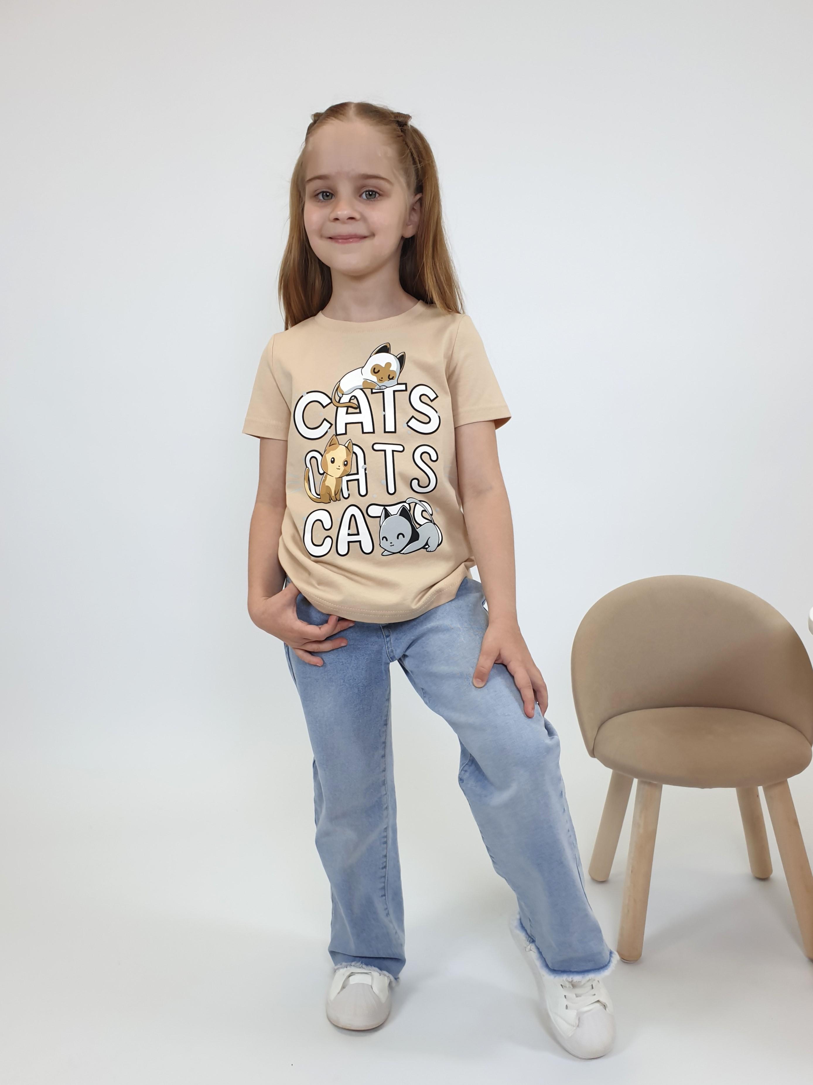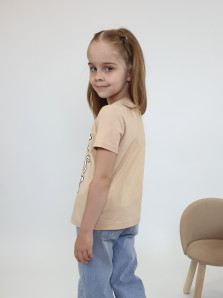 Кулирное полотно:100% х/б. Фуфайка-прямой силуэт,печать на переде,короткий втачной рукав.Низ рукава и фуфайки подшит.Горловина обработана планкой.
