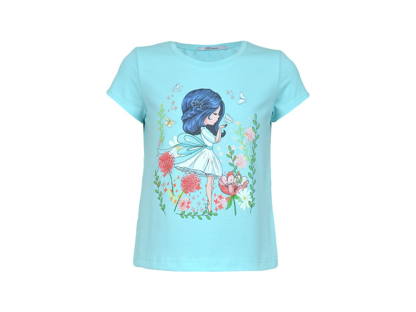 Футболка для девочки изготовлена из кулирного полотна (95% хлопок, 5% лайкра). Модель полуприлегающего силуэта, короткий втачной рукав. Оригинальный принт точно понравится юным модницам. Ткань изделия мягкая, дышащая и приятная к телу.
