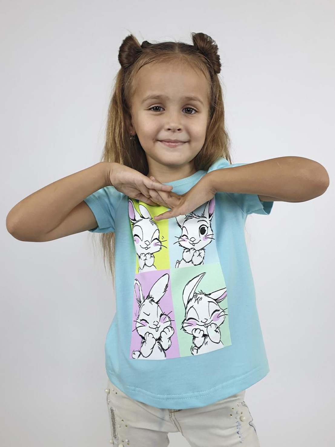 Кулирное полотно:100% х/б. Фуфайка-прямой силуэт,печать на переде,короткий втачной рукав.Низ рукава и фуфайки подшит.Горловина обработана ластиком.