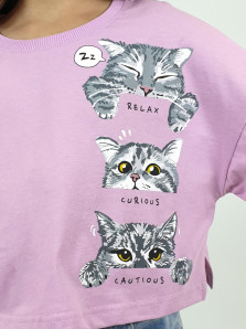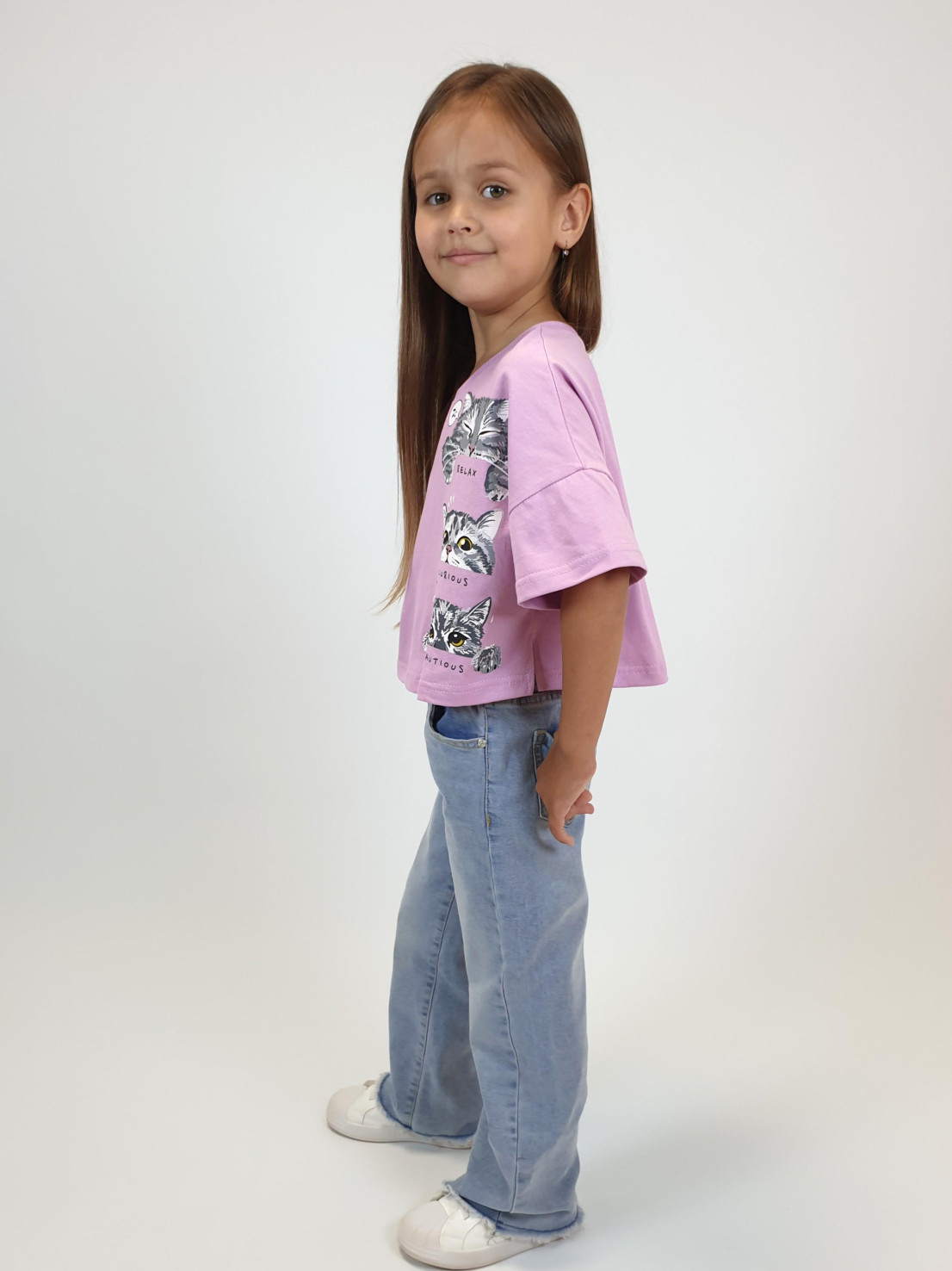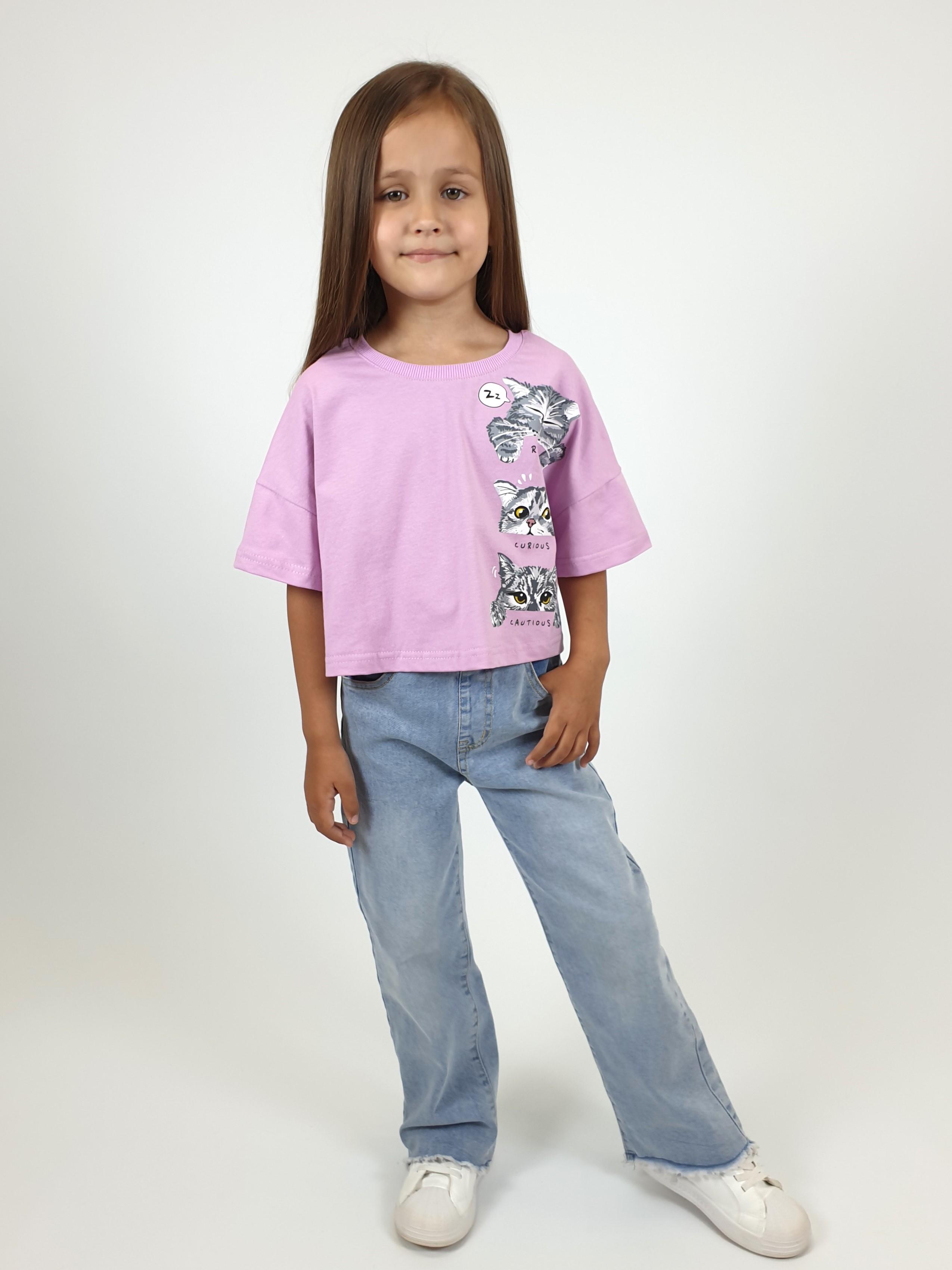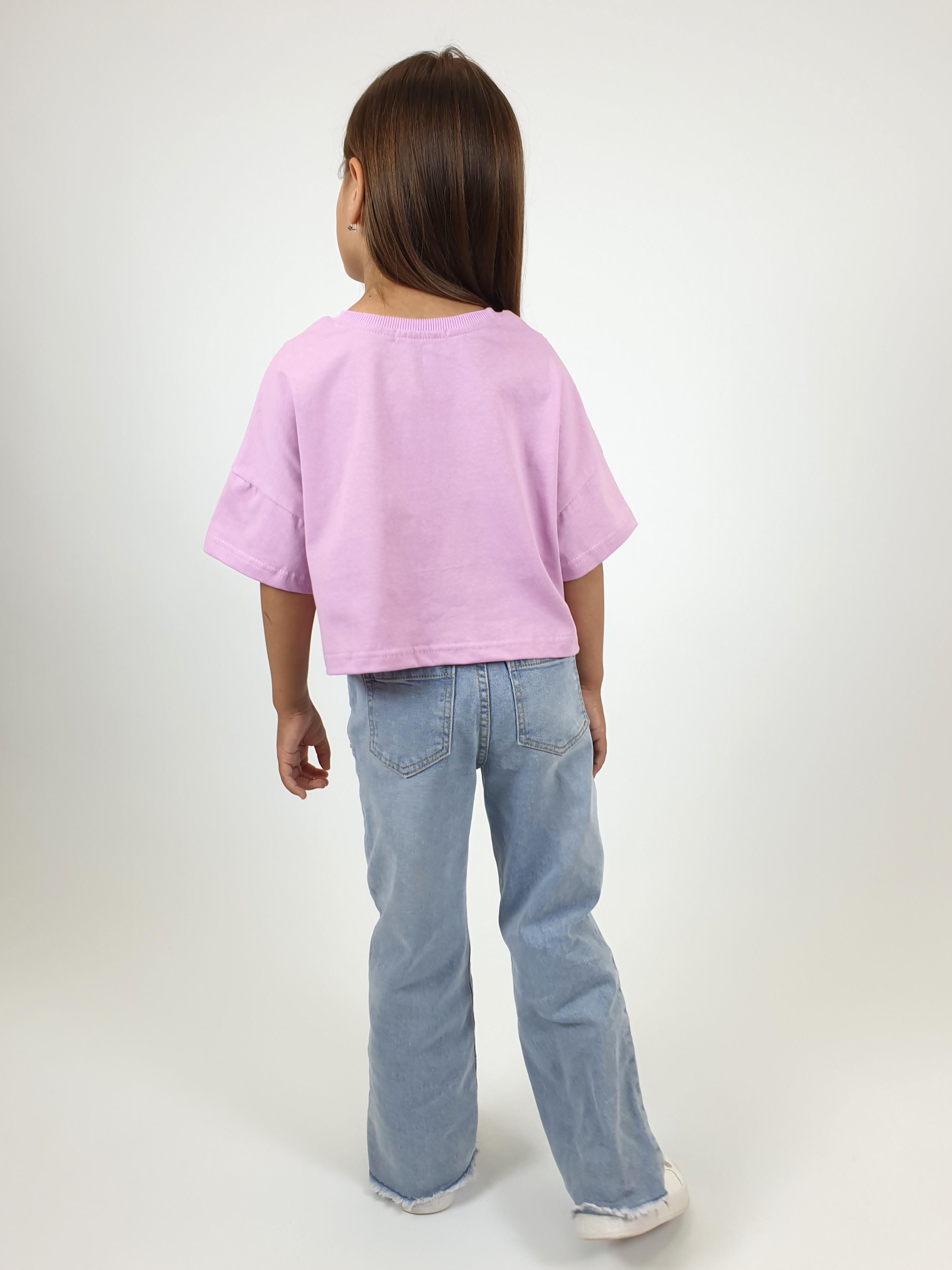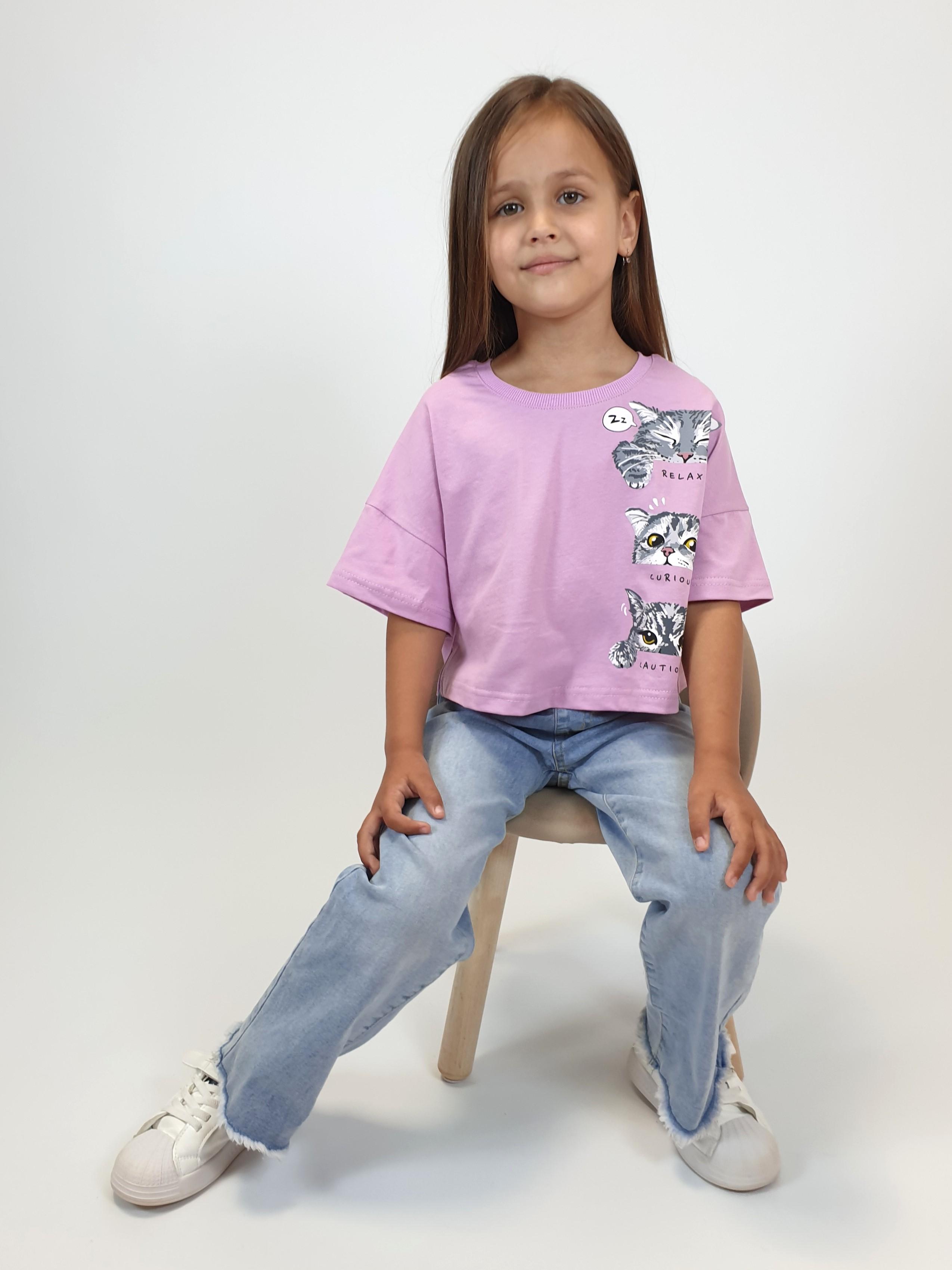Кулирное полотно:100% х/б. Фуфайка(оверсайз)-укороченная,спущенное плечо,короткий рукав.Печать на переде,горловина обработана планкой(рибаной).В боковых швах разрезы.