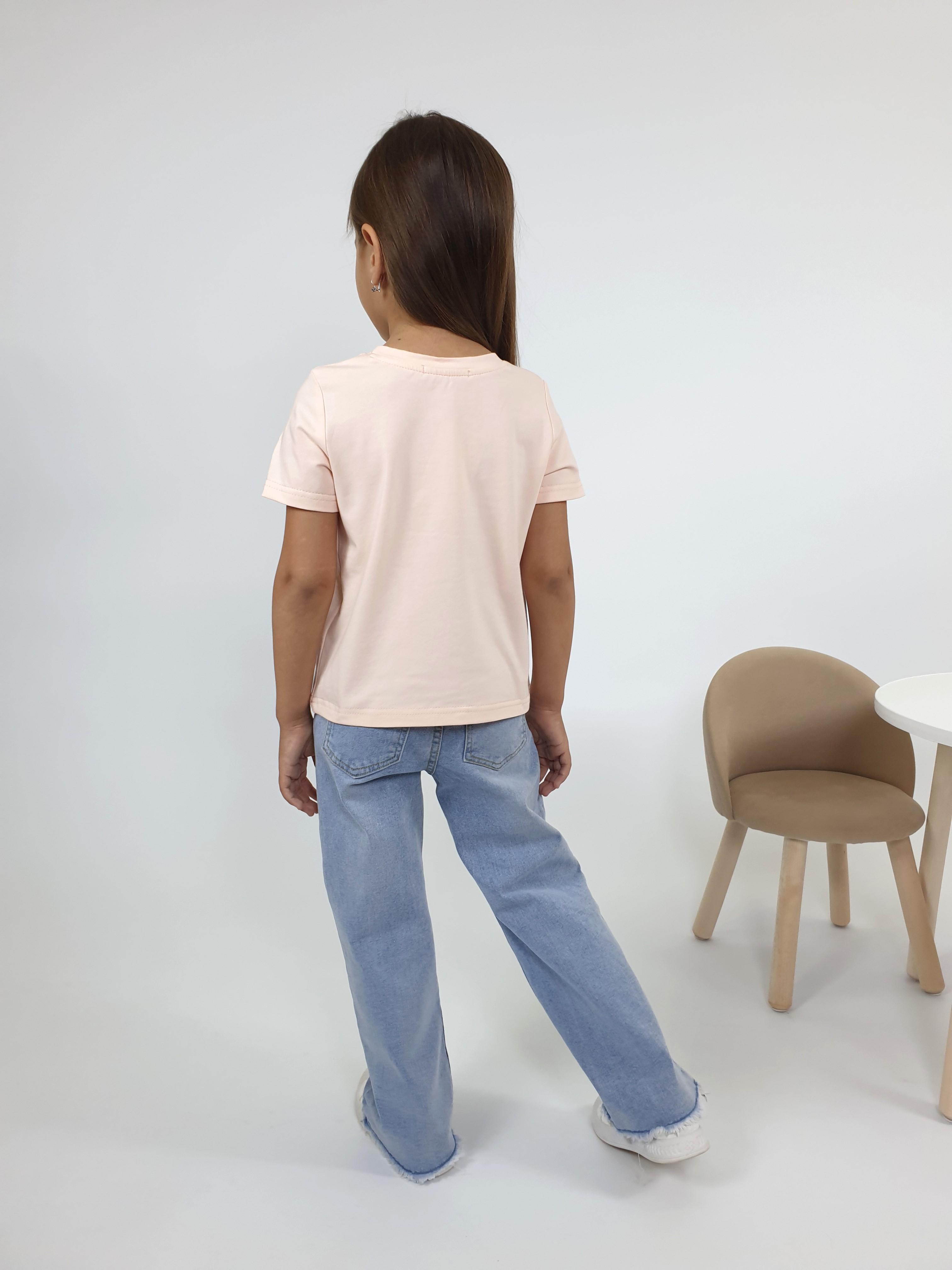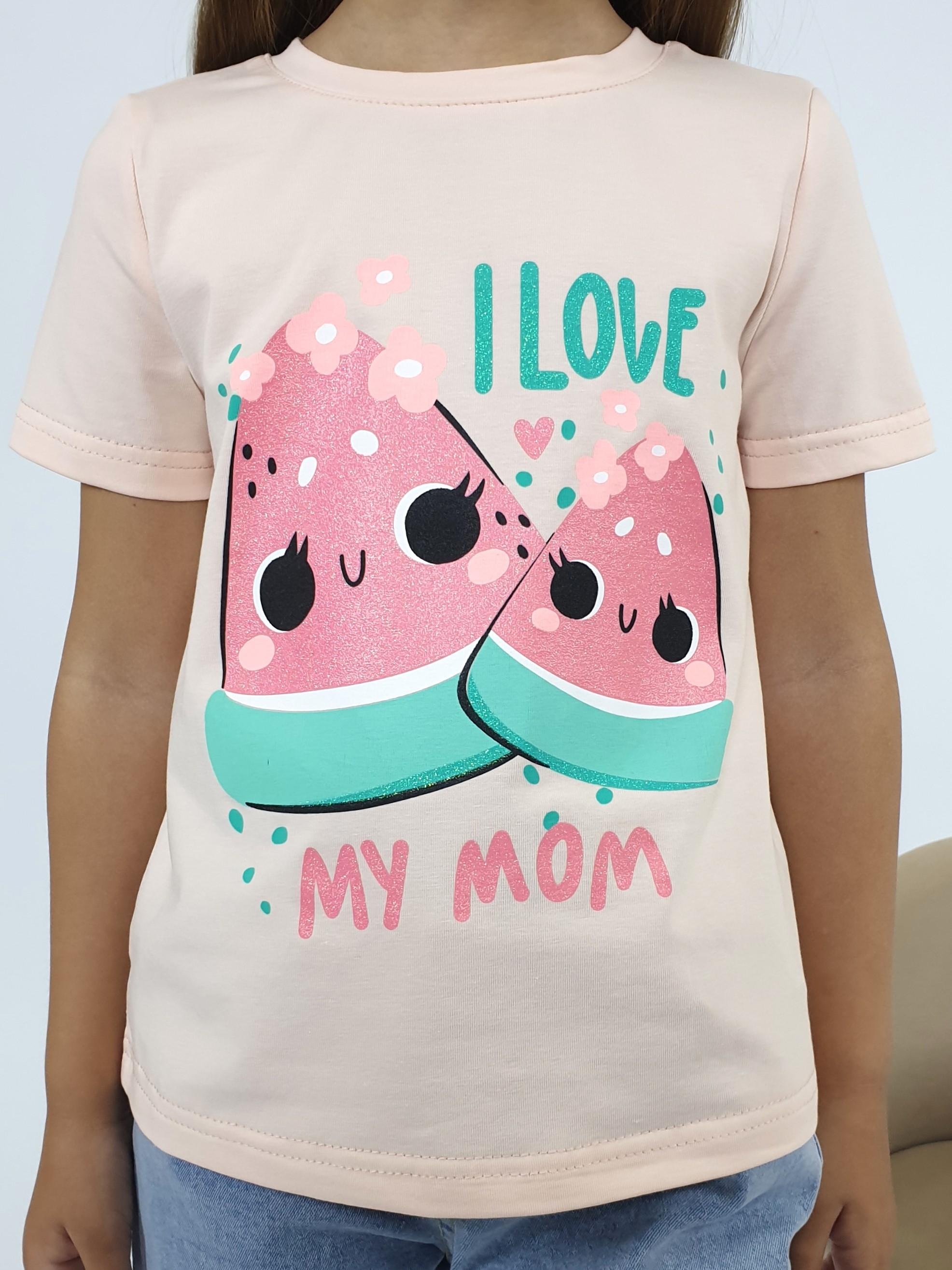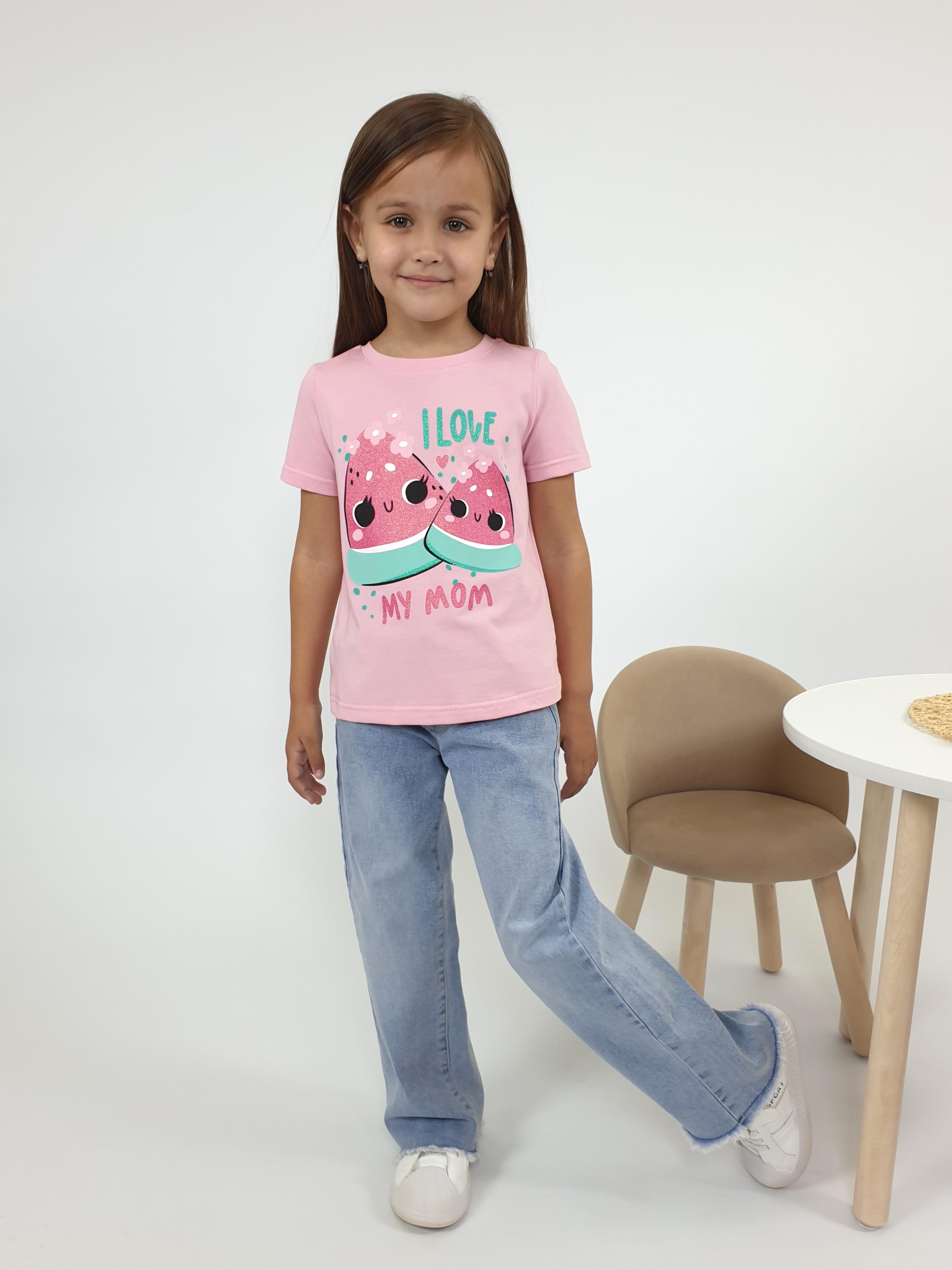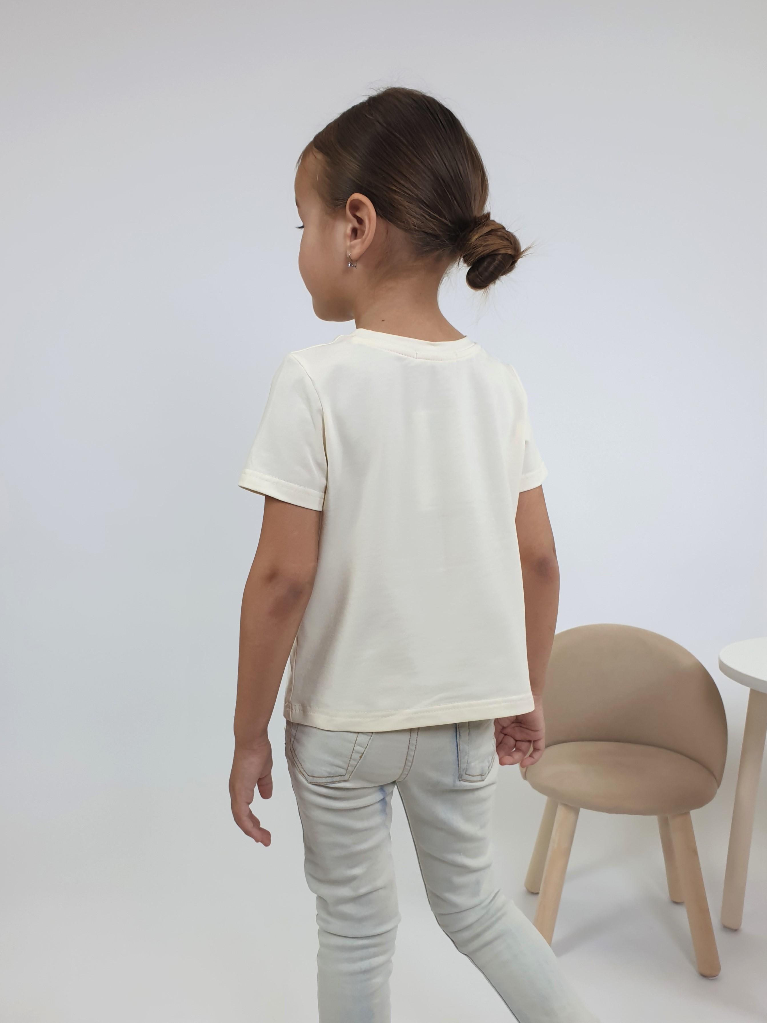Кулирное полотно:95% х/б,5% лайкра. Фуфайка-прямой силуэт,печать на переде,короткий втачной рукав.Низ рукава и фуфайки подшит.Горловина обработана ластиком.