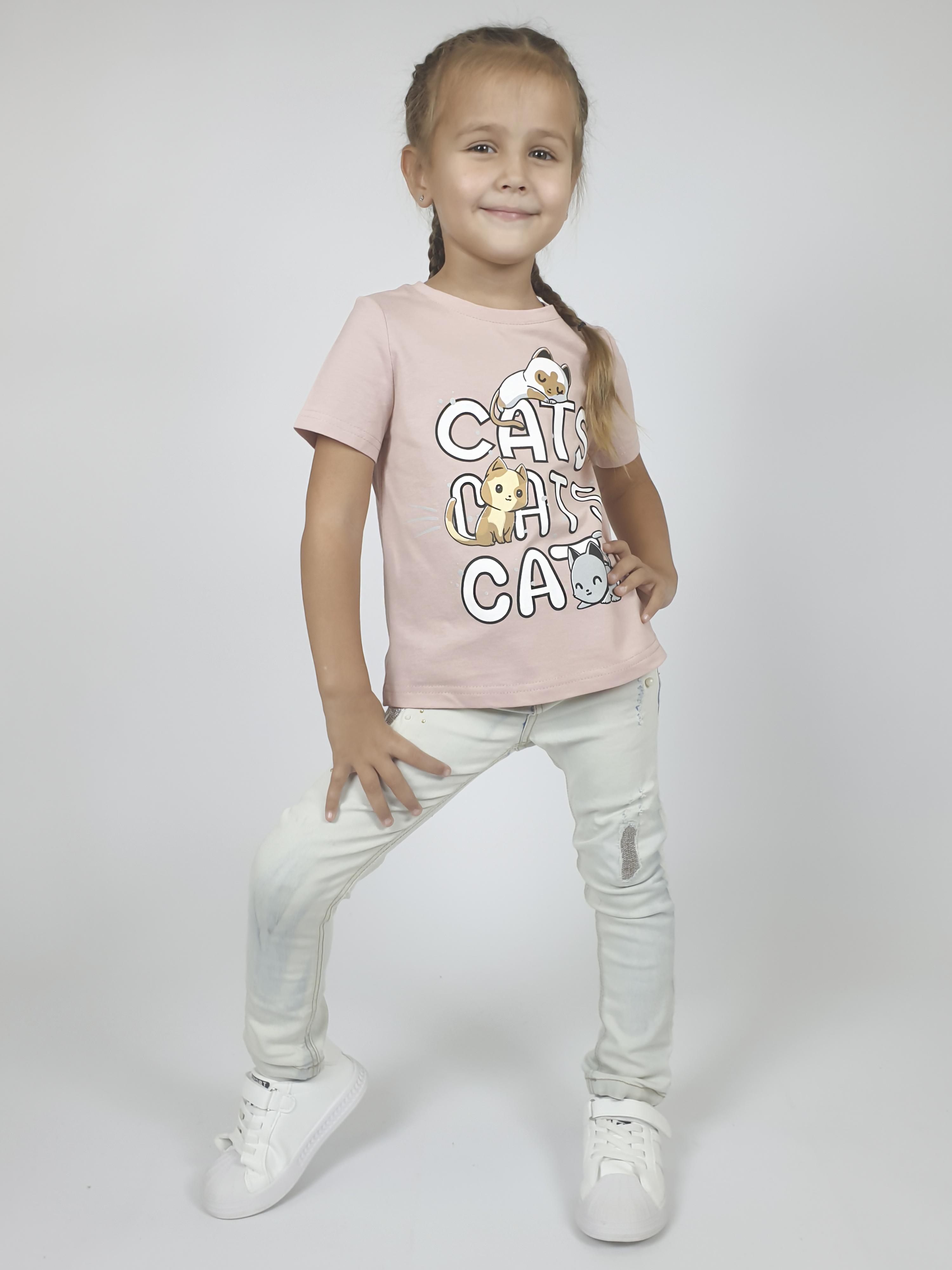 Кулирное полотно:100% х/б. Фуфайка-прямой силуэт,печать на переде,короткий втачной рукав.Низ рукава и фуфайки подшит.Горловина обработана планкой.