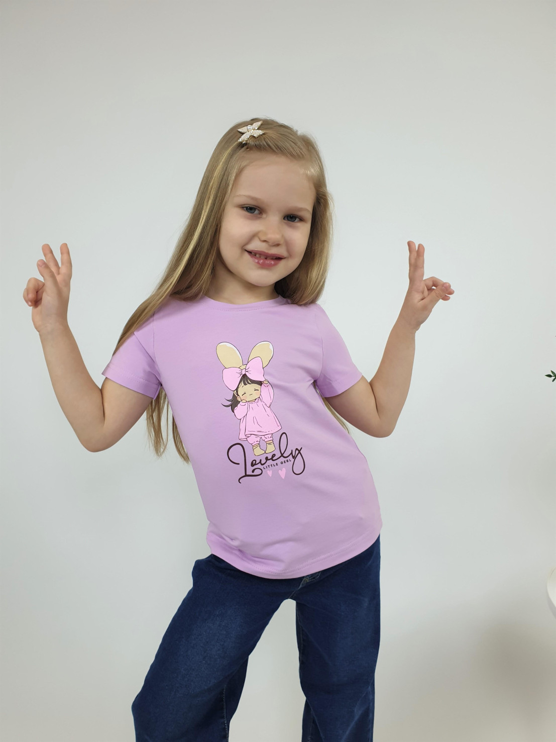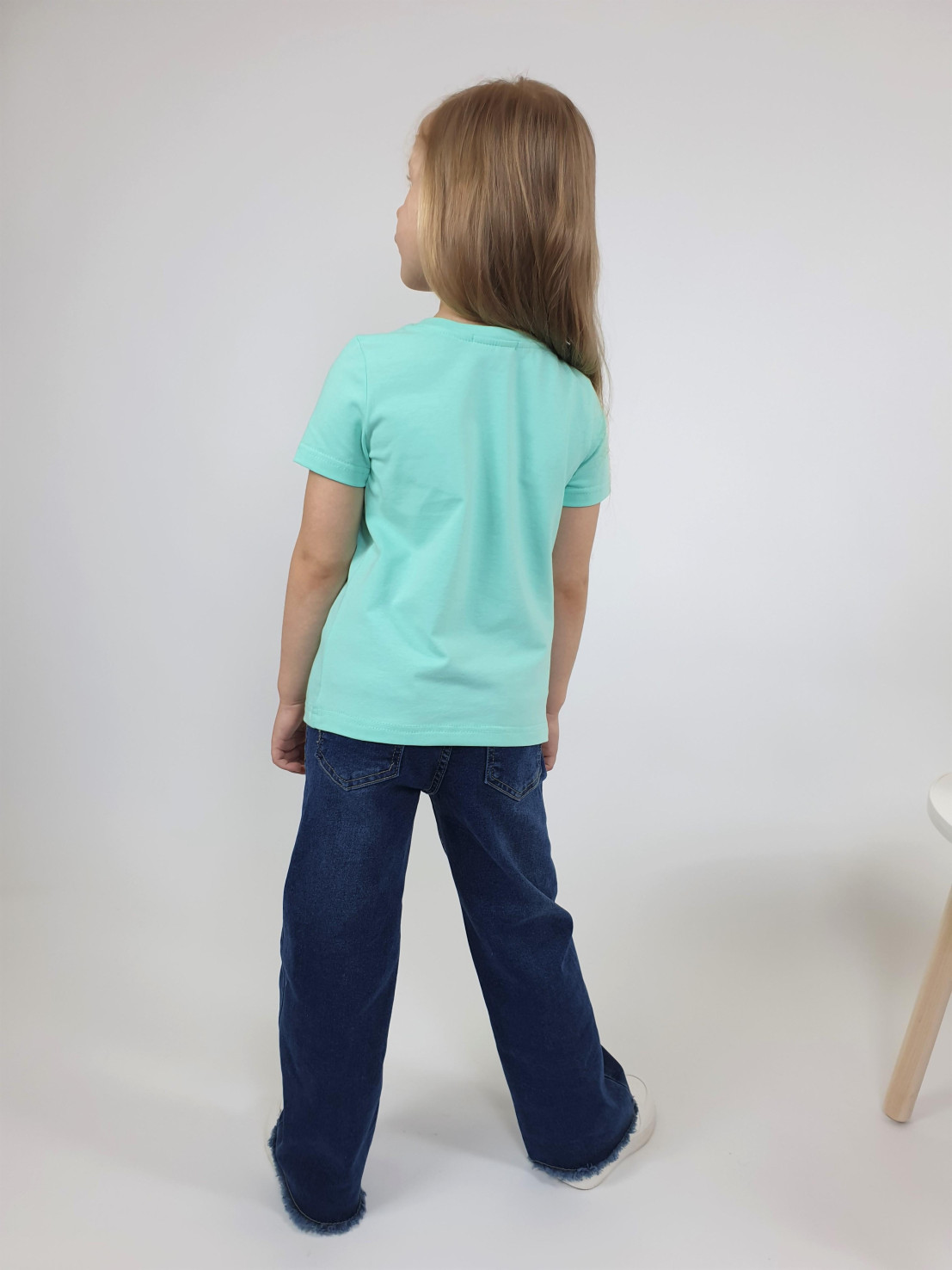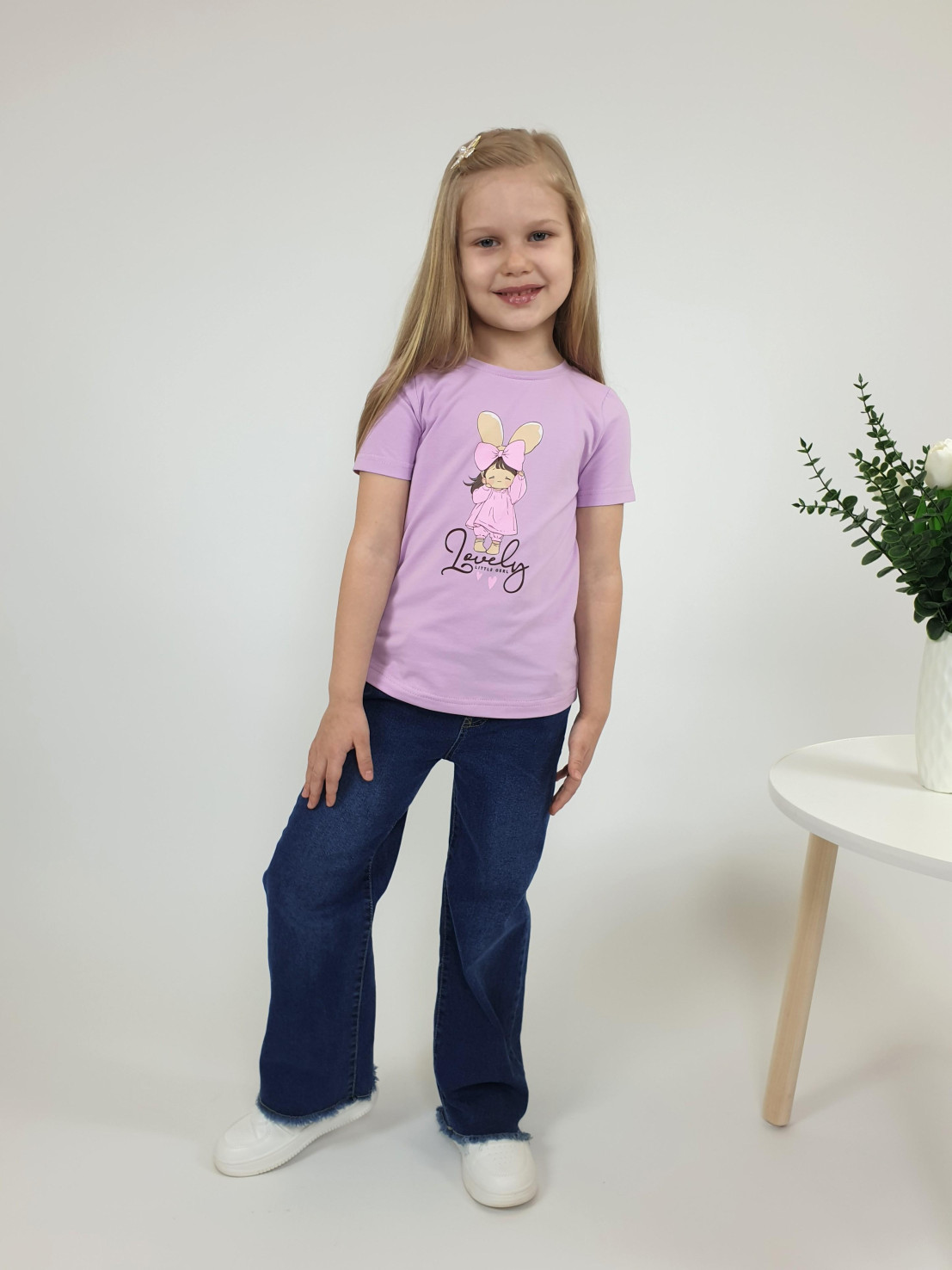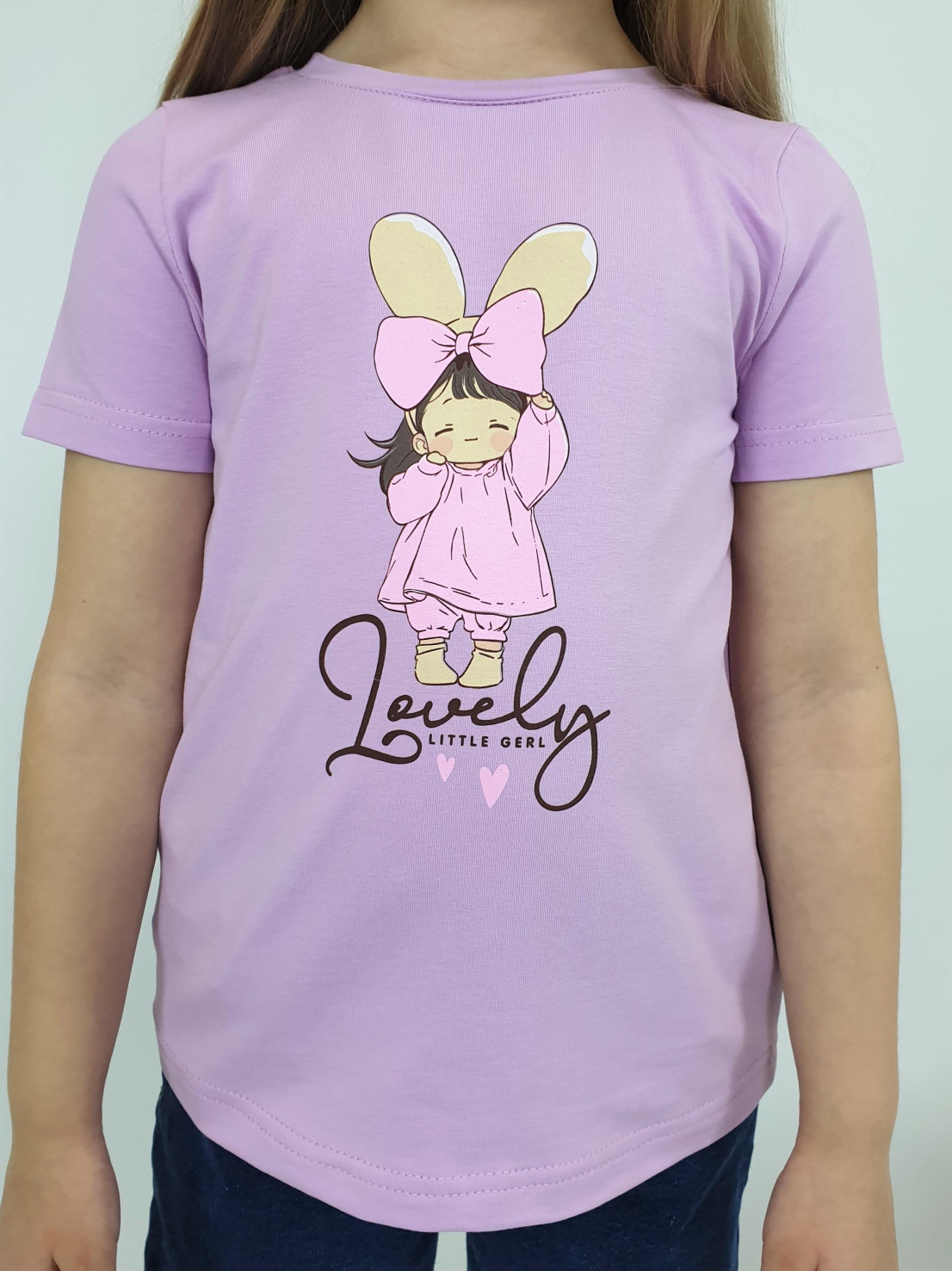 Кулирное полотно:95% х/б,5% лайкра. Фуфайка-прямой силуэт,печать на переде,короткий втачной рукав.Низ рукава и фуфайки подшит.Горловина обработана планкой.