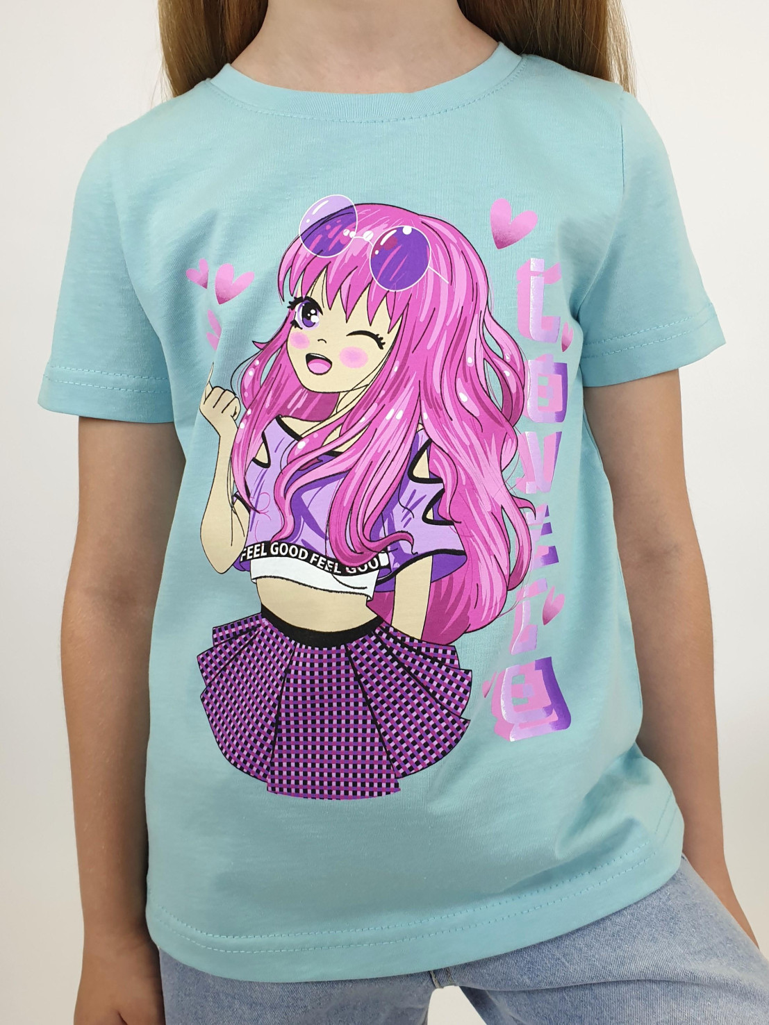 Кулирное полотно:100% х/б. Фуфайка-прямой силуэт,печать на переде,короткий втачной рукав.Низ рукава и фуфайки подшит.Горловина обработана планкой.