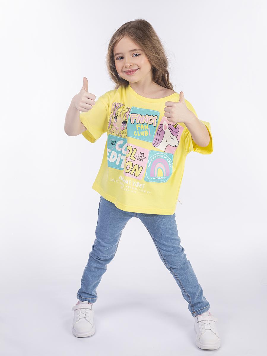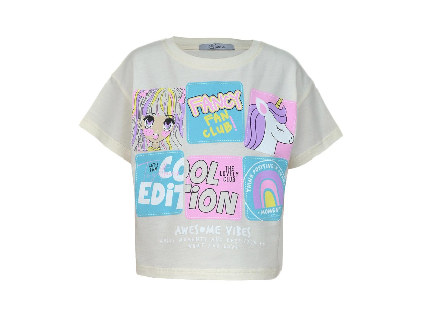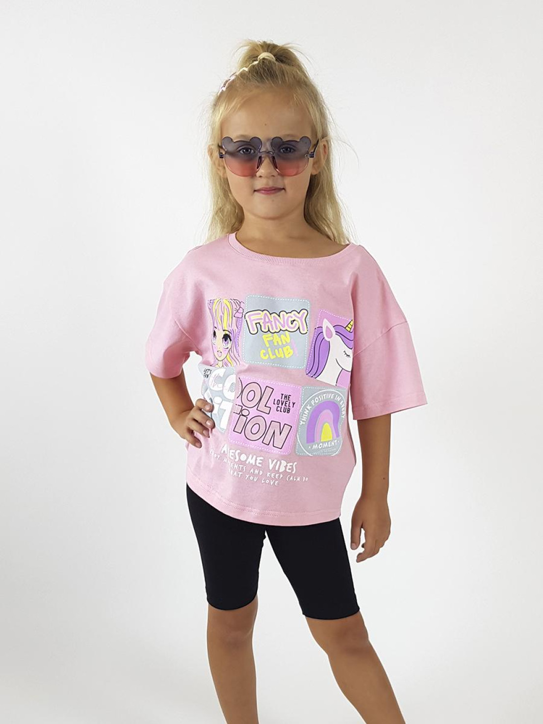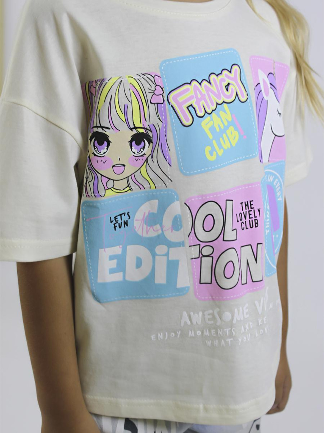 Кулирное полотно:100% х/б. Фуфайка(оверсайз)-спущенное плечо,короткий рукав.Печать на переде,горловина окантована планкой.