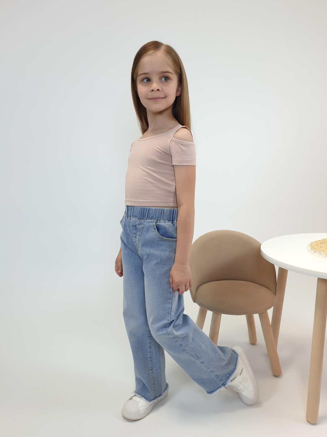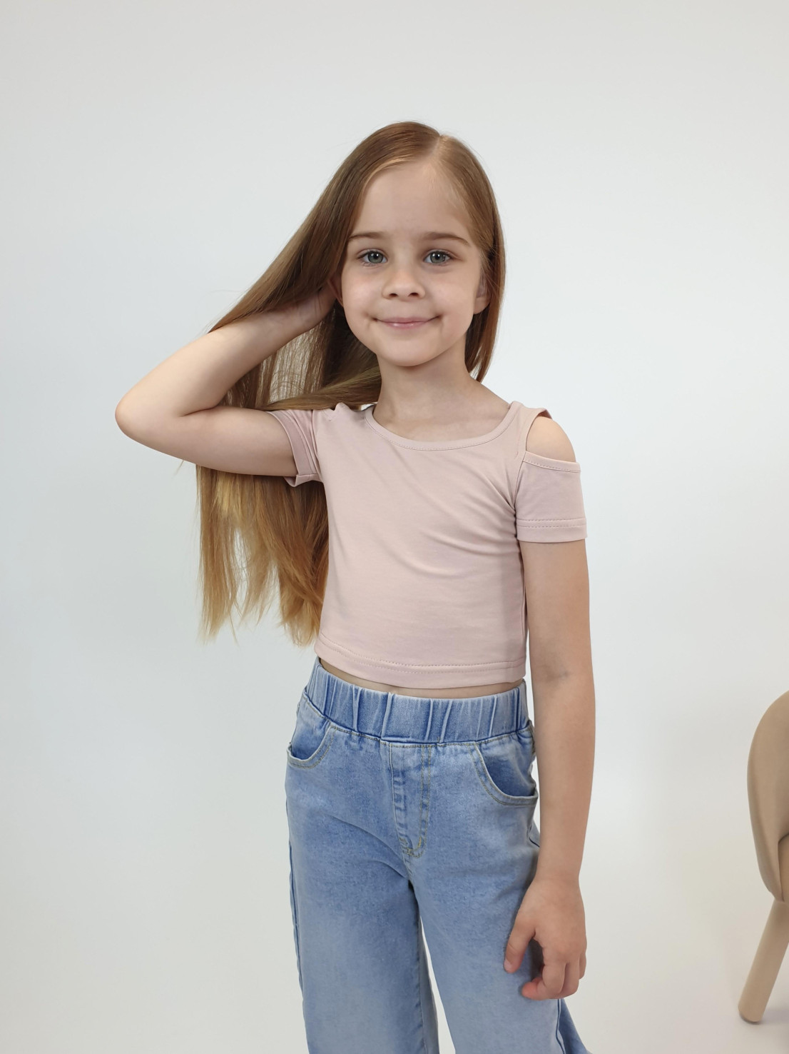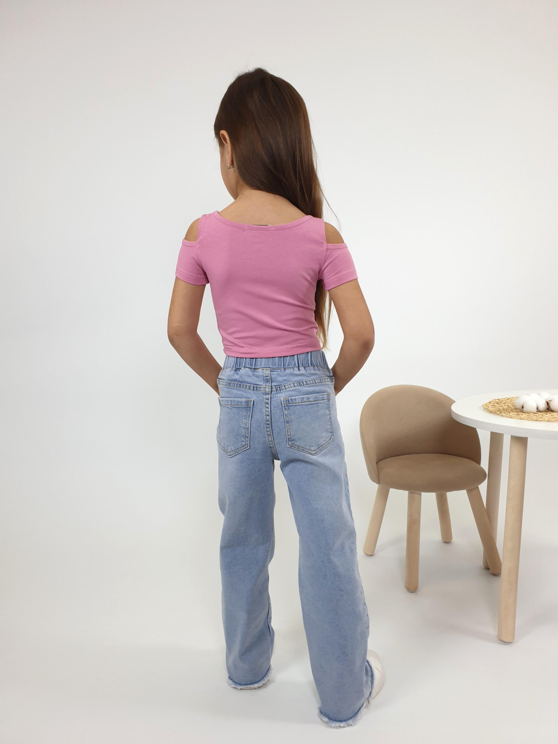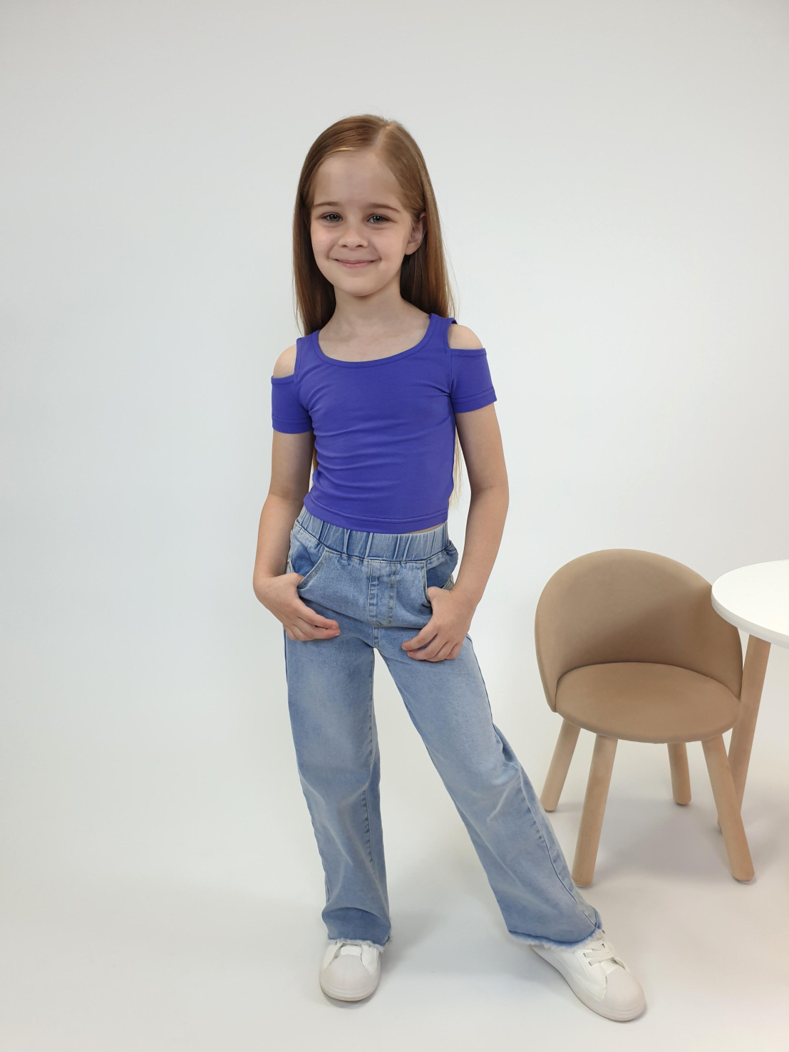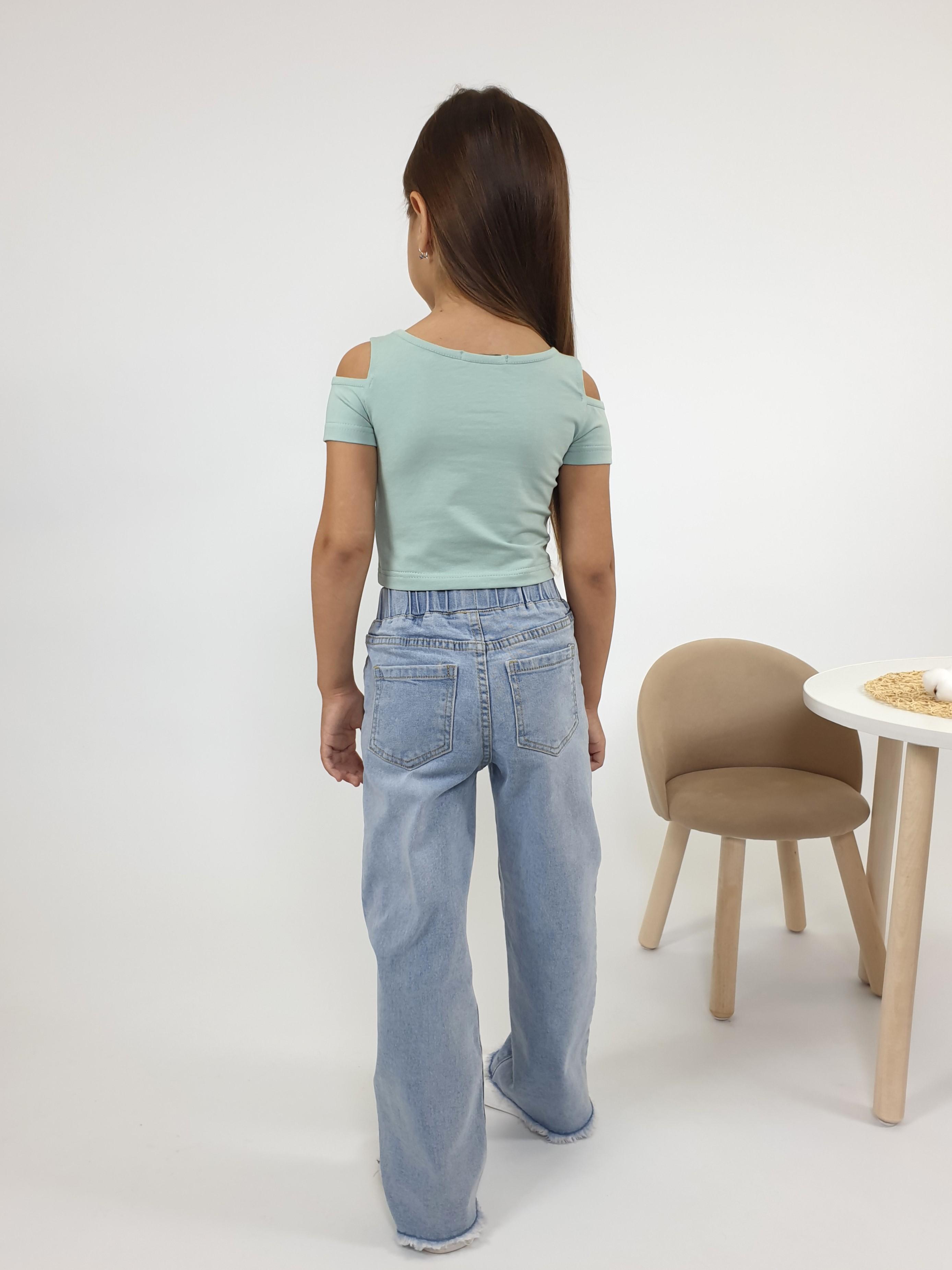 Кулирное полотно: 95% х/б,5% лайкра. Фуфайка-укороченная с коротким рукавом,с вырезом на плече.Горловина окантована.