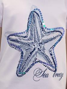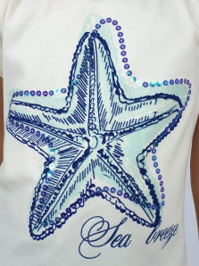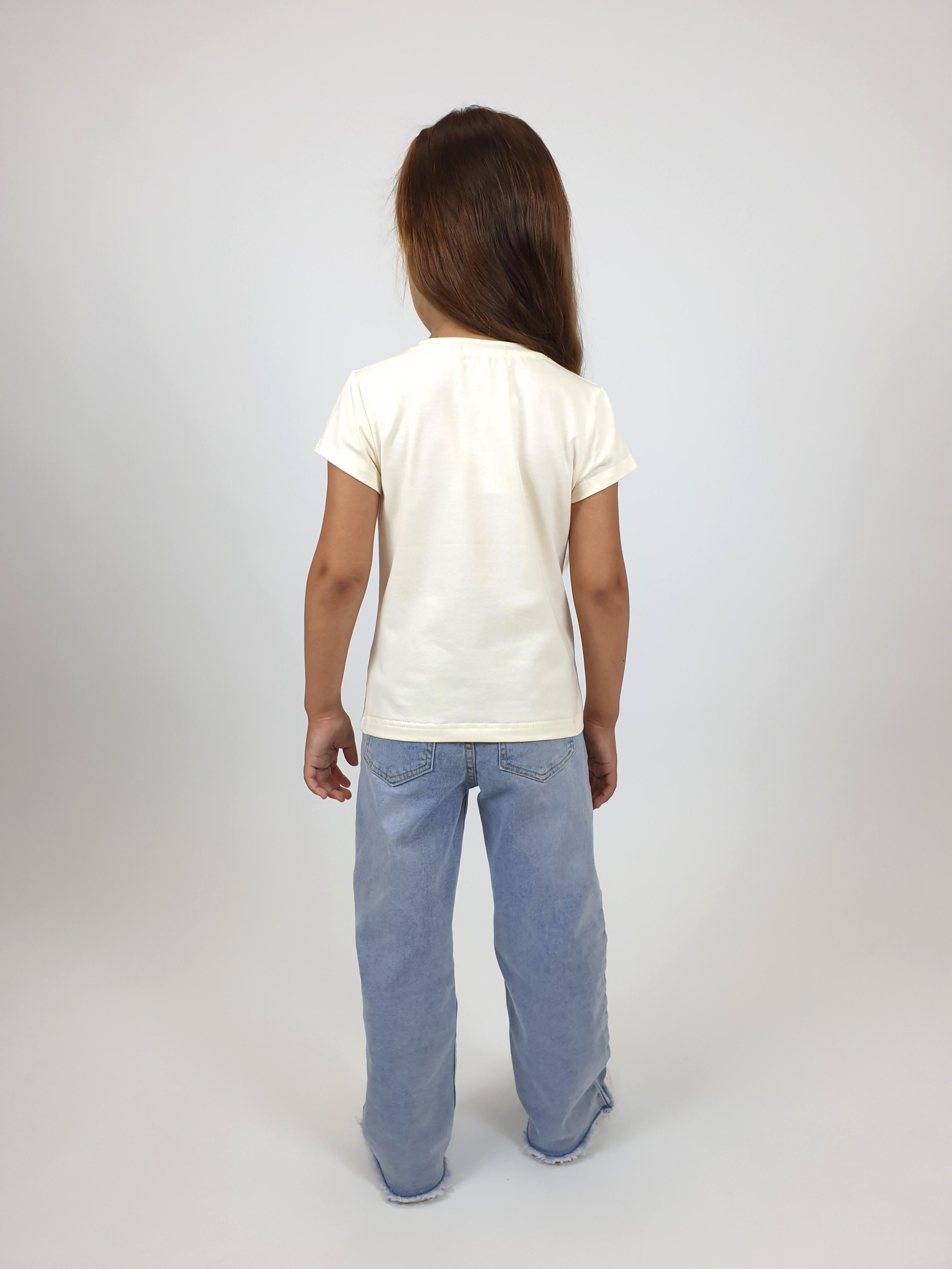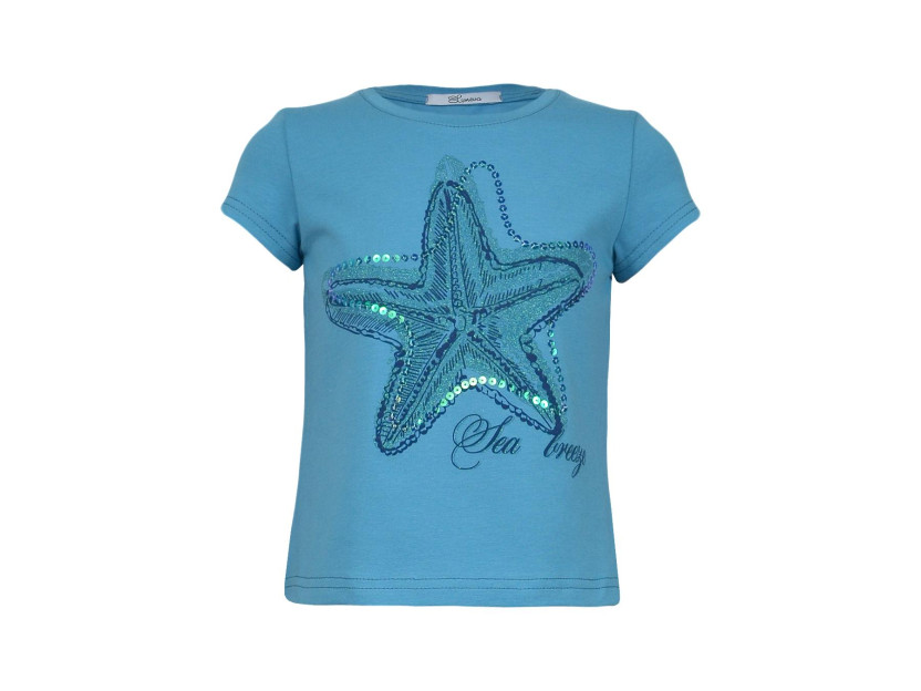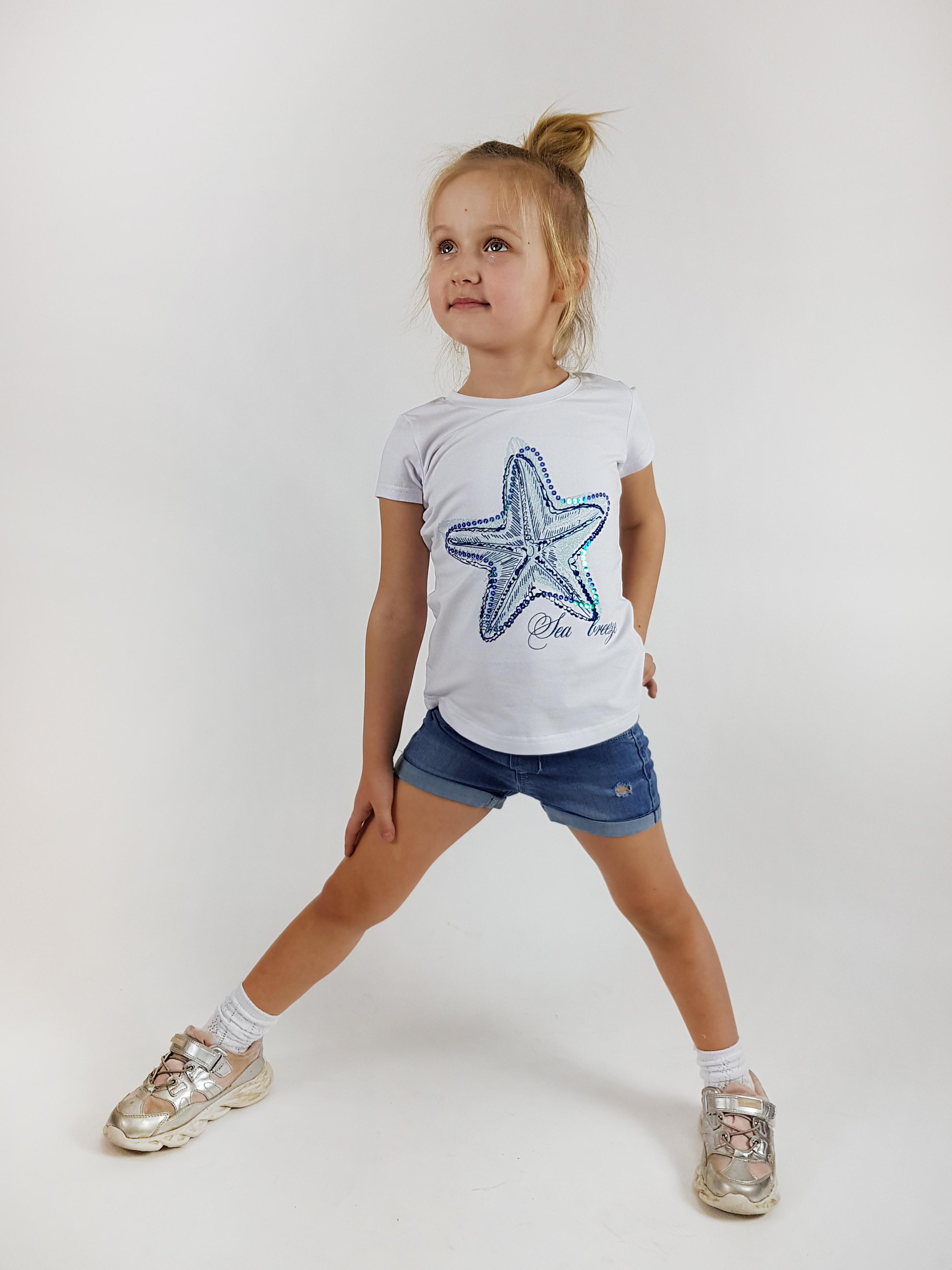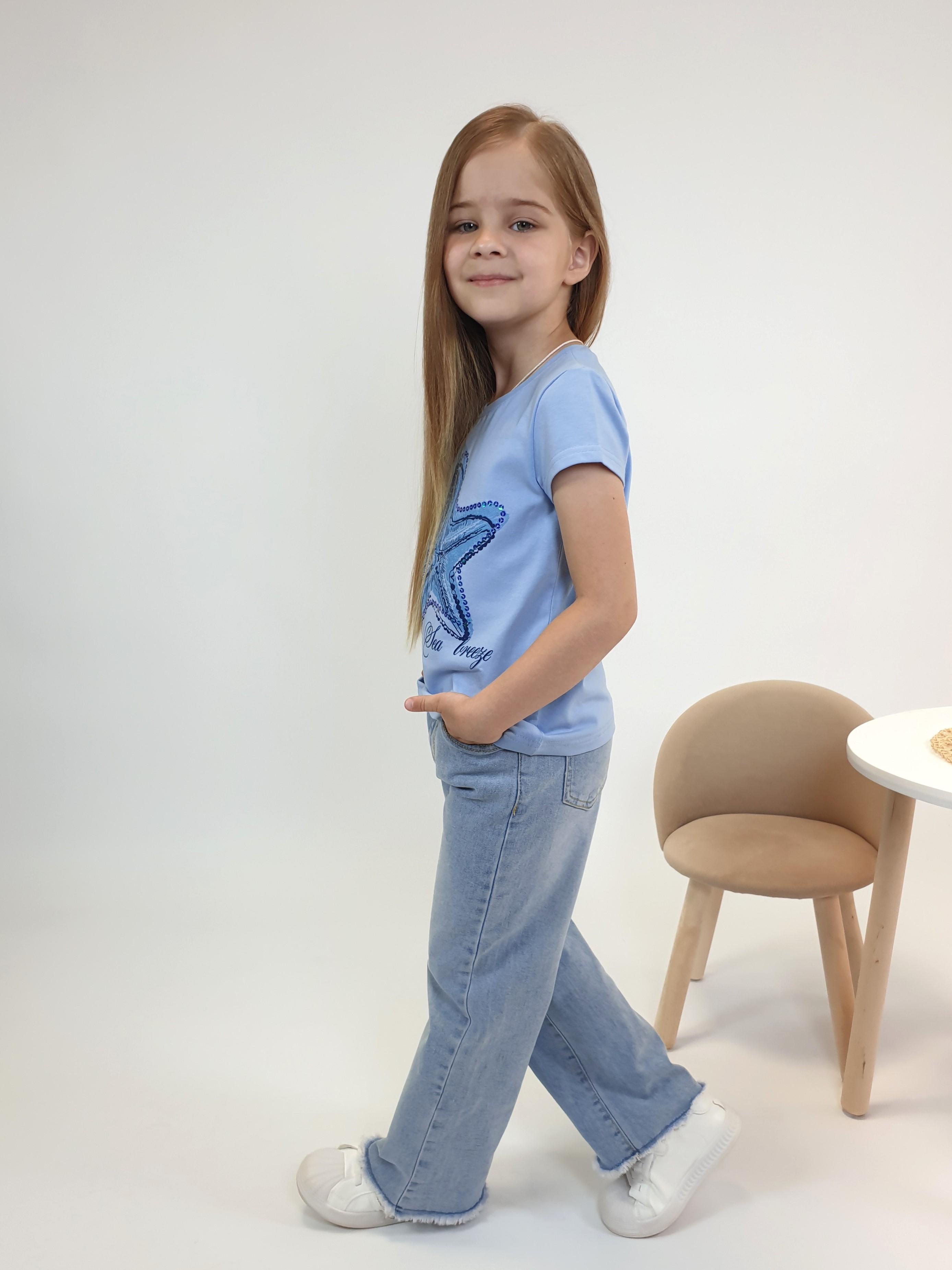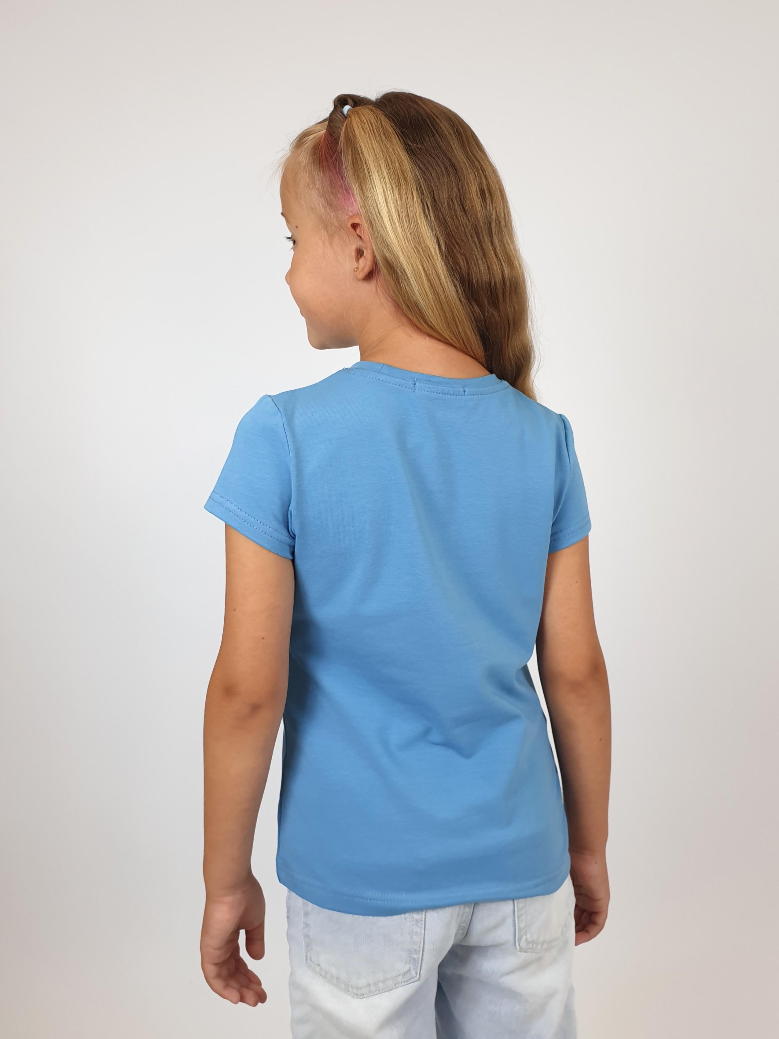 Футболка для девочки изготовлена из кулирного полотна (95 % хлопок, 5% лайкра). Модель полуприлегающего силуэта. Оригинальный принт с вышивкой (пайетки) точно понравится юным модницам. Ткань изделия мягкая, дышащая и приятная к телу.