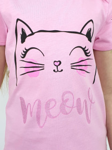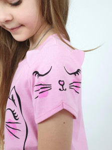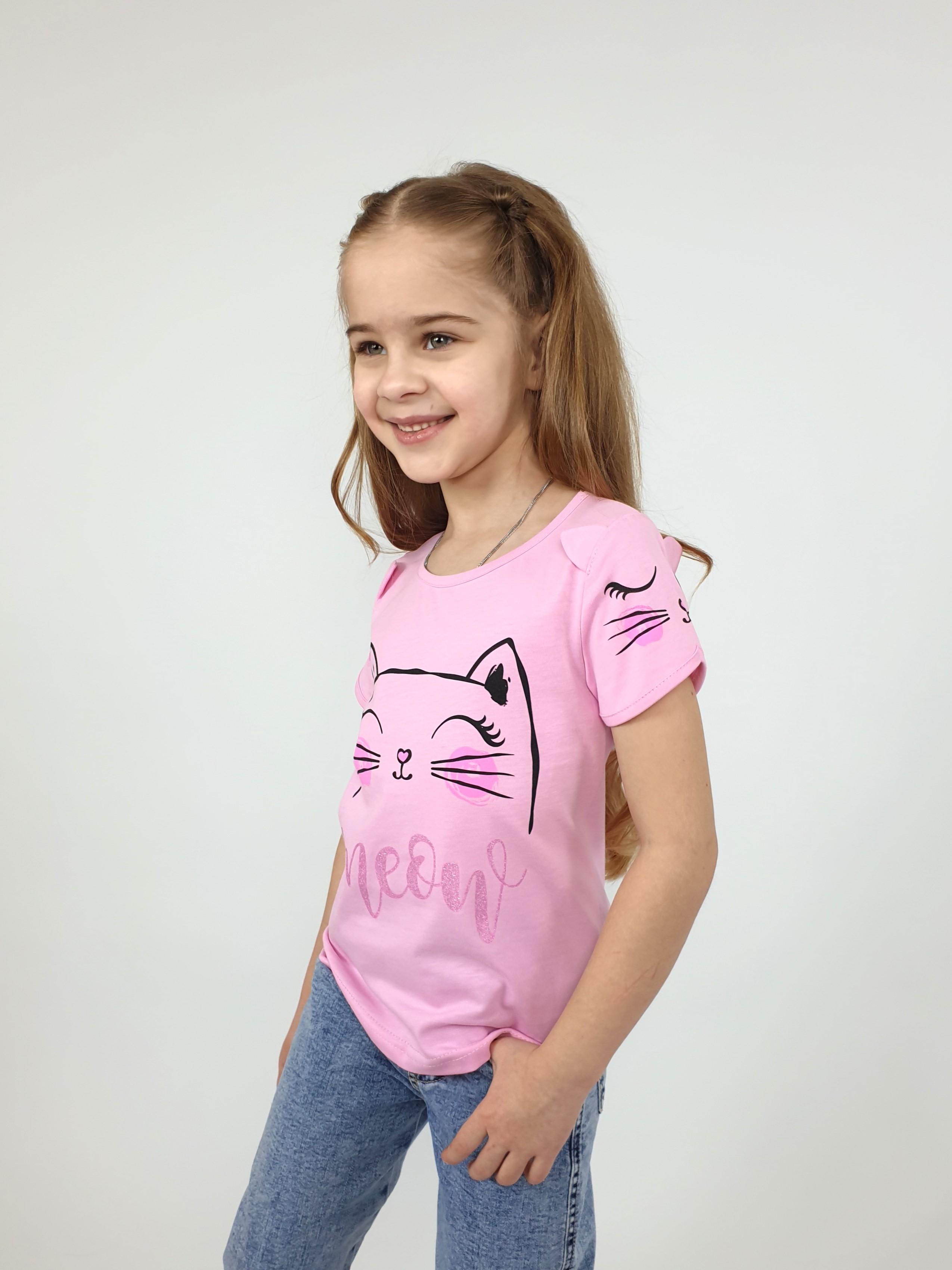 Кулирное полотно:100% х/б. Фуфайка-прямого силуэта,перед и рукава с печатью.Рукав втачной,короткий,с отделочными "ушками".Горловина и низ окантованы.