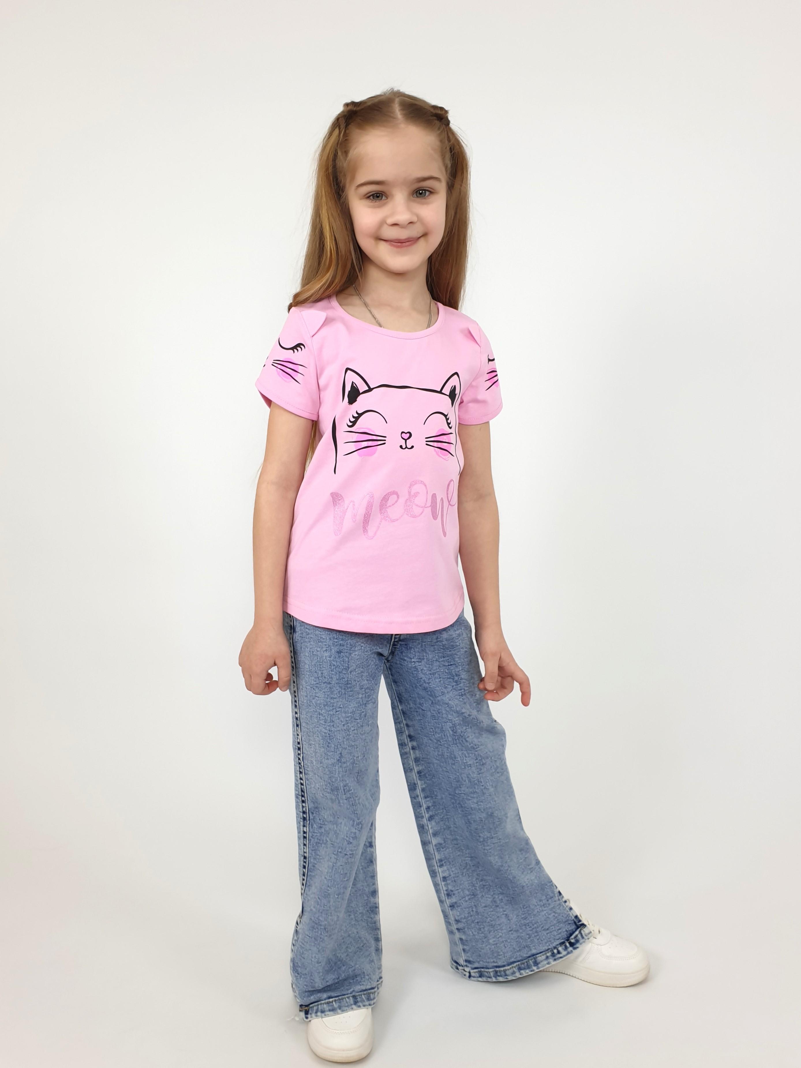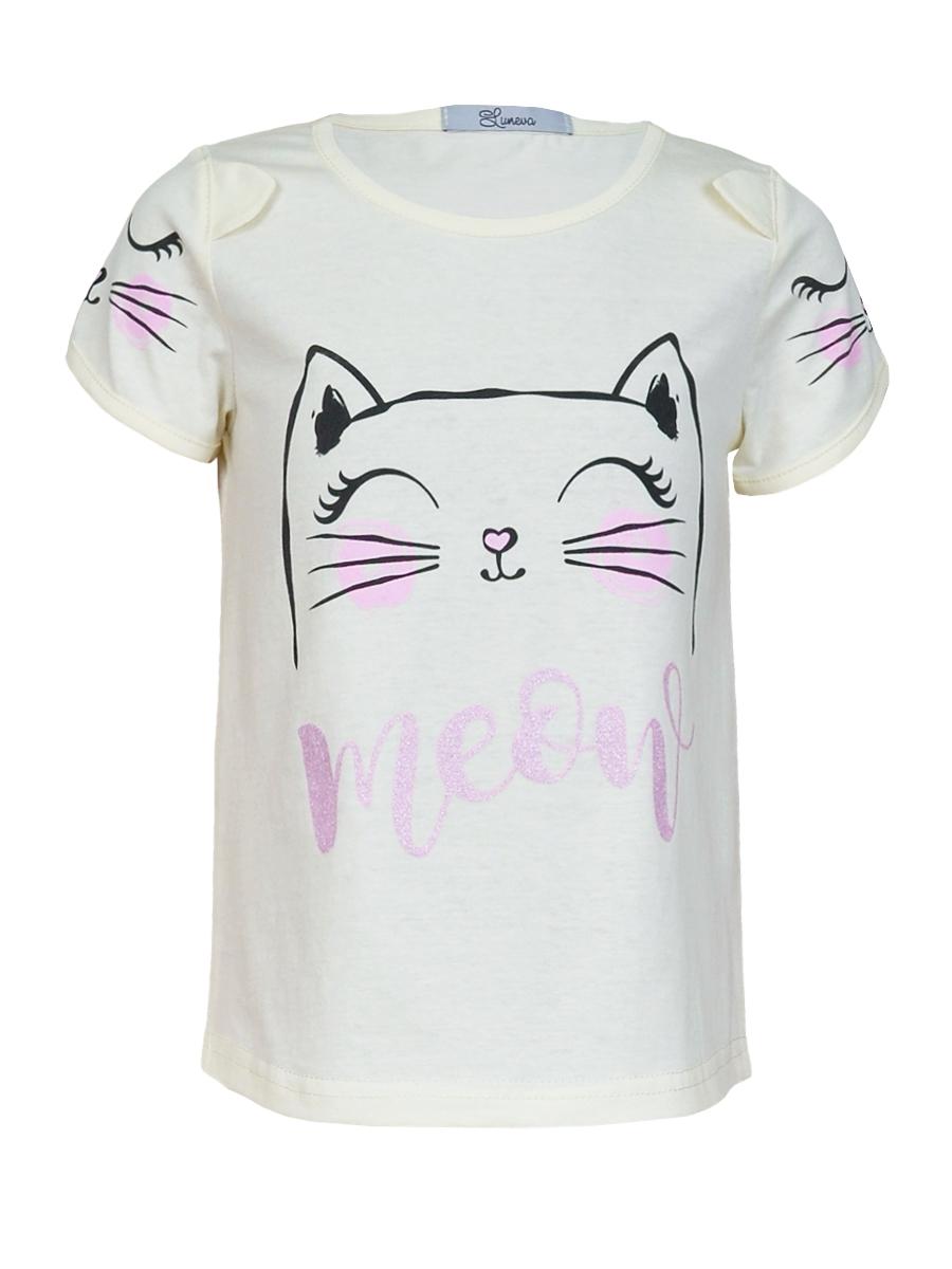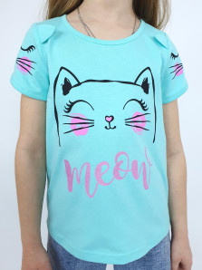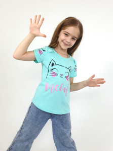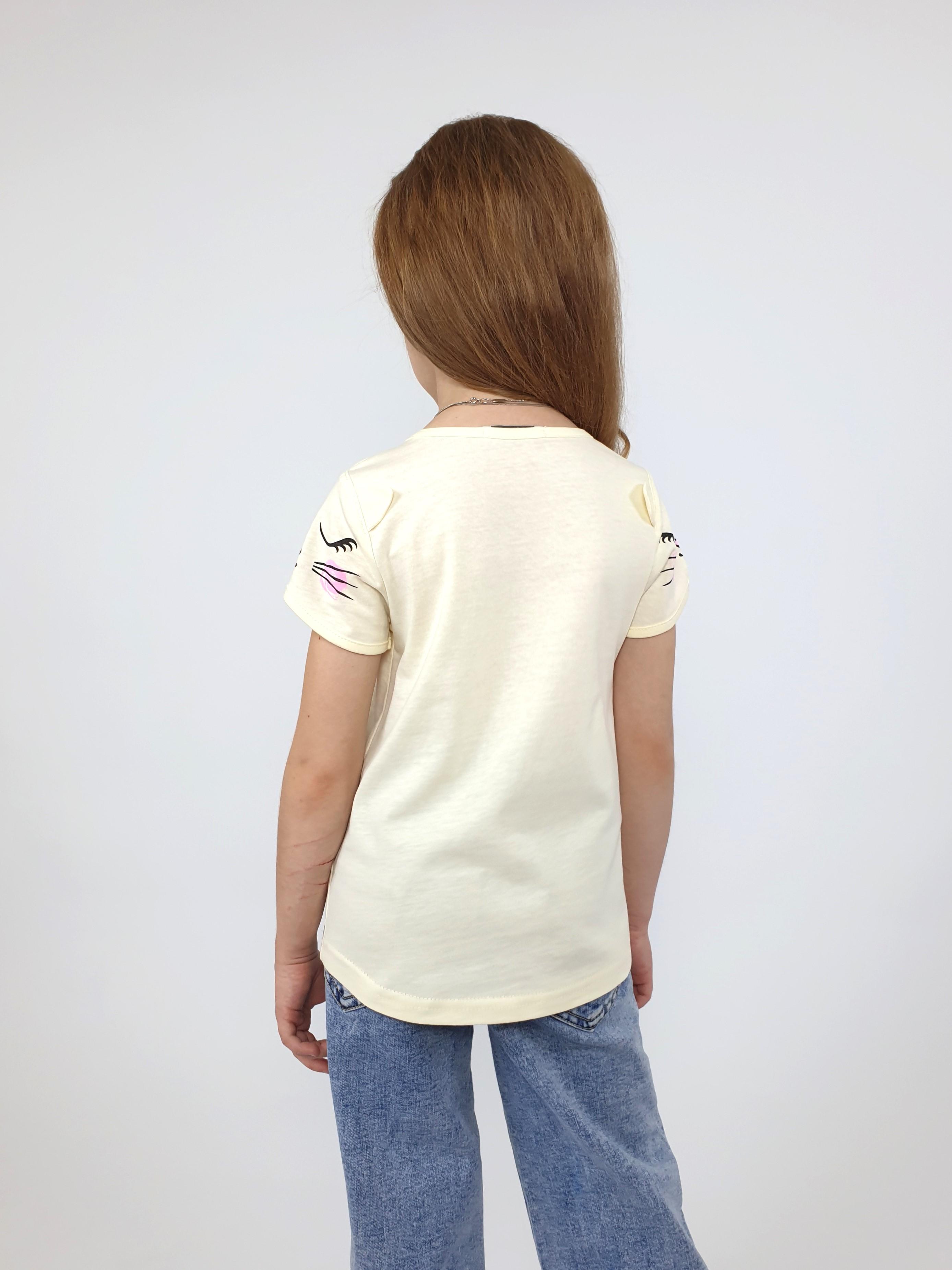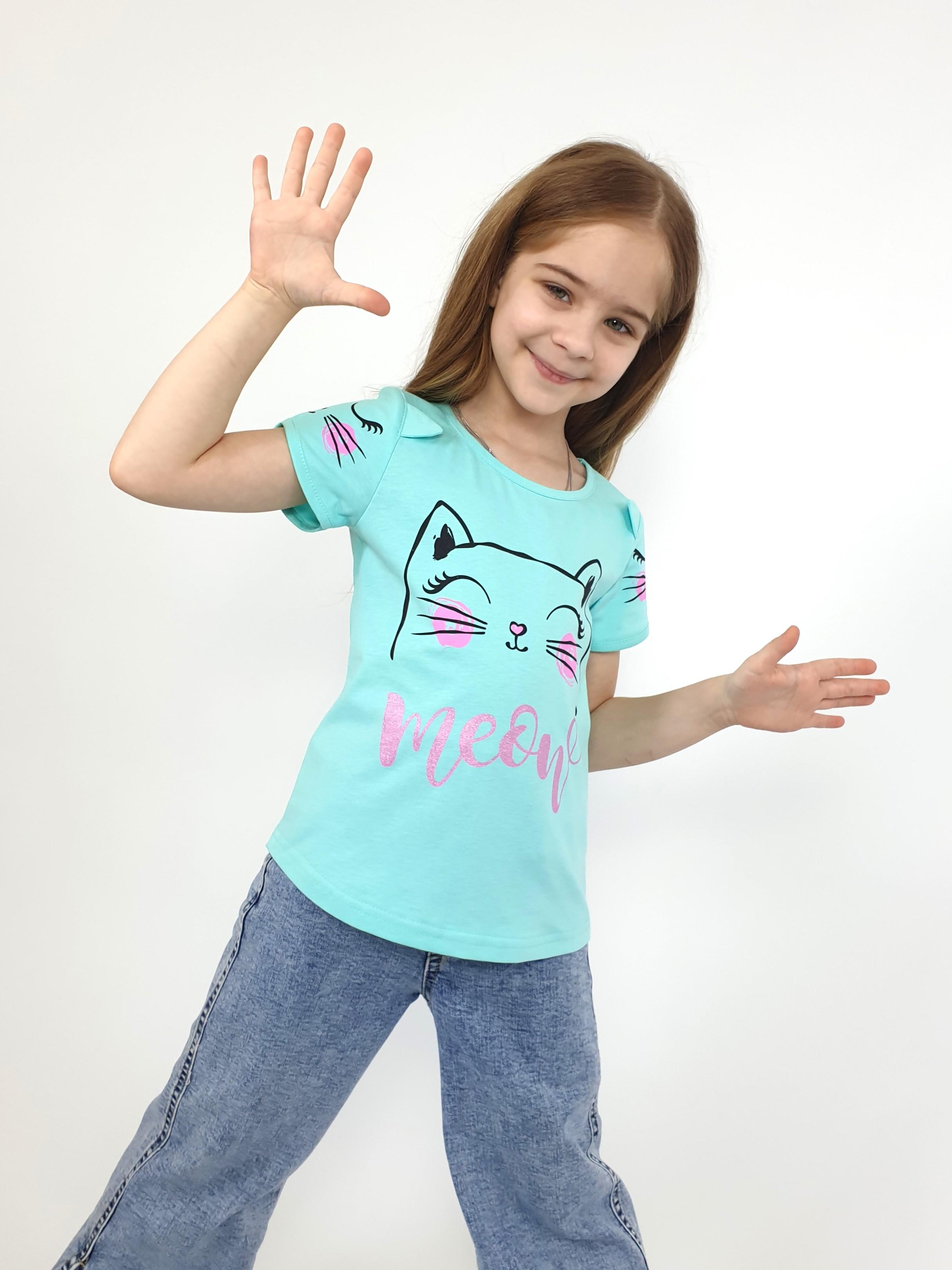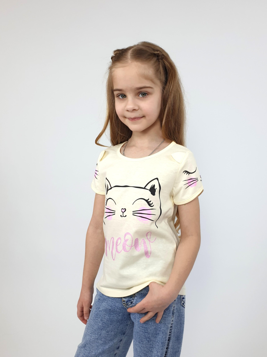 Кулирное полотно:100% х/б. Фуфайка-прямого силуэта,перед и рукава с печатью.Рукав втачной,короткий,с отделочными "ушками".Горловина и низ окантованы.