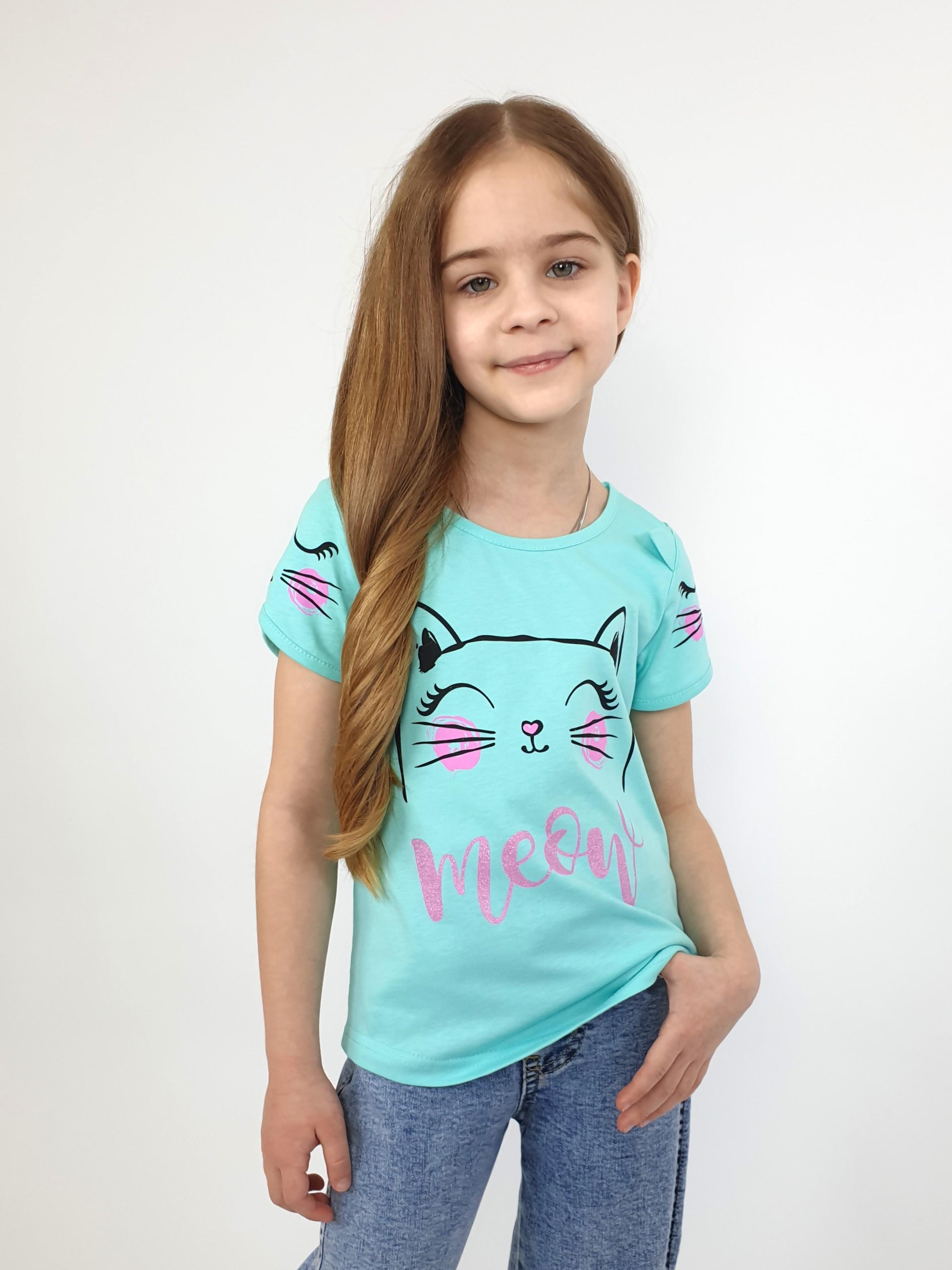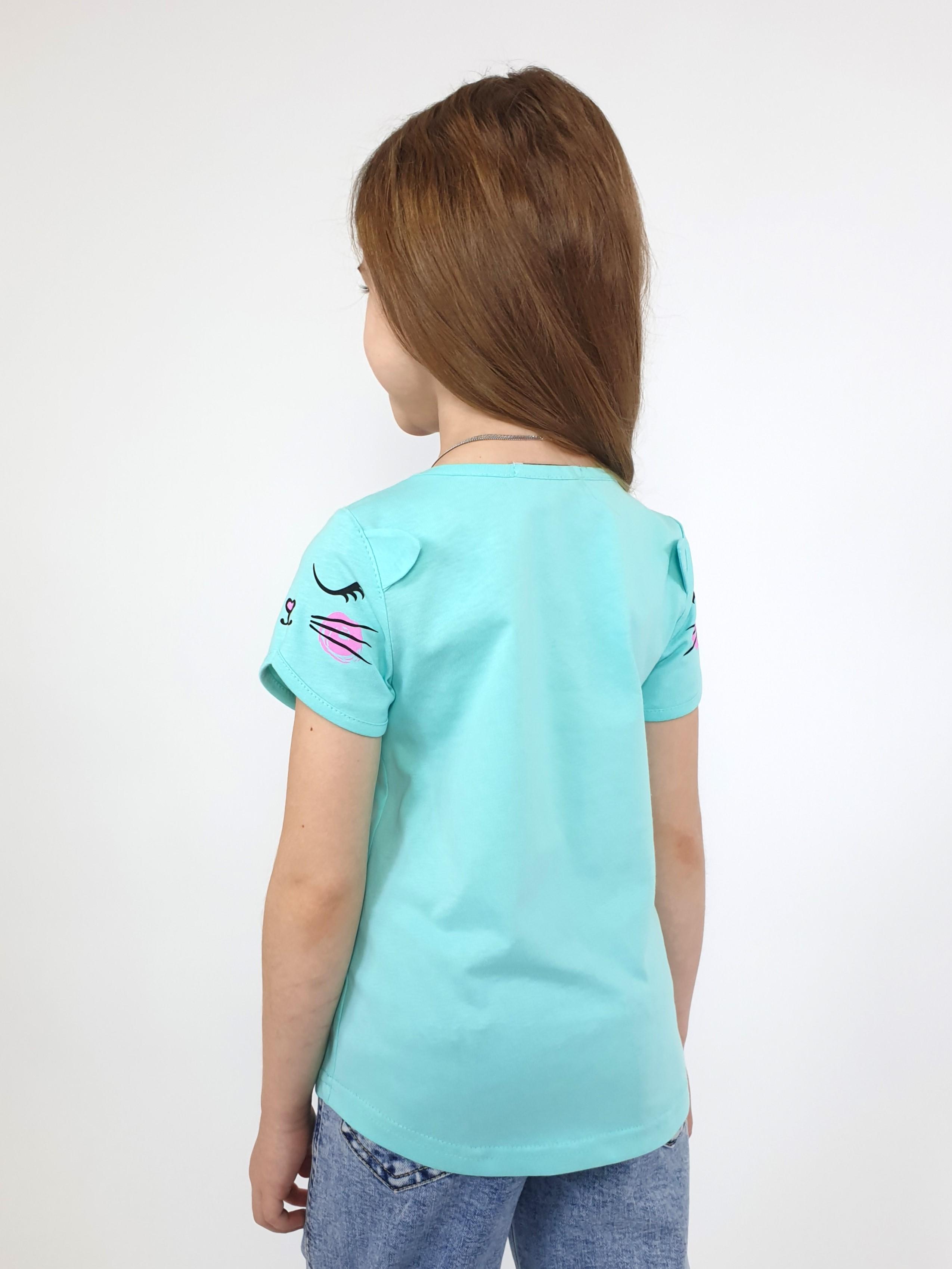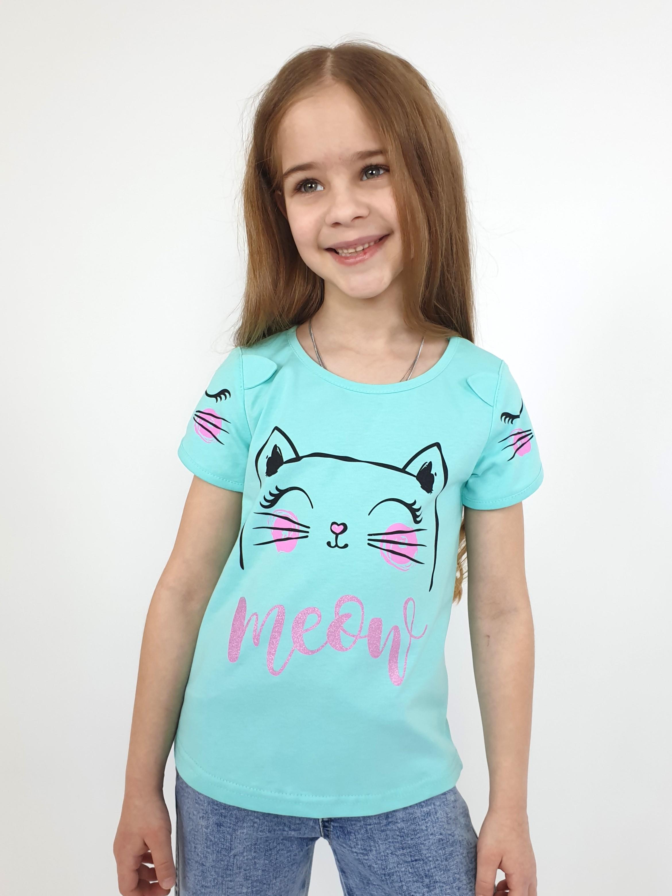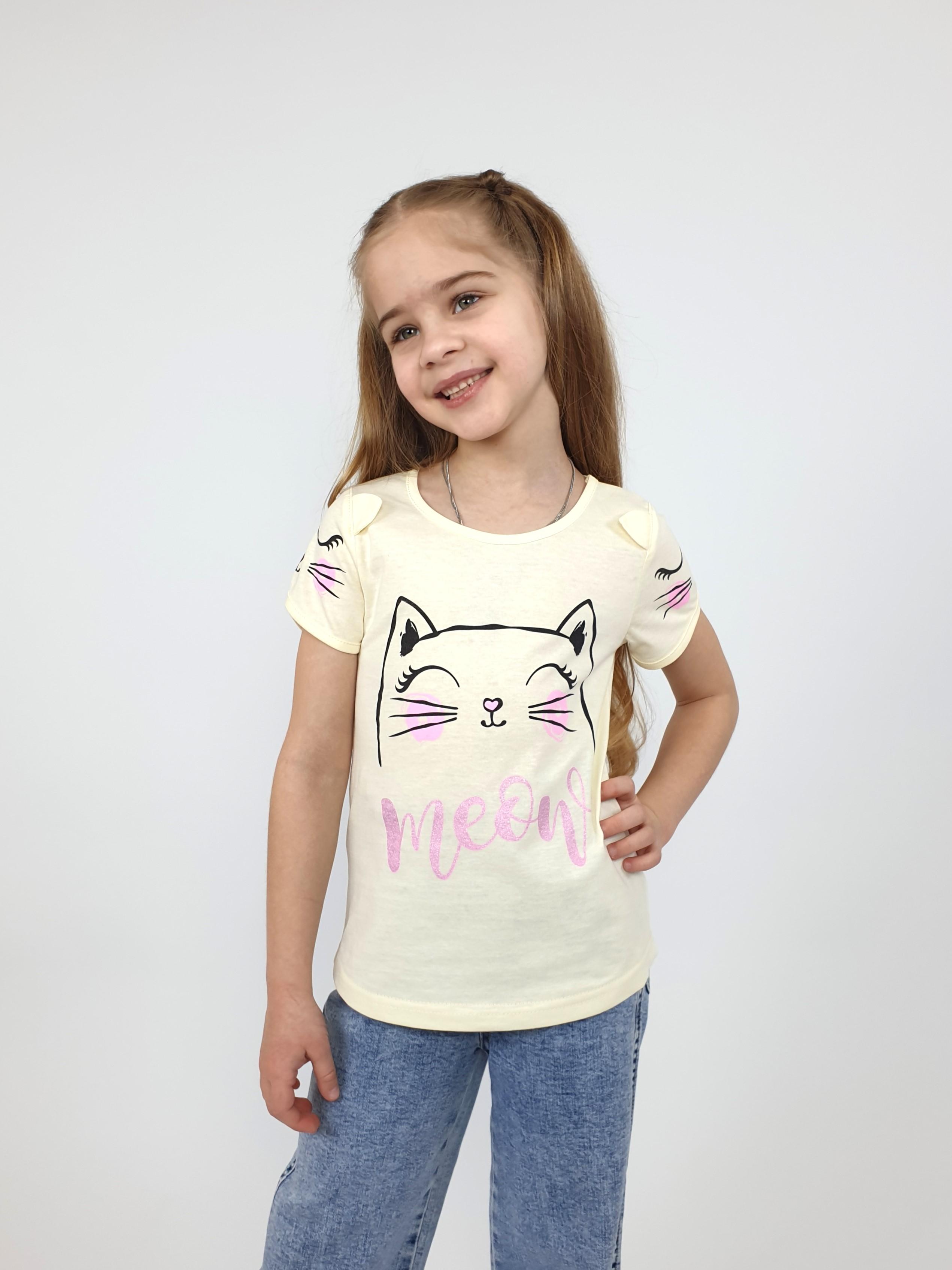 Кулирное полотно:100% х/б. Фуфайка-прямого силуэта,перед и рукава с печатью.Рукав втачной,короткий,с отделочными "ушками".Горловина и низ окантованы.