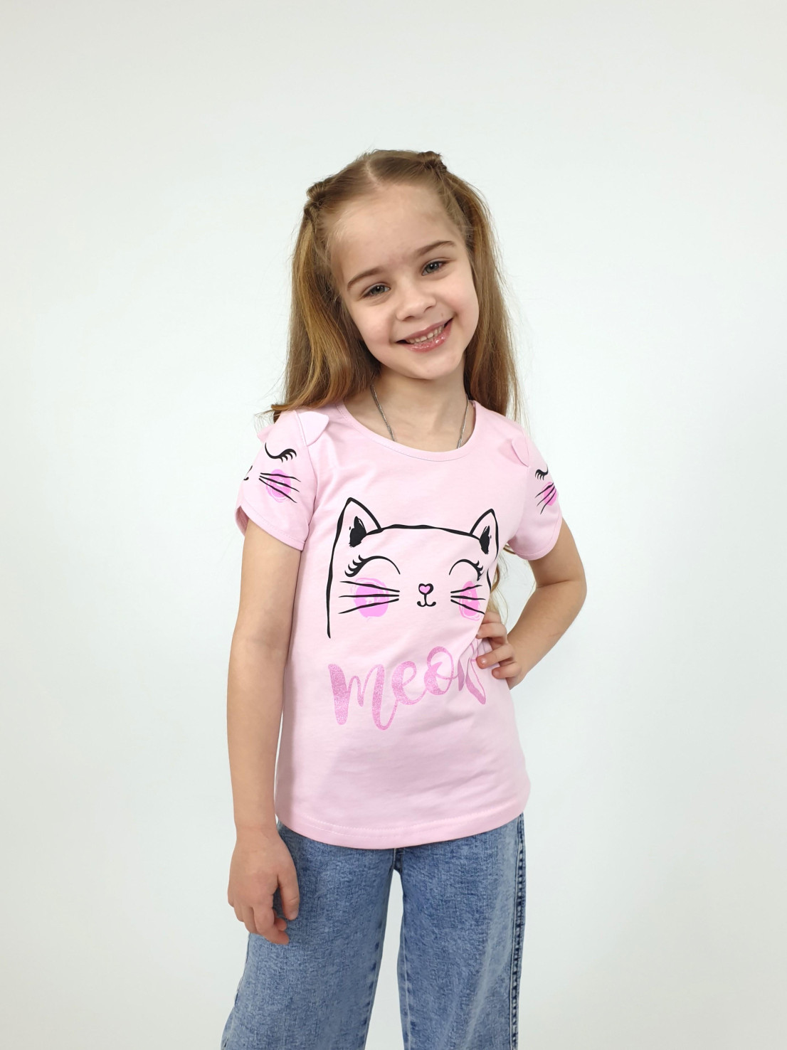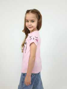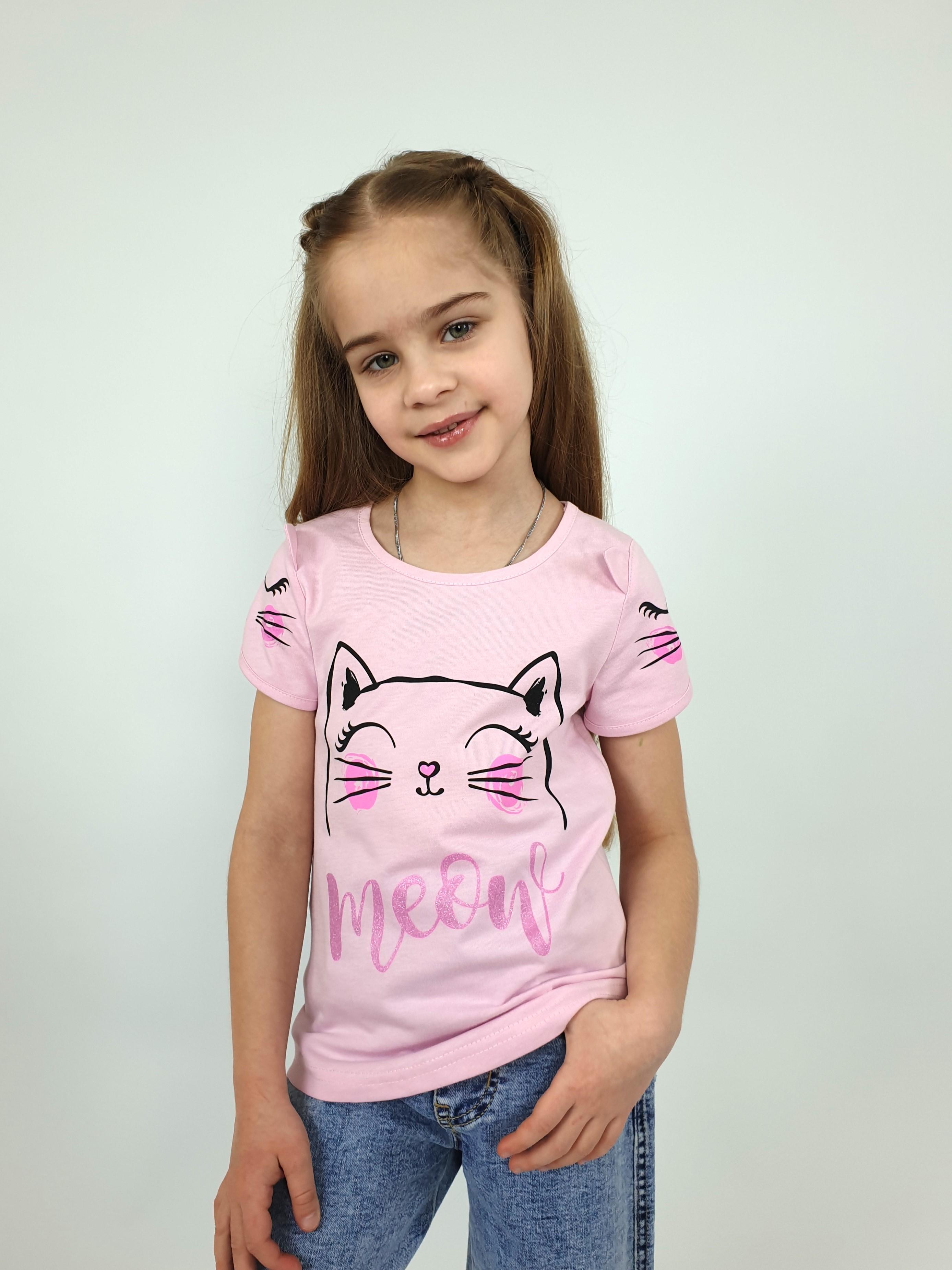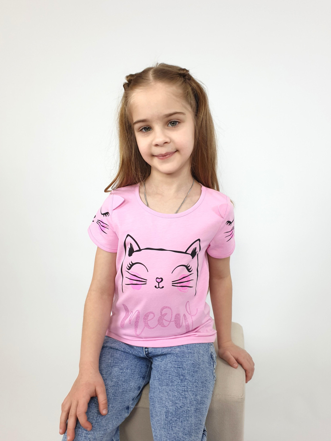 Кулирное полотно:100% х/б. Фуфайка-прямого силуэта,перед и рукава с печатью.Рукав втачной,короткий,с отделочными "ушками".Горловина и низ окантованы.