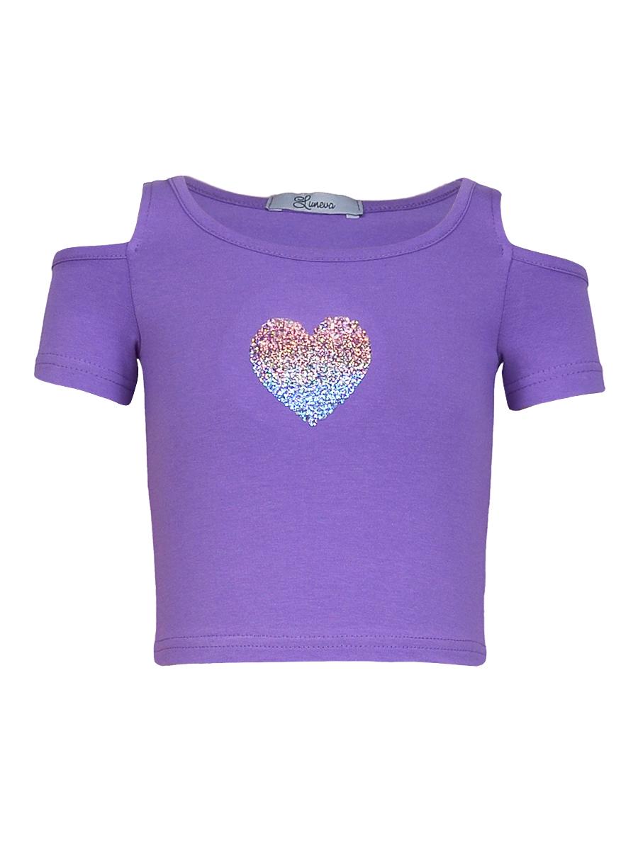 Кулирное полотно: 95% х/б,5% лайкра. Фуфайка-укороченная с коротким рукавом,с вырезом на плече.Горловина окантована.Перед с вышивкой.