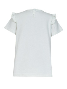 Кулирное полотно:100% х/б. Фуфайка-силуэт трапеция,короткий втачной рукав,в пройме рюша.Горловина окантована,застежка на пуговицу по спинке.Печать на переде.