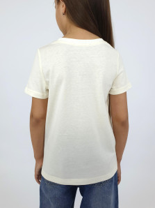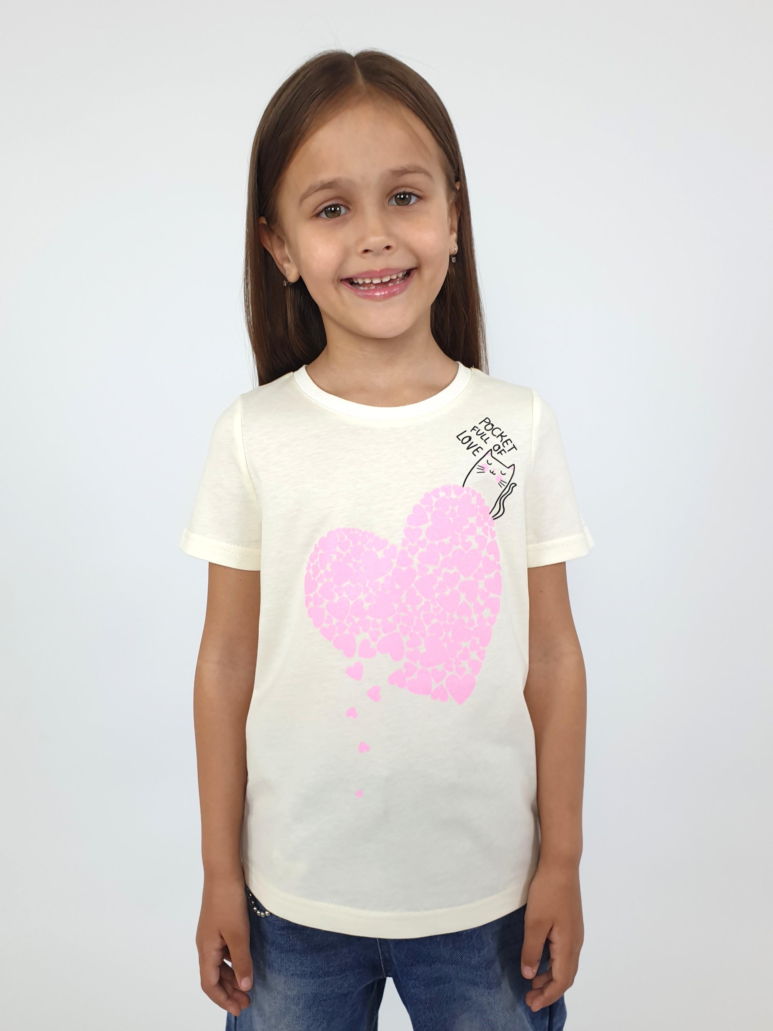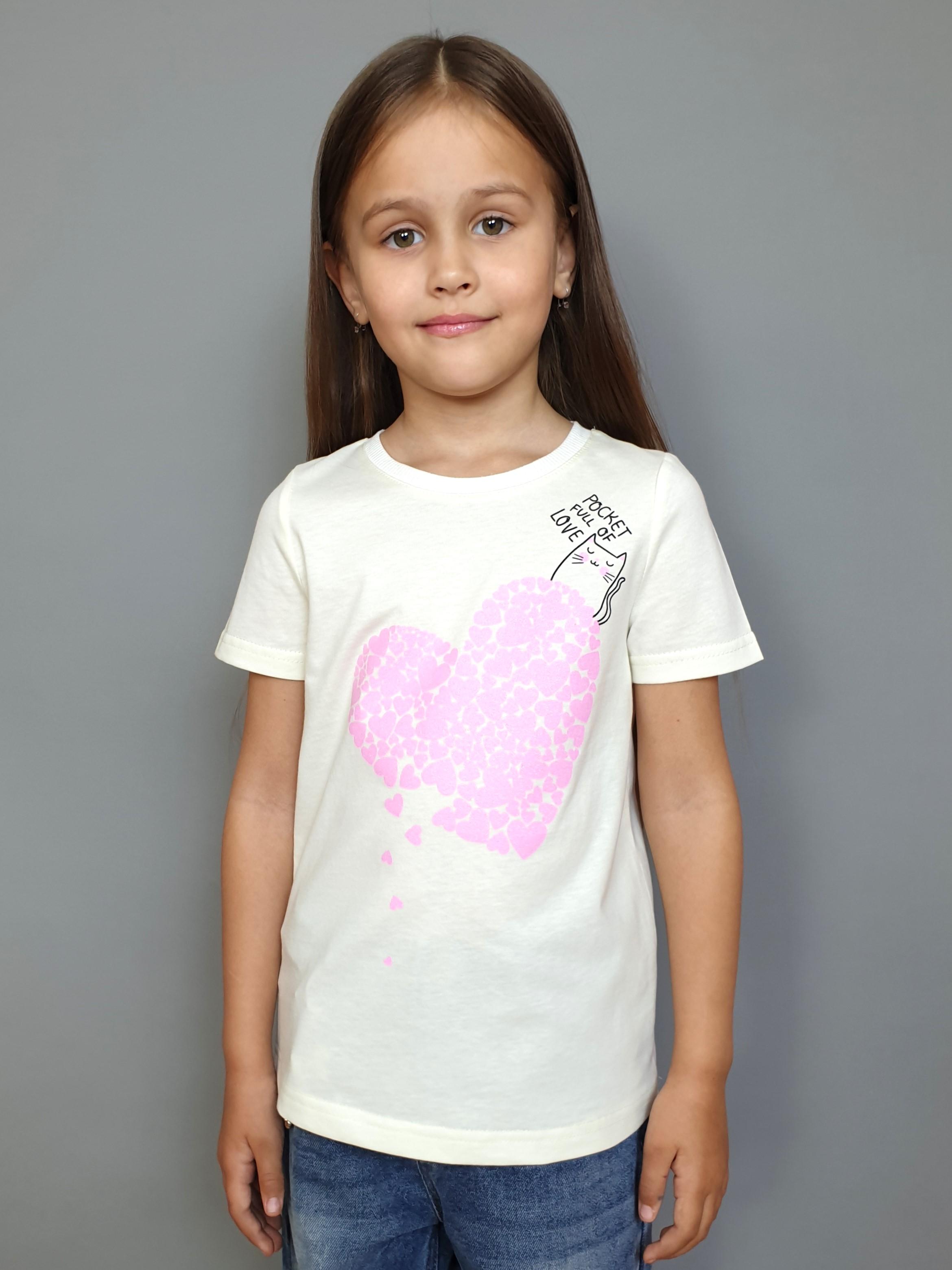 Кулирное полотно:100% х/б. Фуфайка-прямого силуэта,печать на переде,короткий втачной рукав.Низ рукава и фуфайки подшит.Горловина обработана ластиком.