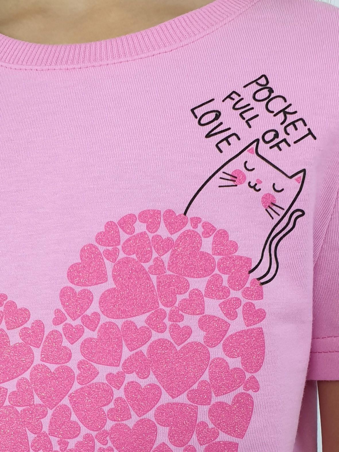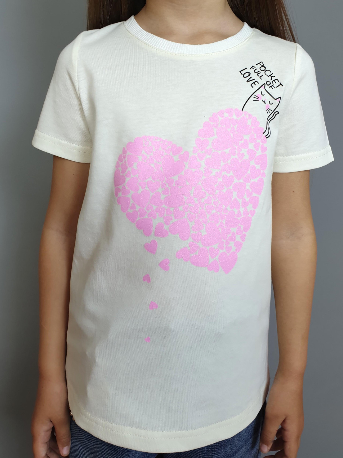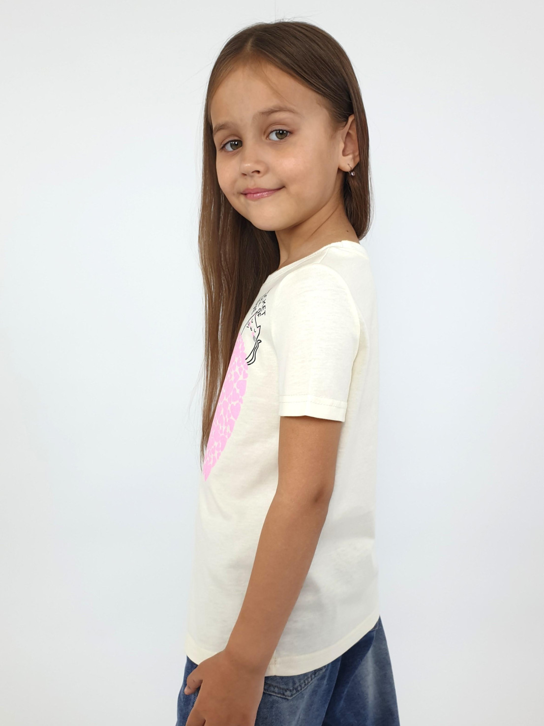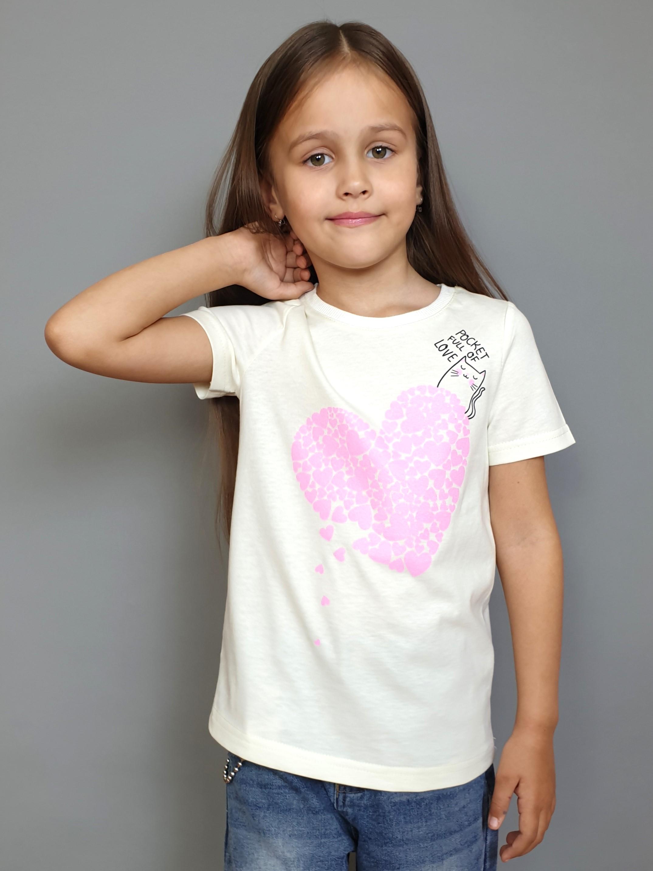 Кулирное полотно:100% х/б. Фуфайка-прямого силуэта,печать на переде,короткий втачной рукав.Низ рукава и фуфайки подшит.Горловина обработана ластиком.