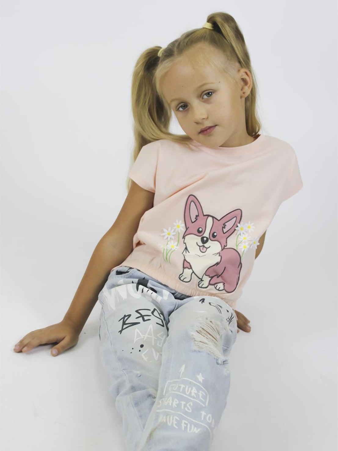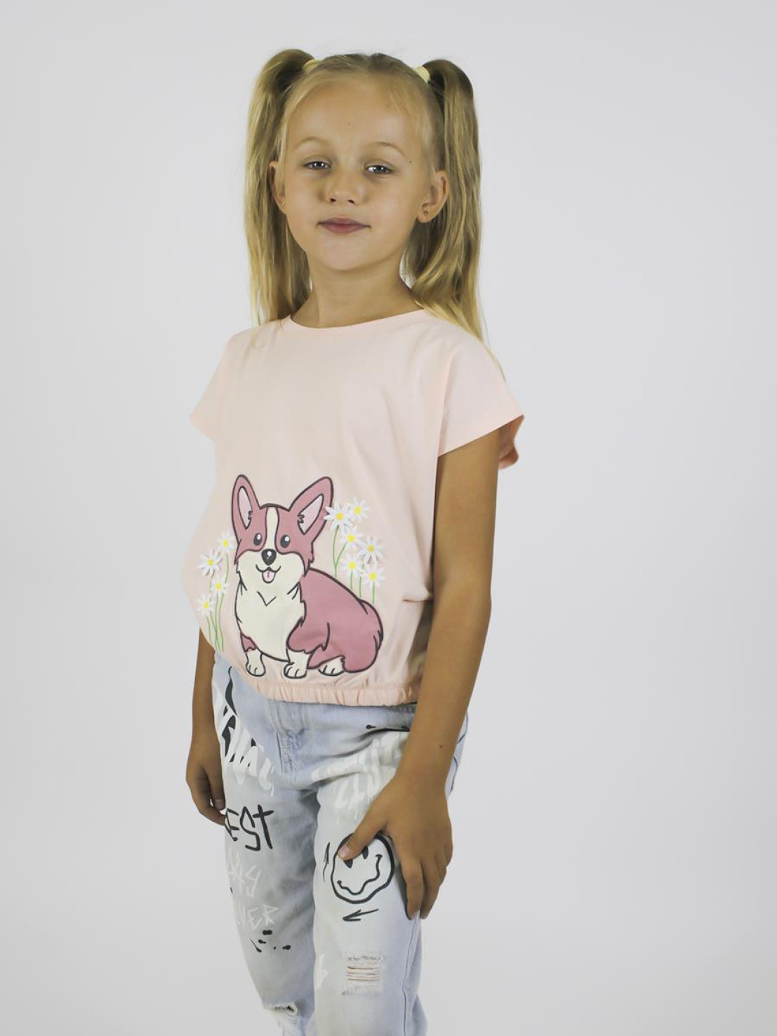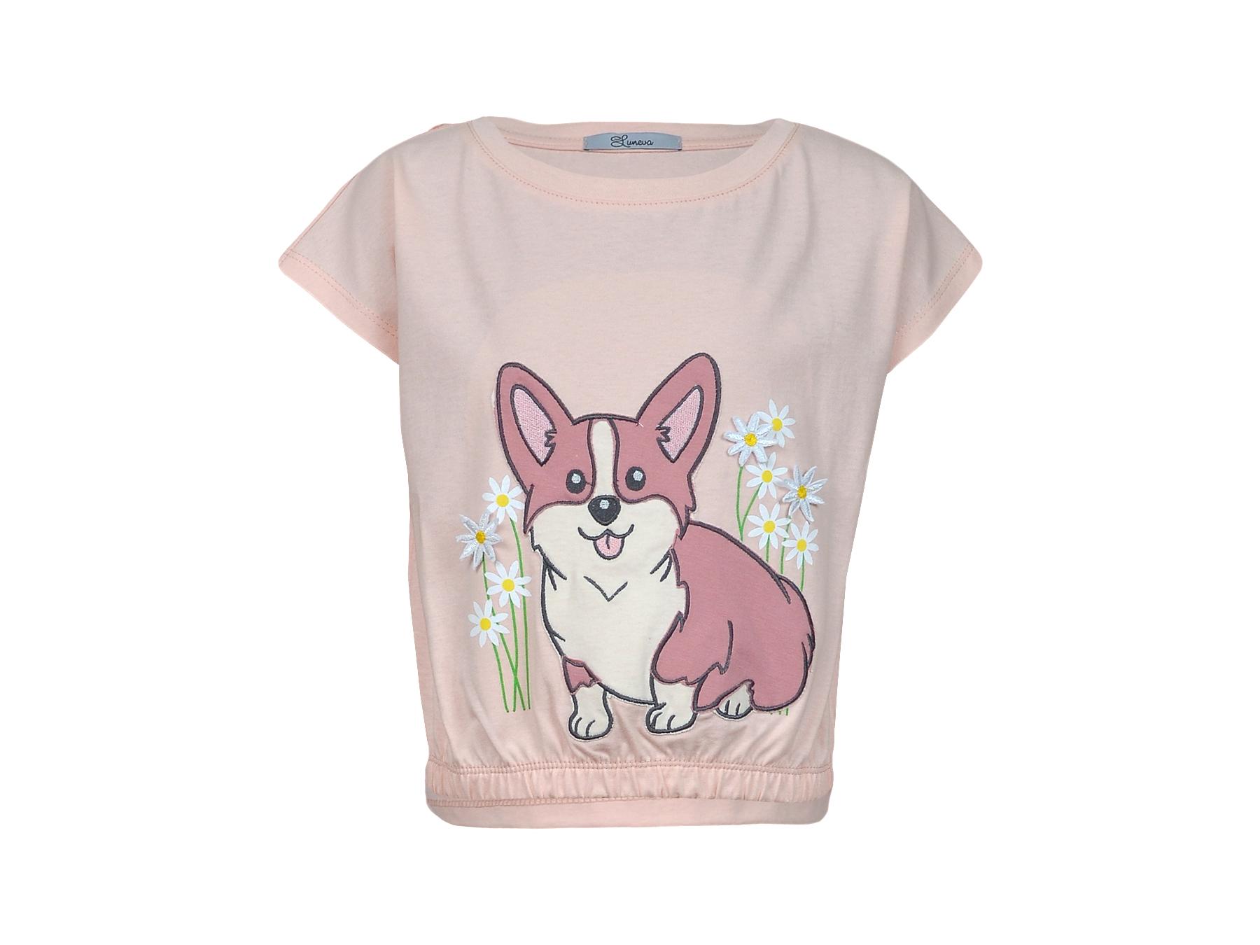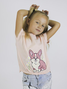 Футболка для девочки изготовлена из кулирного полотна (100% хлопок). Модель прямого силуэта, короткий спущенный рукав . Оригинальный принт с вышивкой точно понравится юным модницам. Ткань изделия мягкая, дышащая и приятная к телу.