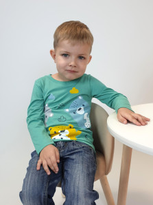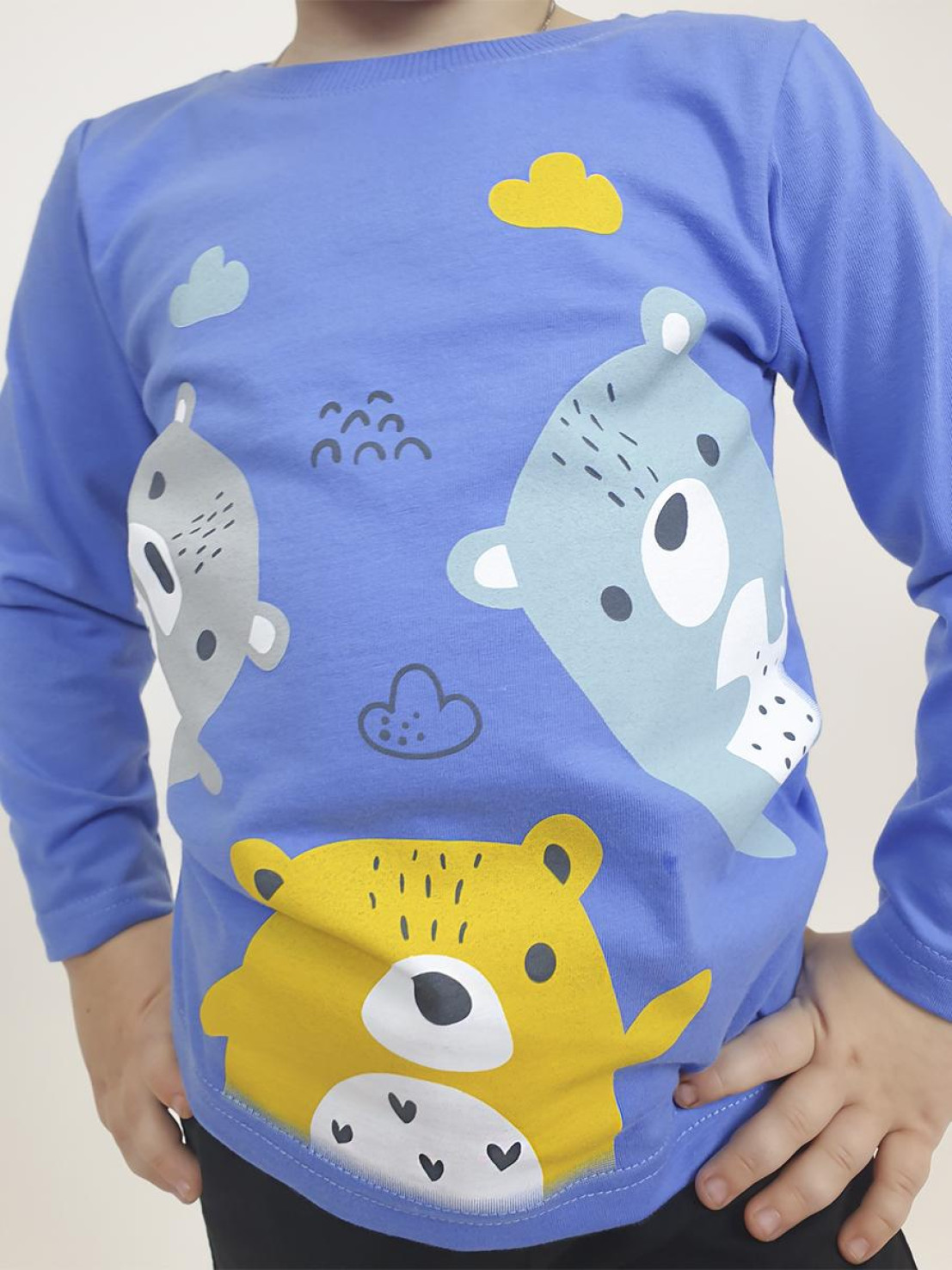 Кулирное полотно:100% х/б. Фуфайка-прямой силуэт,длинный втачной рукав.Горловина обработана ластиком.Печать на переде.