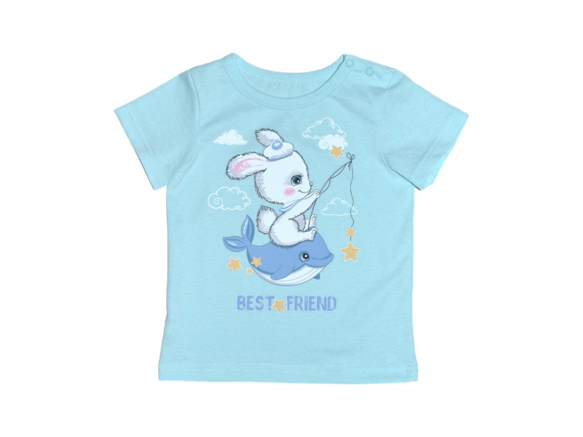 Кулирное полотно: 100% х/б. Фуфайка-прямой силуэт,короткий втачной рукав.Горловина окантована,застежка в плечевом шве на кнопки.Печать на переде.