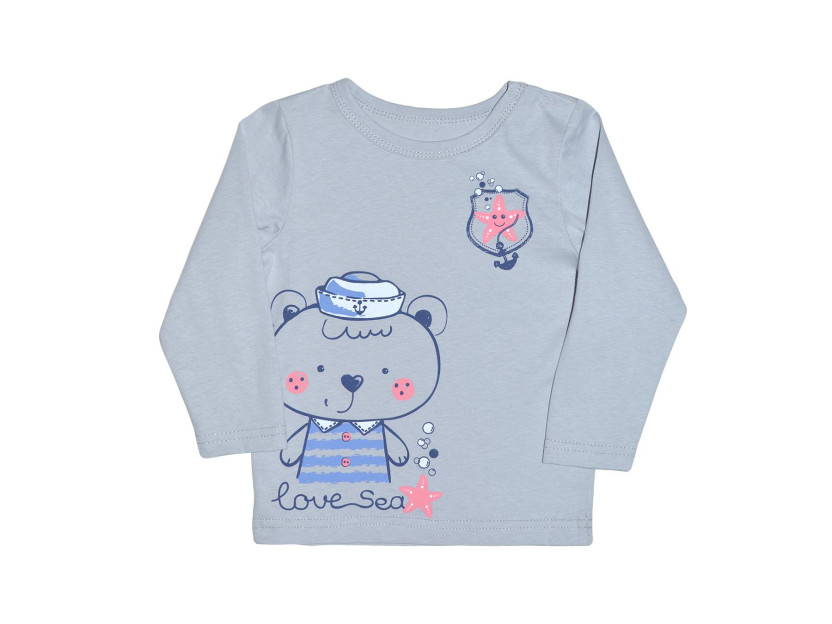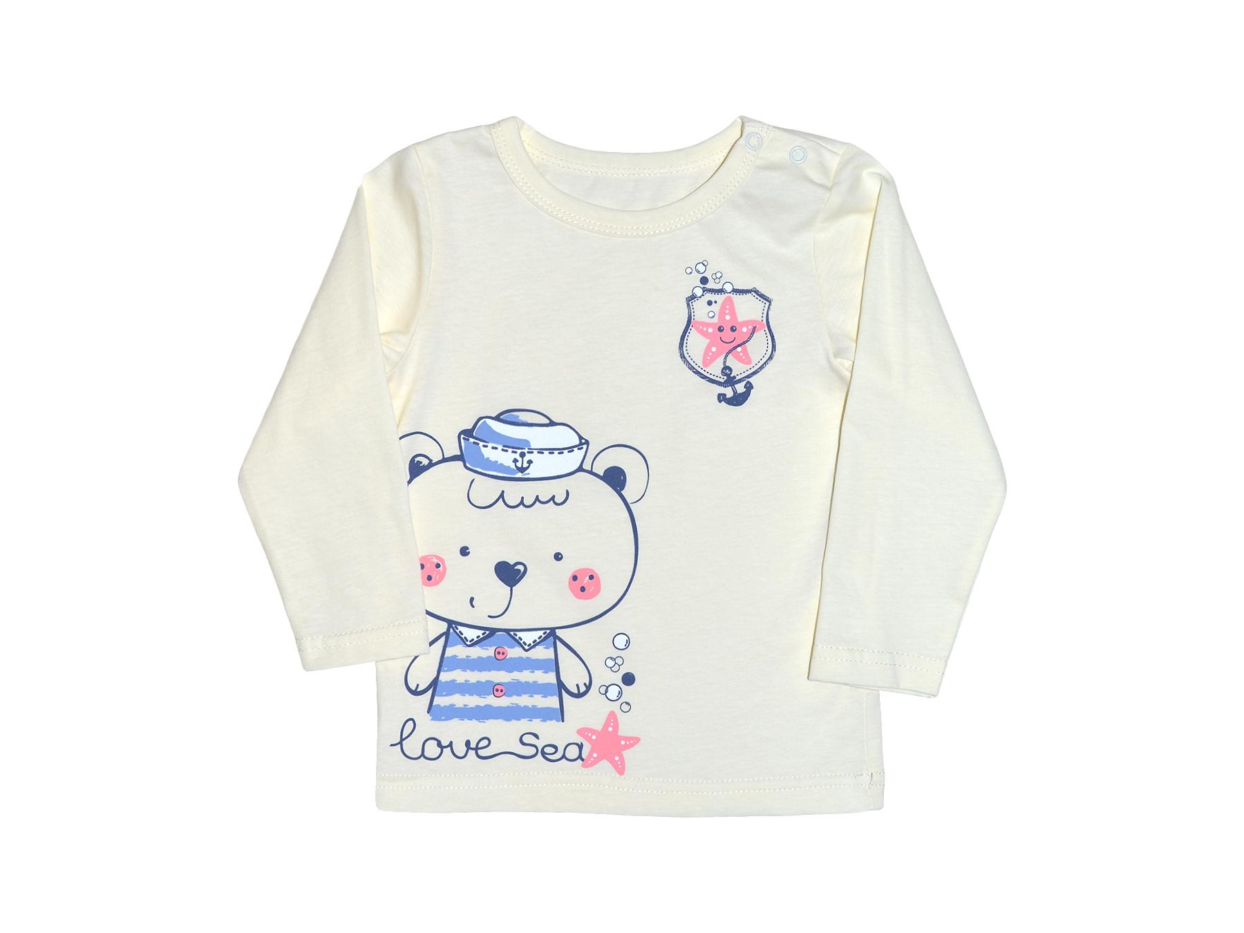Кулирное полотно:100% х/б. Фуфайка-прямой силуэт,длинный втачной рукав.Горловина окантована,застежка в плече на кнопки.Печать на переде.