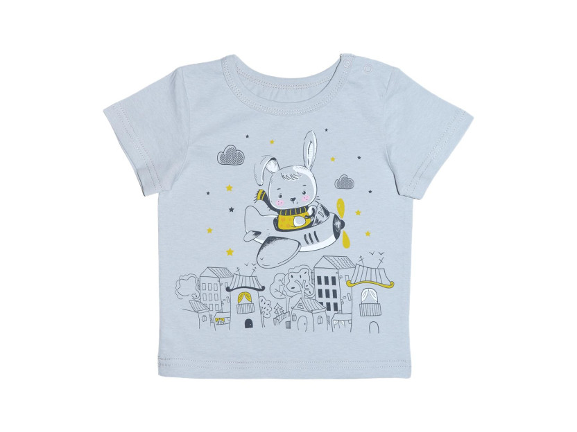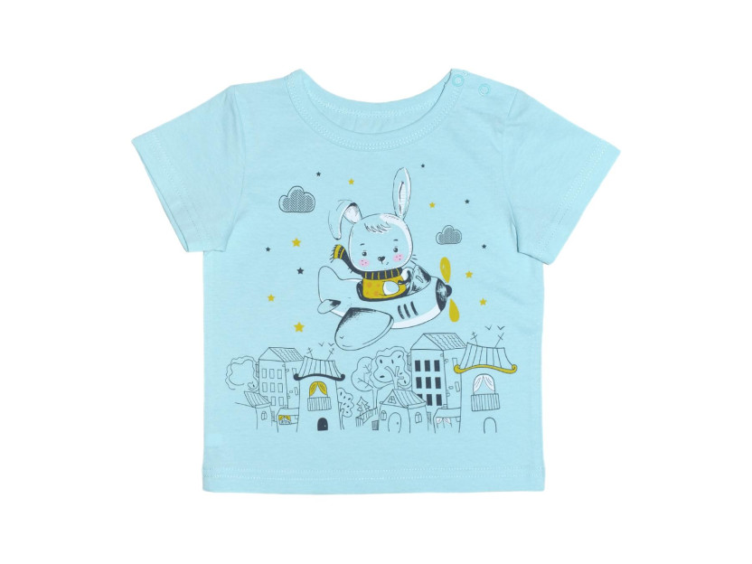 Кулирное полотно:100% х/б. Фуфайка-прямой силуэт,короткий втачной рукав.Горловина окантована,застежка в плечевом шве на кнопки.Печать на переде.