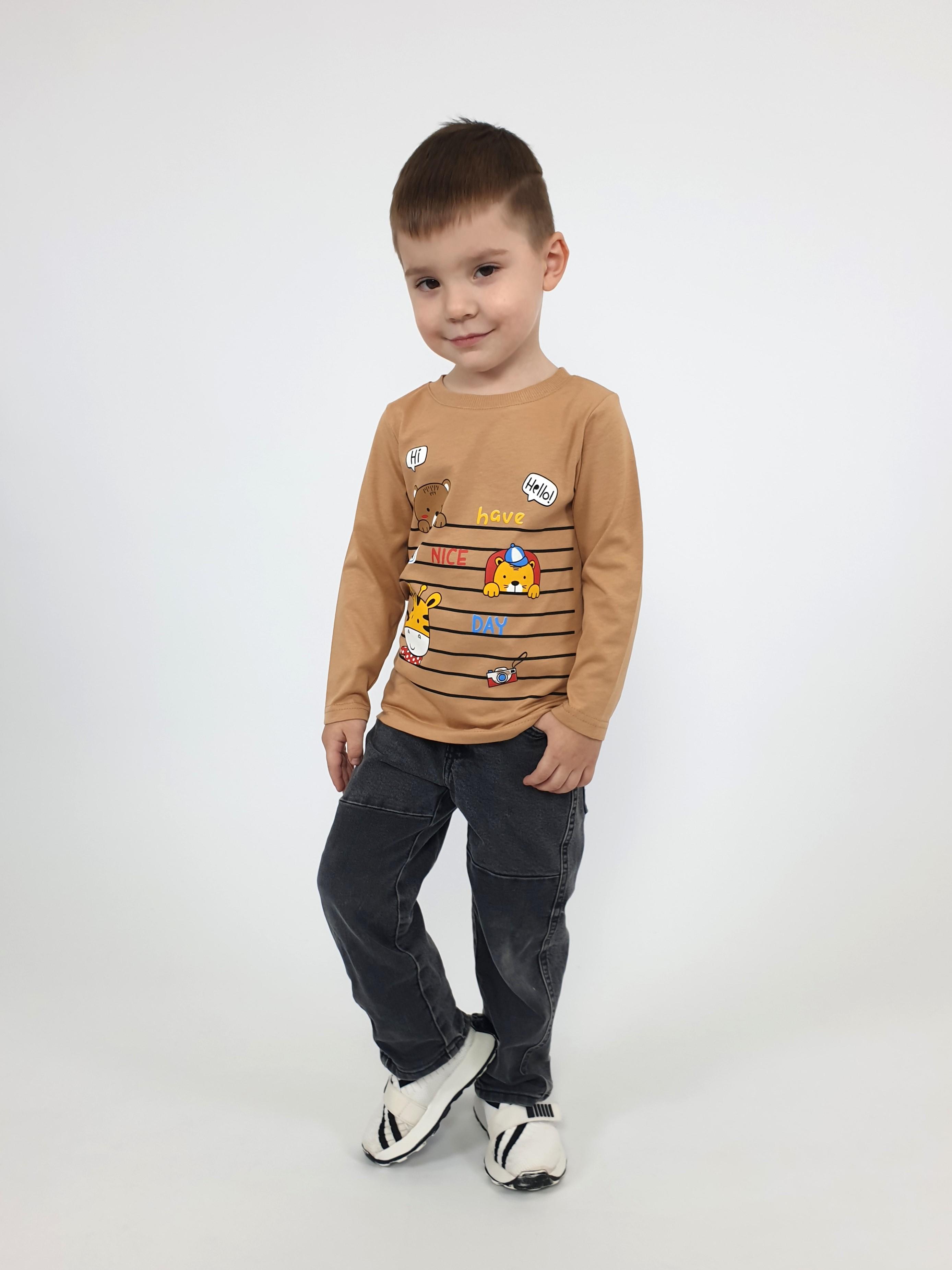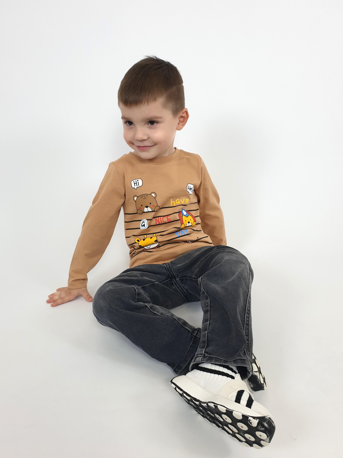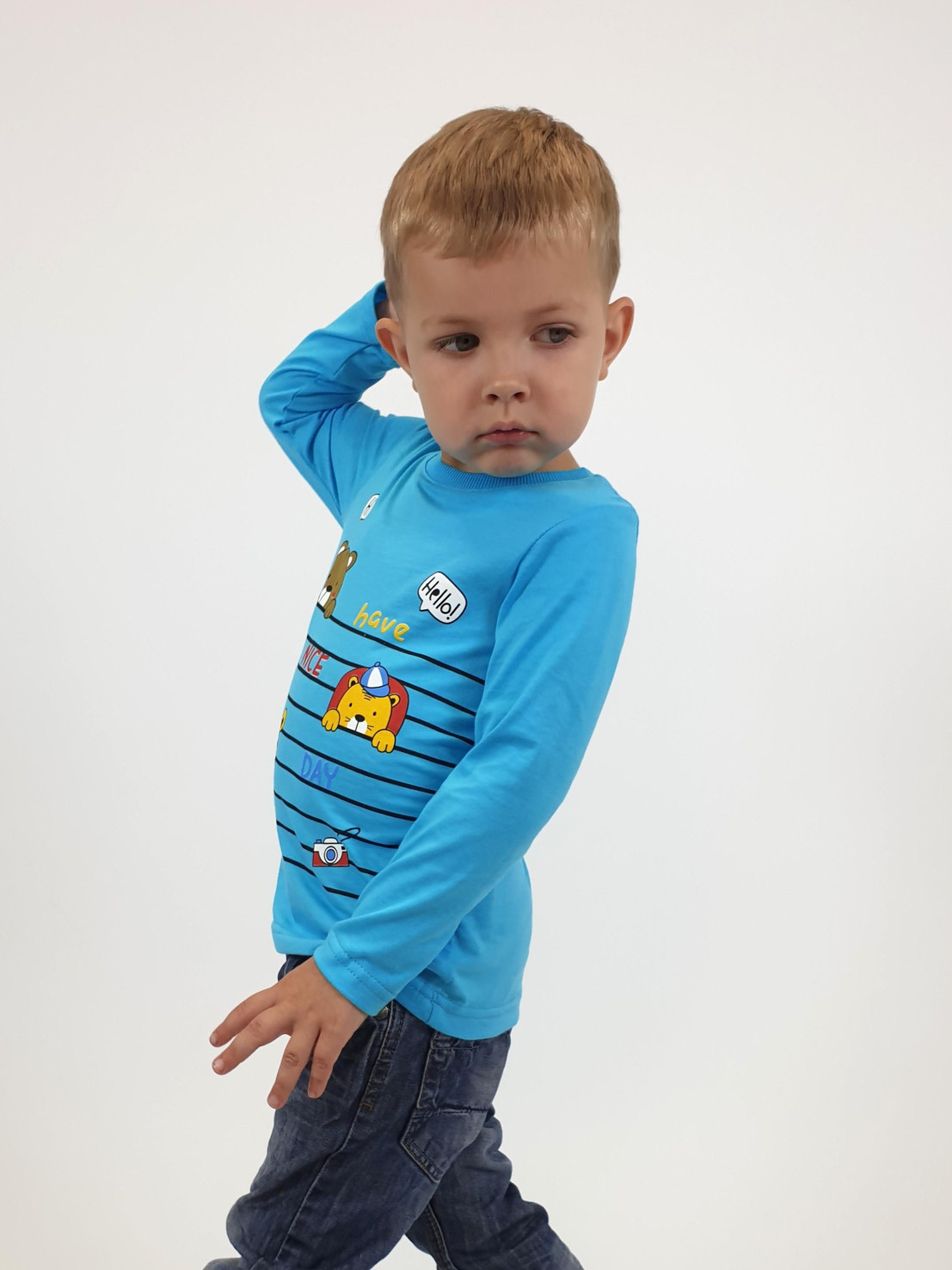Кулирное полотно:100% х/б. Фуфайка-прямой силуэт,длинный втачной рукав.Горловина обработана ластиком.Печать на переде.