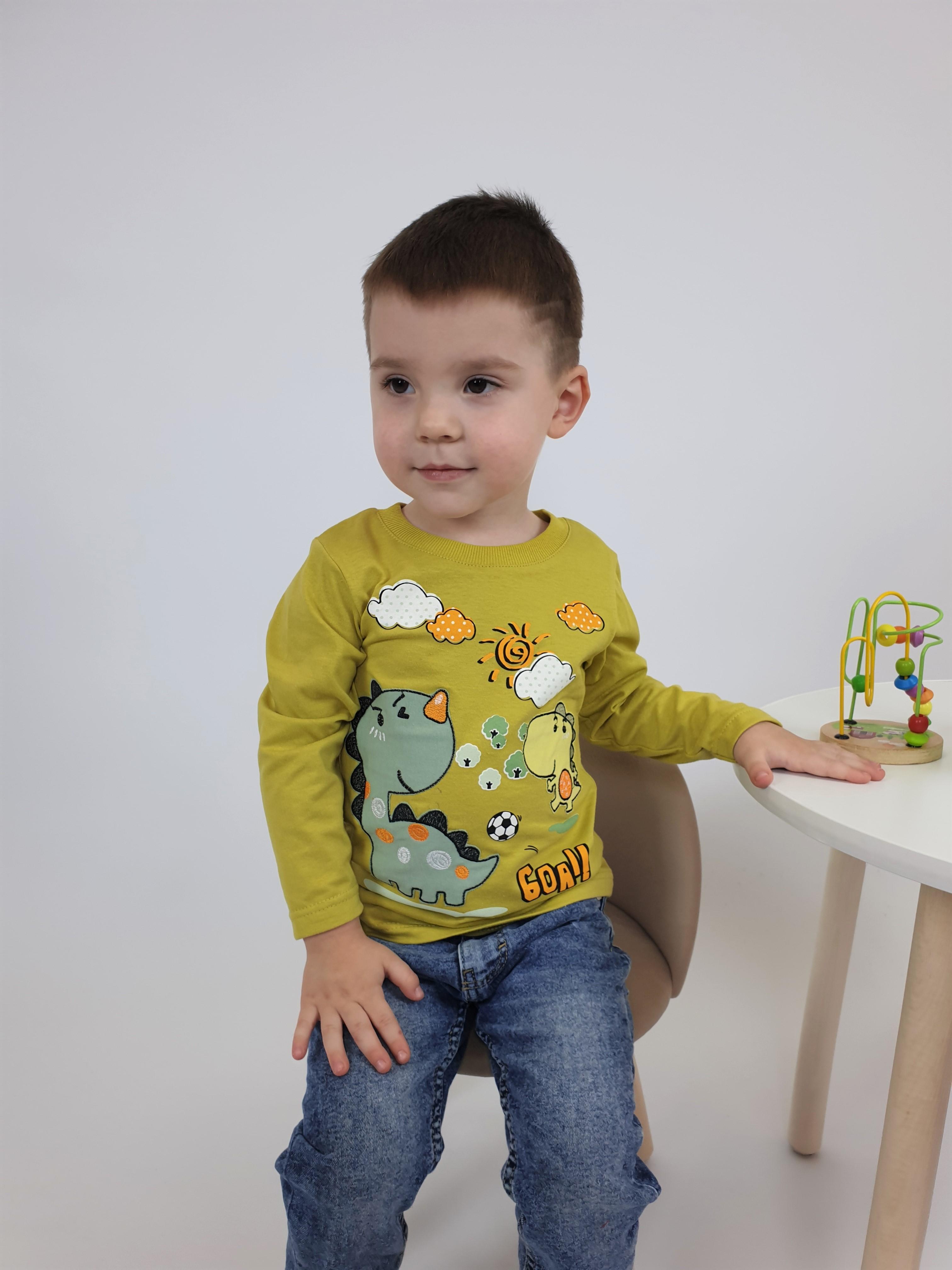 Кулирное полотно:100% х/б. Фуфайка-прямой силуэт,длинный втачной рукав.Горловина обработана ластиком.Печать и вышивка(аппликация) на переде.