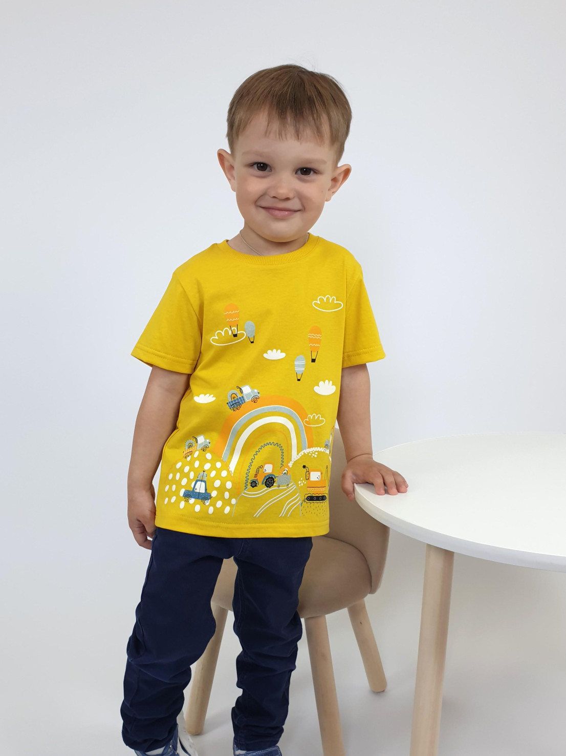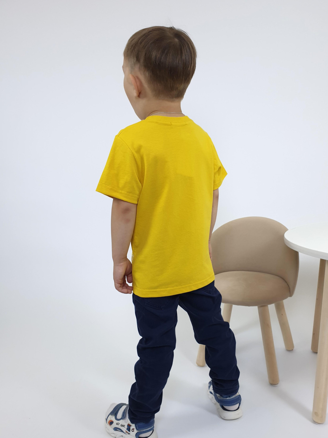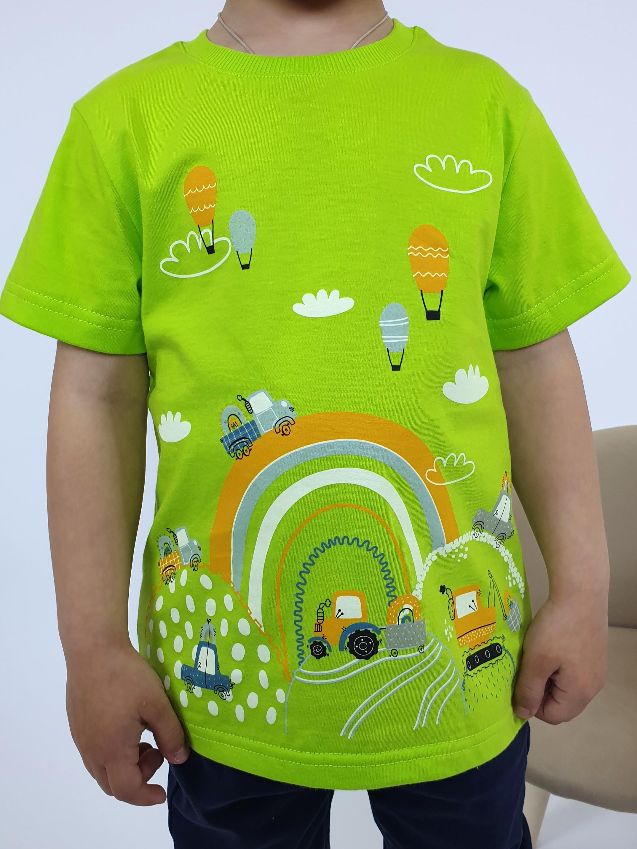 Кулирное полотно:100% х/б. Фуфайка-прямой силуэт,короткий втачной рукав.Горловина обработана ластиком.Печать на переде.