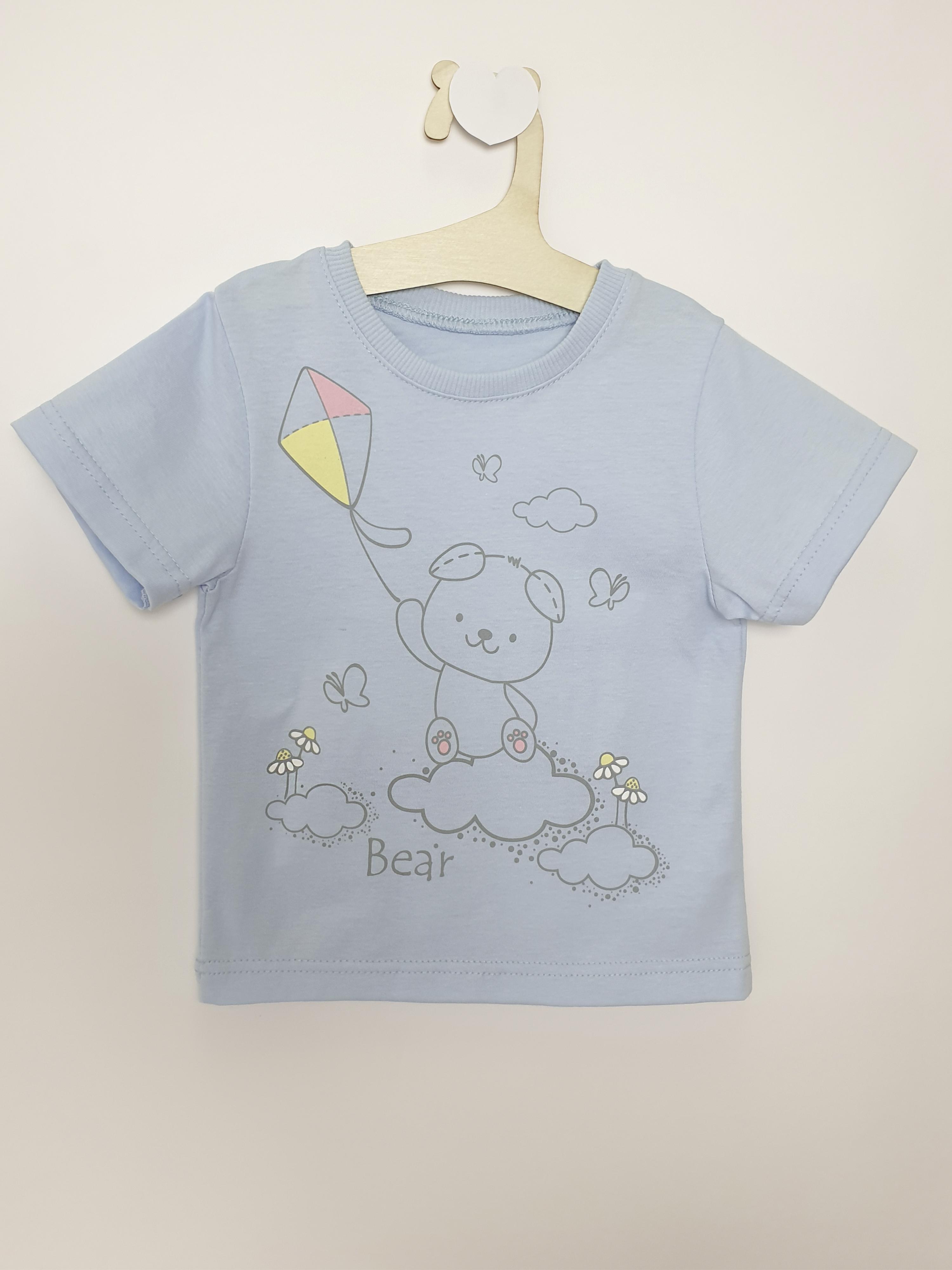 Кулирное полотно:100% х/б. Фуфайка-прямой силуэт,короткий втачной рукав.Горловина обработана ластиком.Печать на переде.