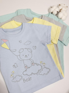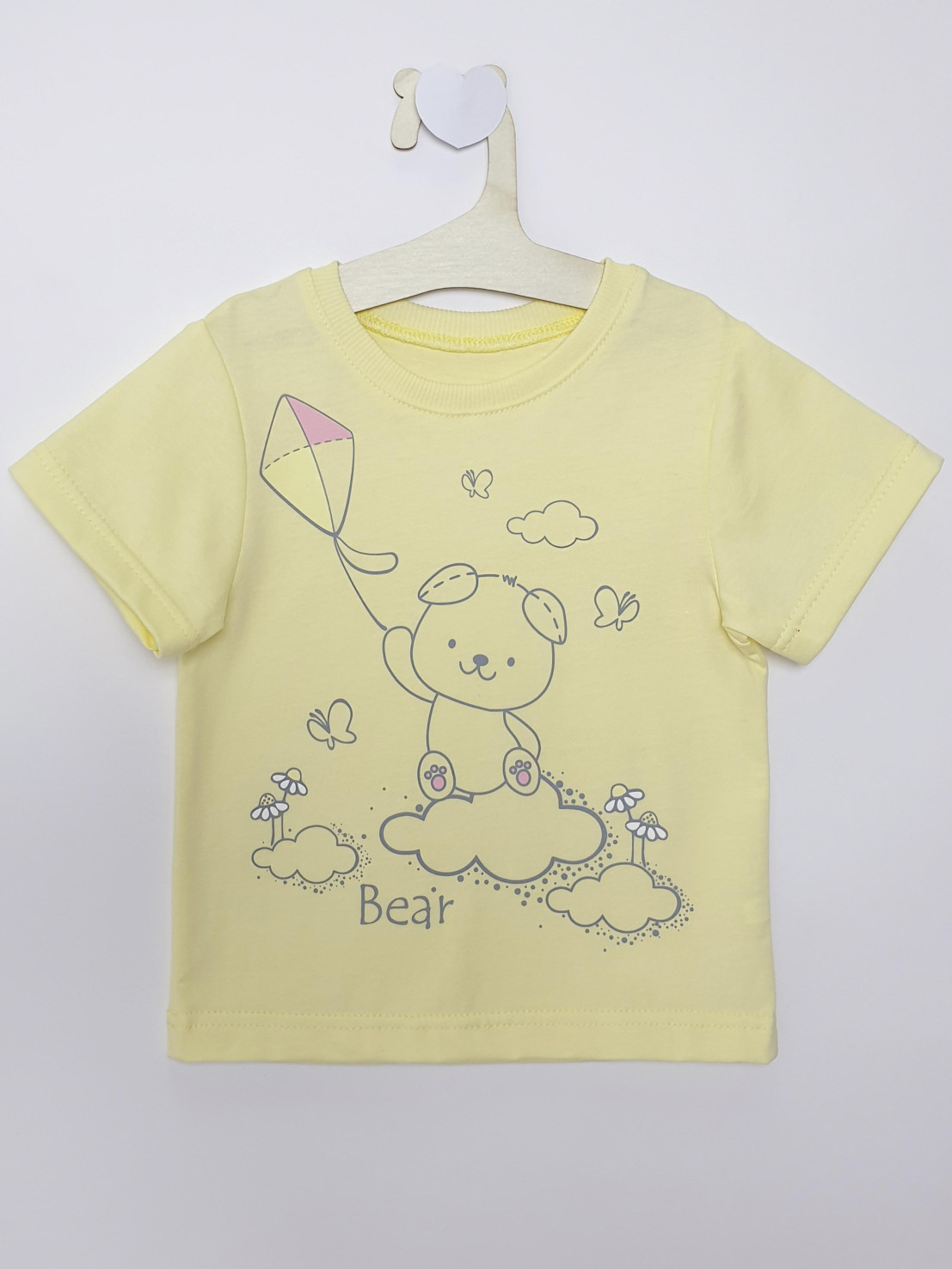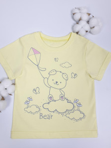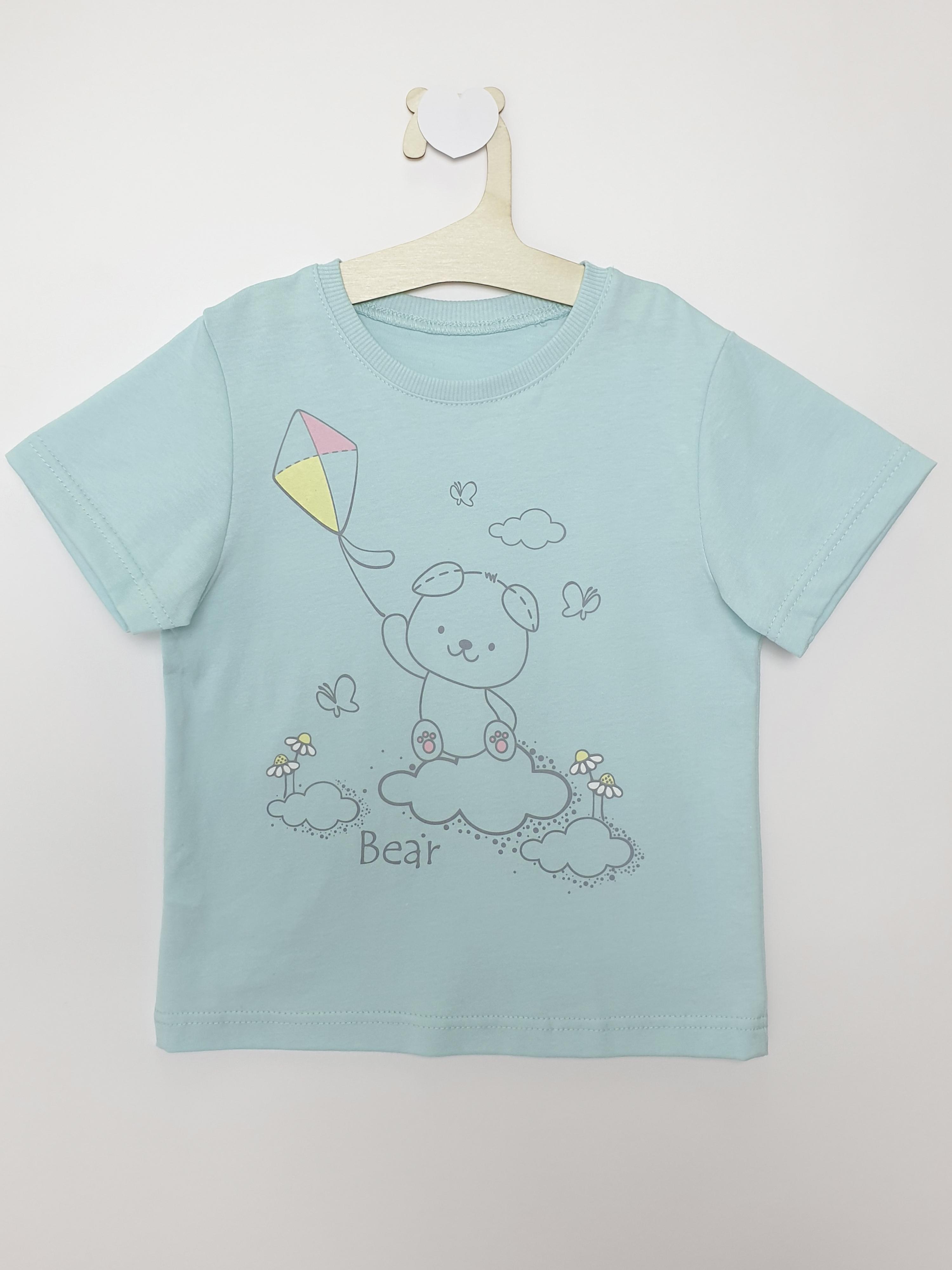 Кулирное полотно:100% х/б. Фуфайка-прямой силуэт,короткий втачной рукав.Горловина обработана ластиком.Печать на переде.