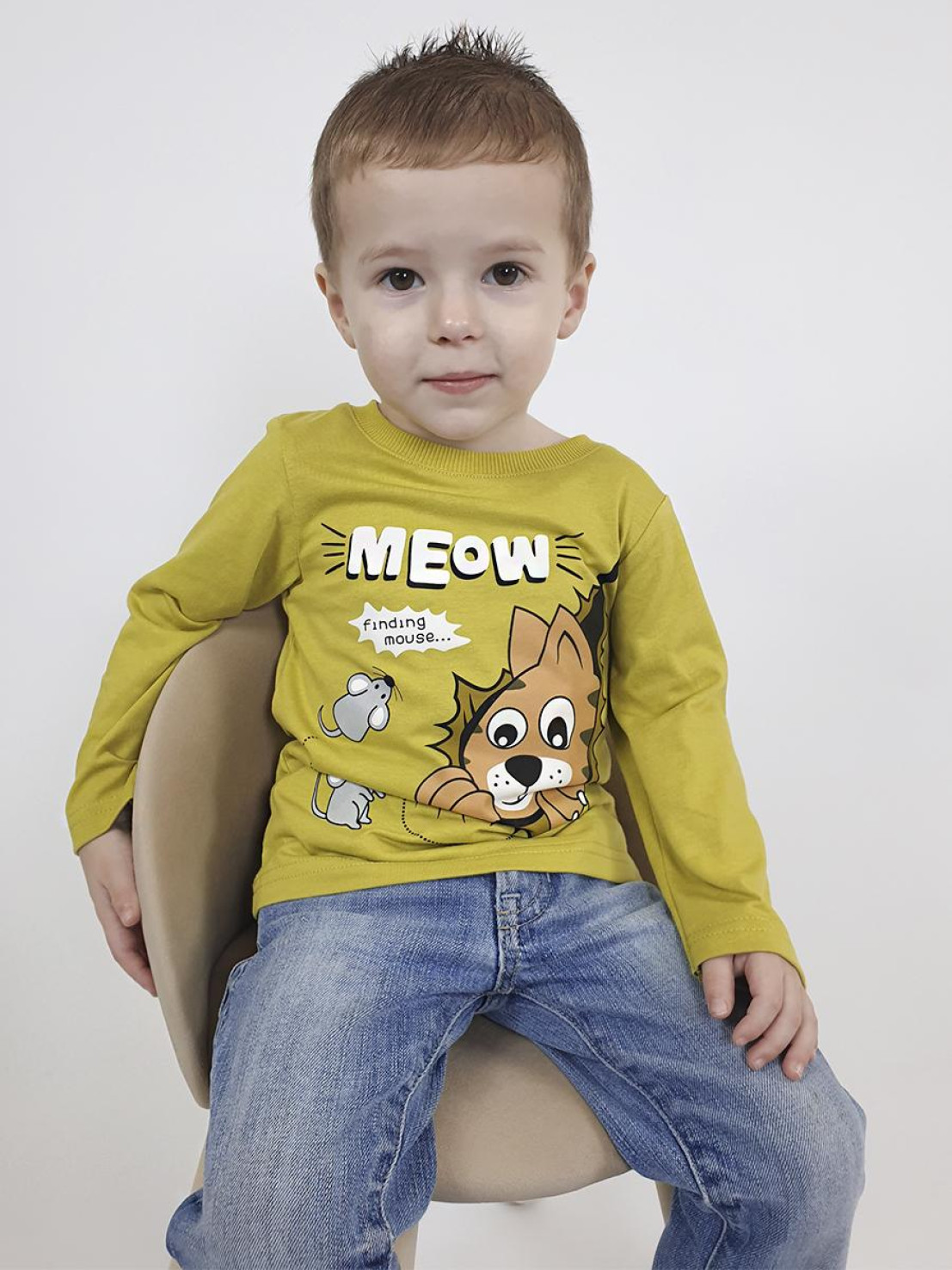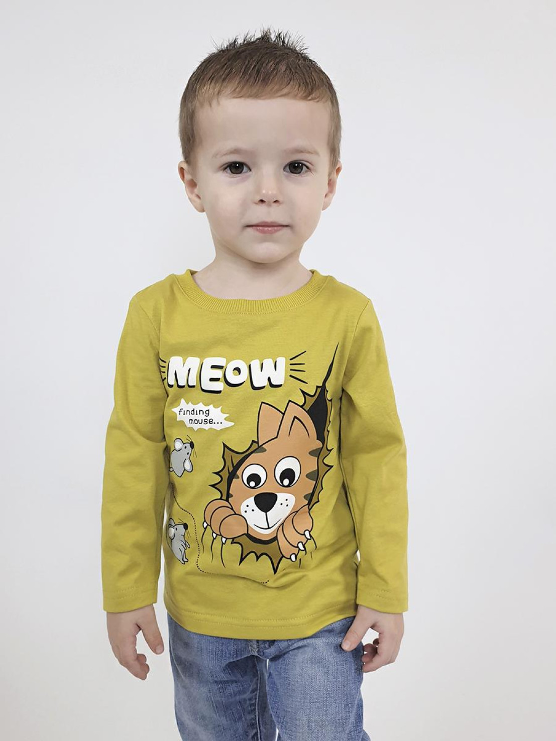 Кулирное полотно:100% х/б. Фуфайка-прямой силуэт,длинный втачной рукав.Горловина обработана ластиком.Печать на переде.