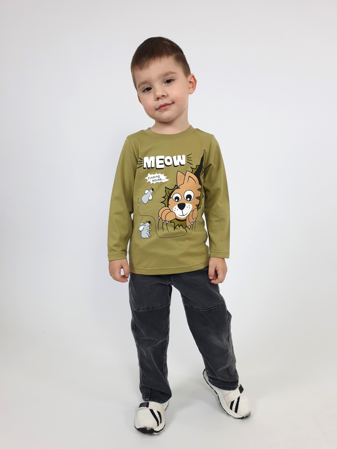 Кулирное полотно:100% х/б. Фуфайка-прямой силуэт,длинный втачной рукав.Горловина обработана ластиком.Печать на переде.