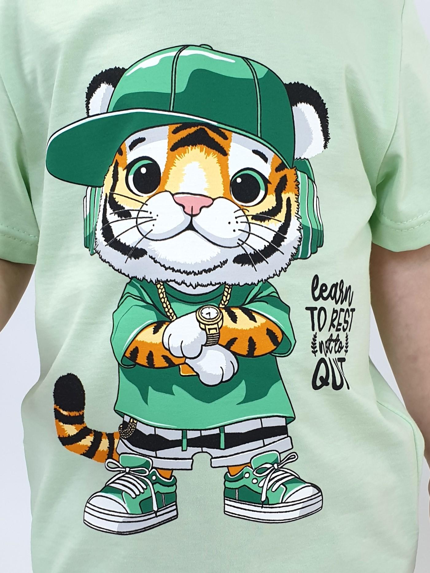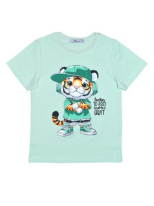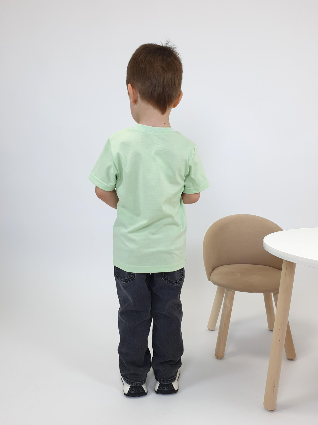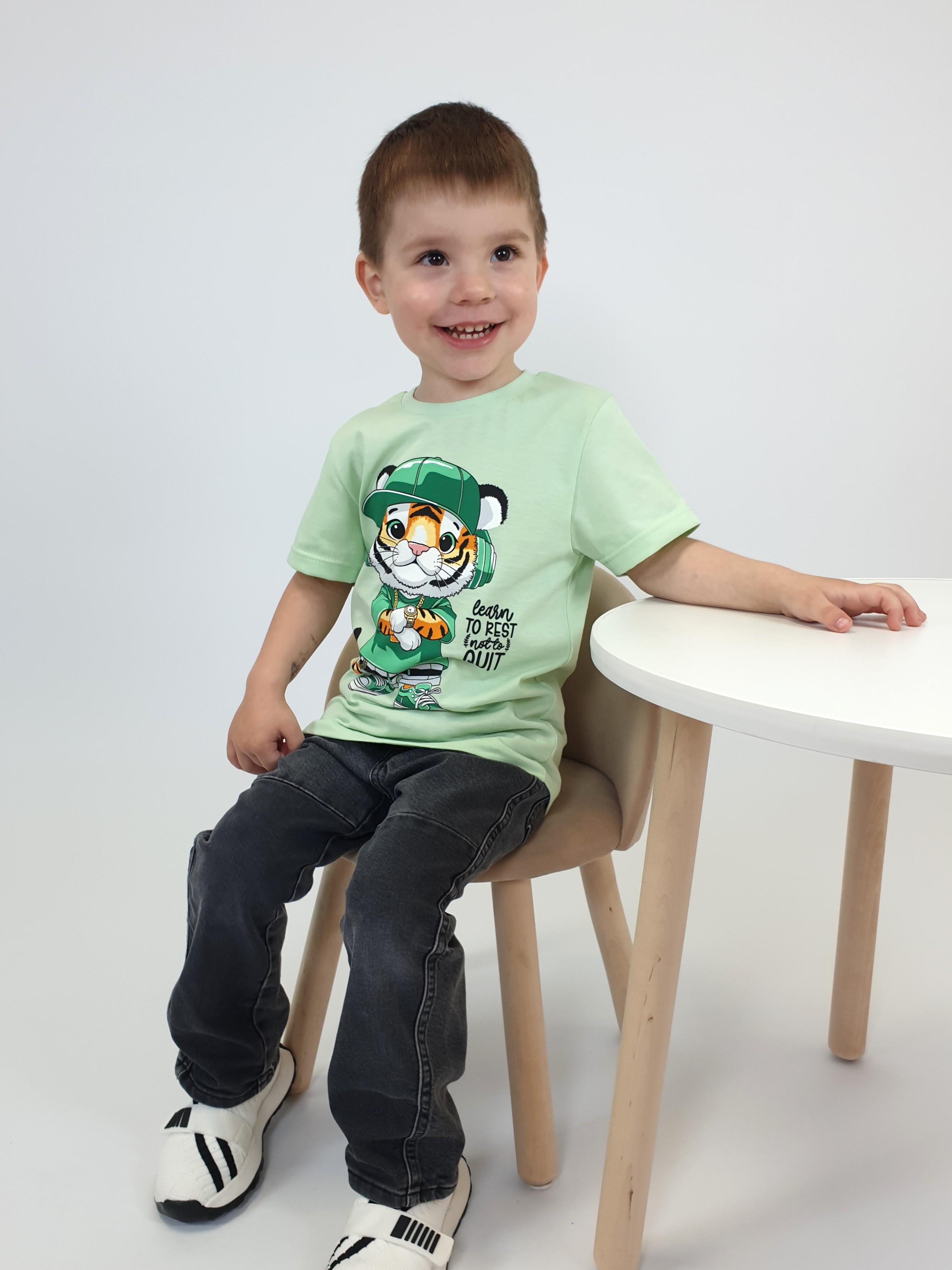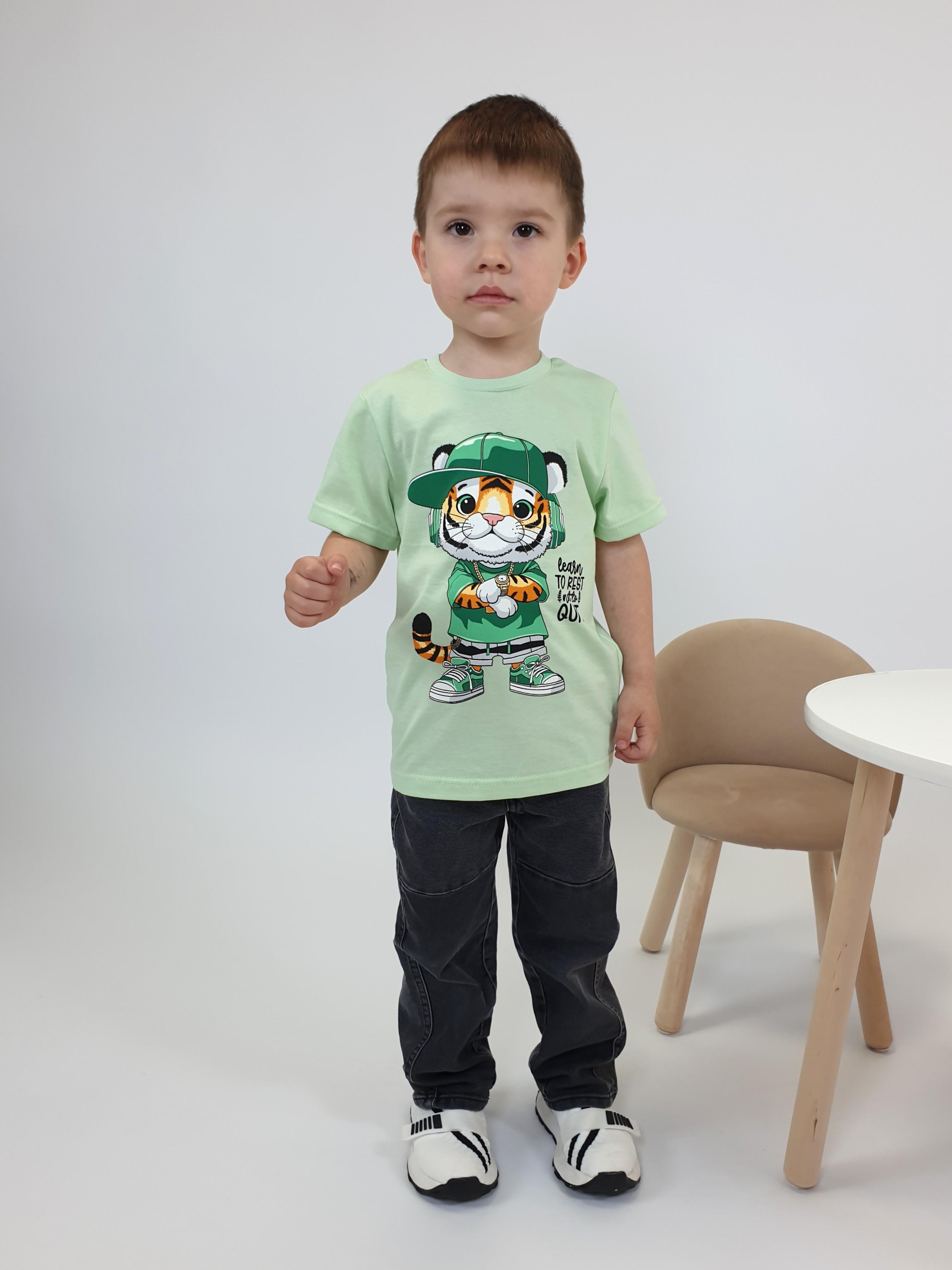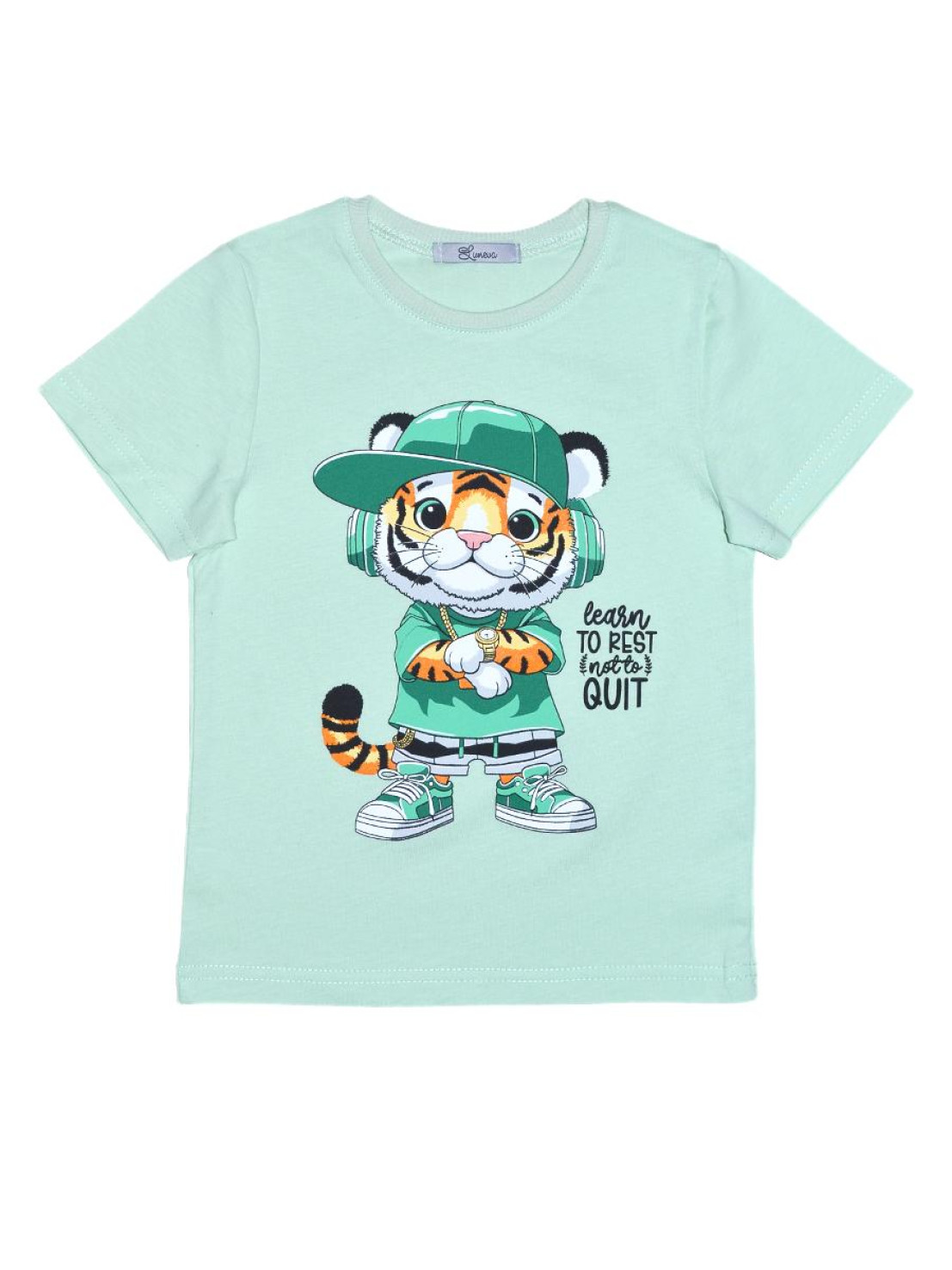 Кулирное полотно:100% х/б. Фуфайка-прямой силуэт,короткий втачной рукав.Горловина обработана ластиком.Печать на переде.