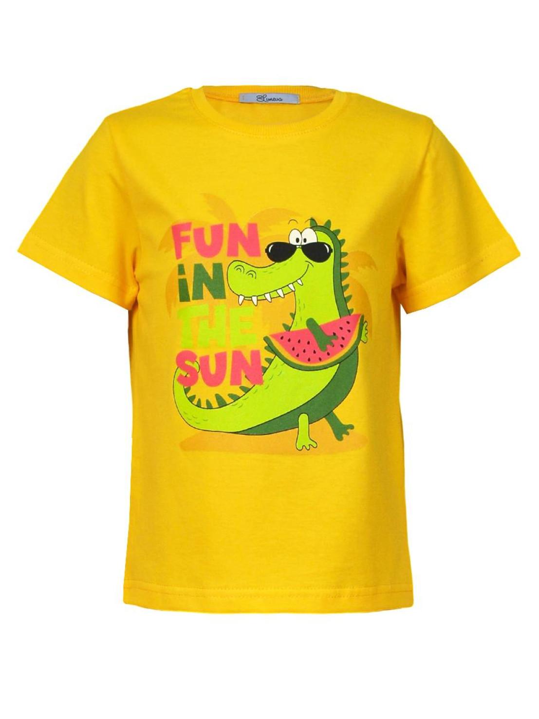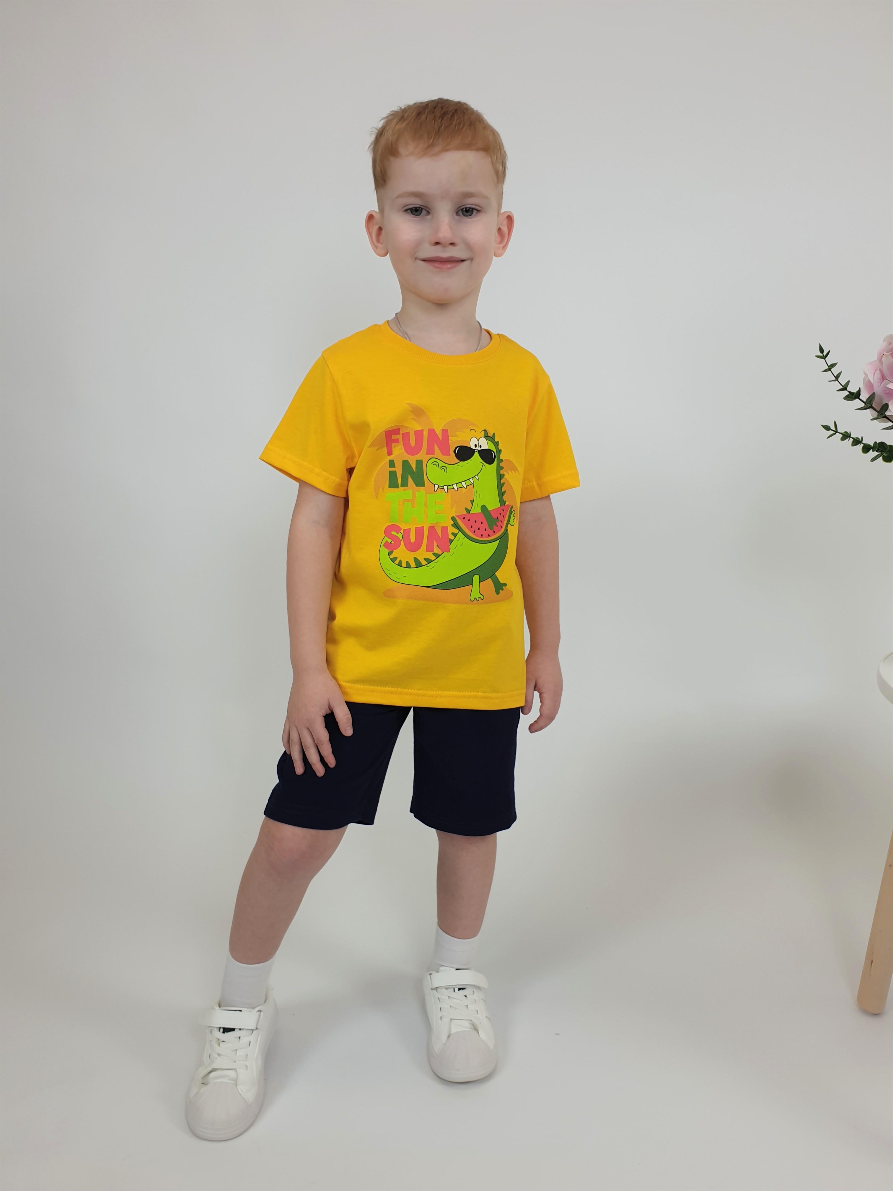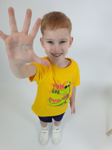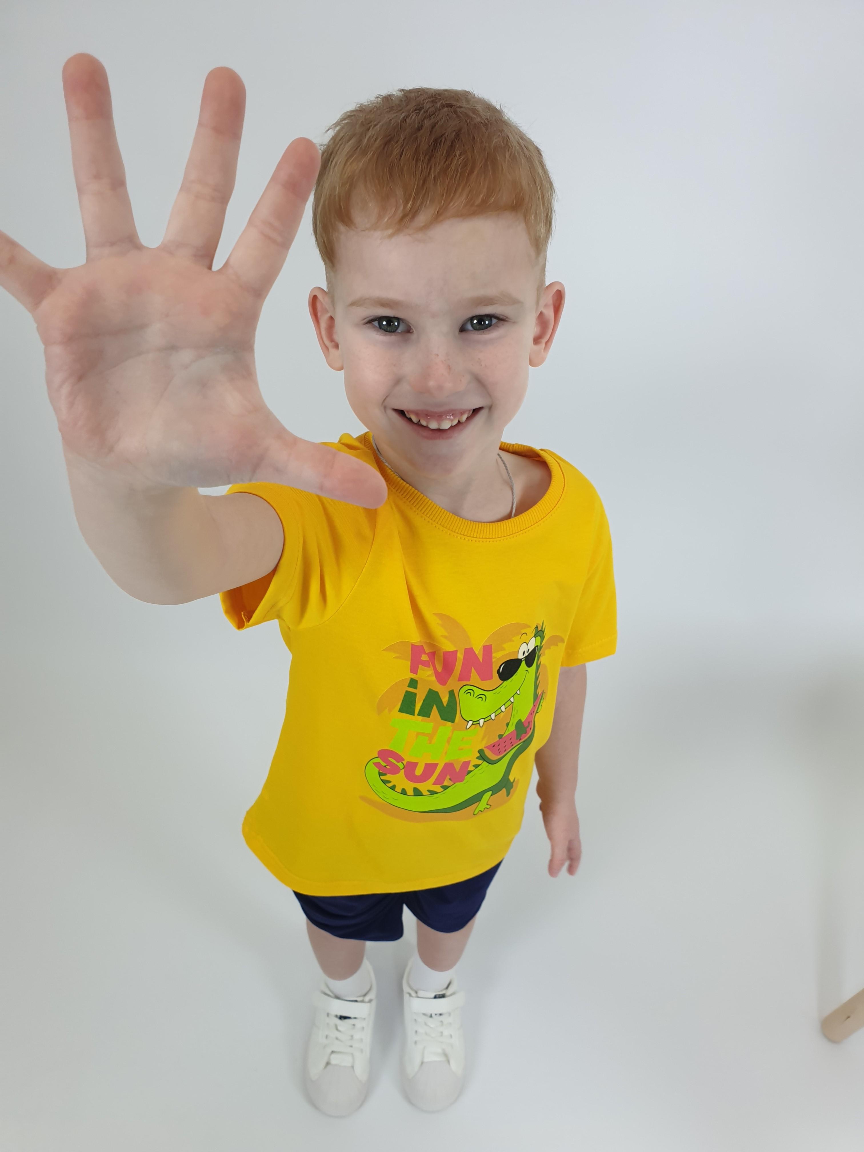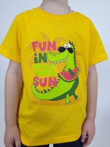 Кулирное полотно:100% х/б. Фуфайка-прямой силуэт,короткий втачной рукав.Горловина обработана ластиком.Печать на переде.