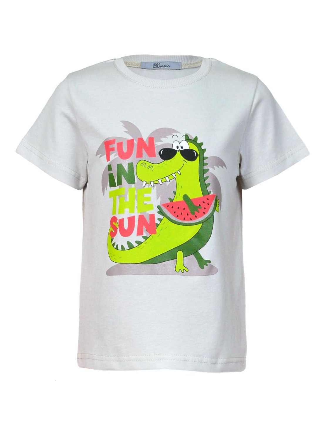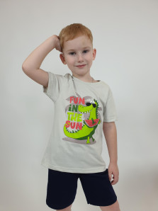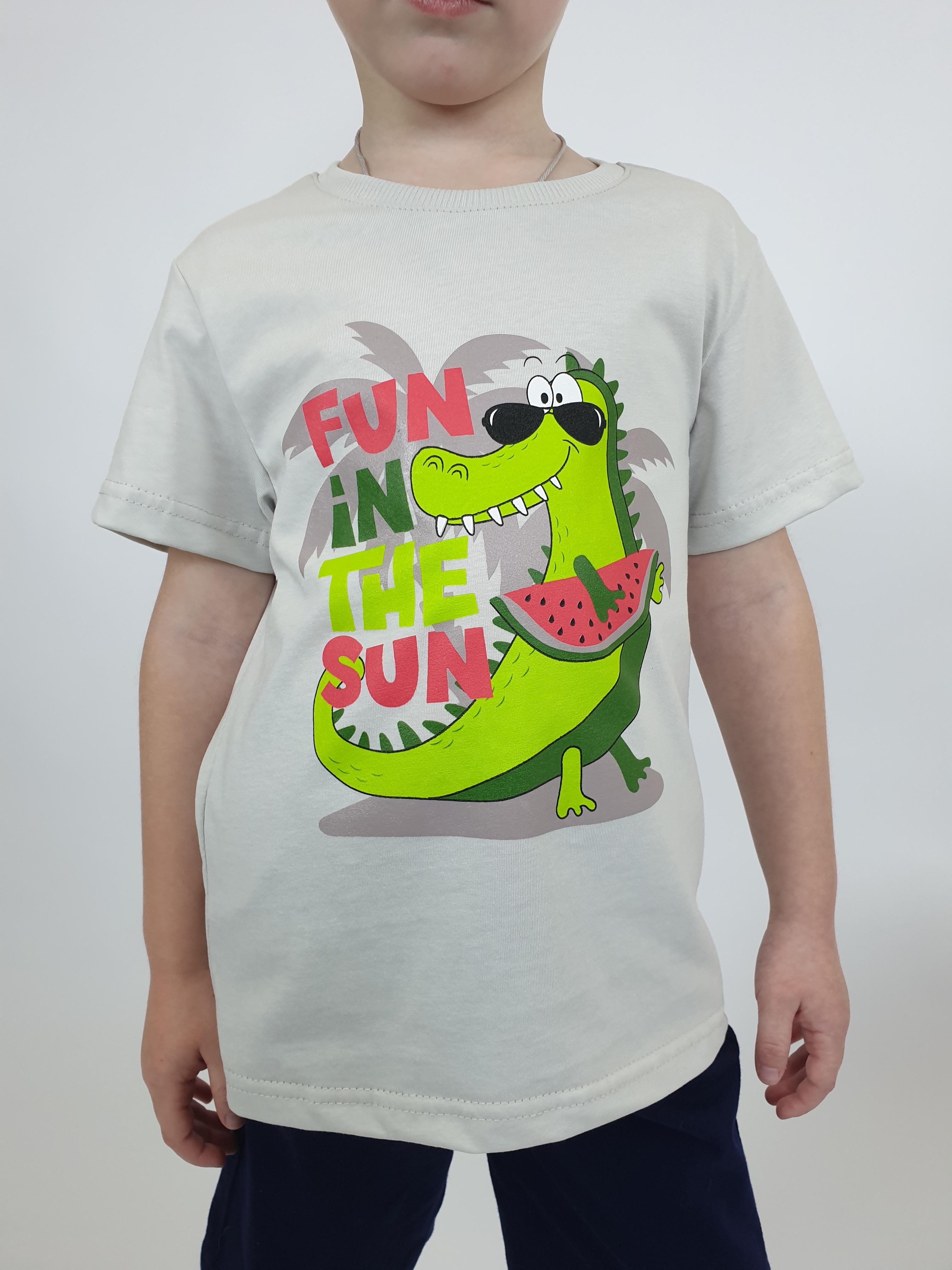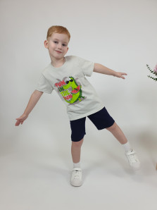 Кулирное полотно:100% х/б. Фуфайка-прямой силуэт,короткий втачной рукав.Горловина обработана ластиком.Печать на переде.
