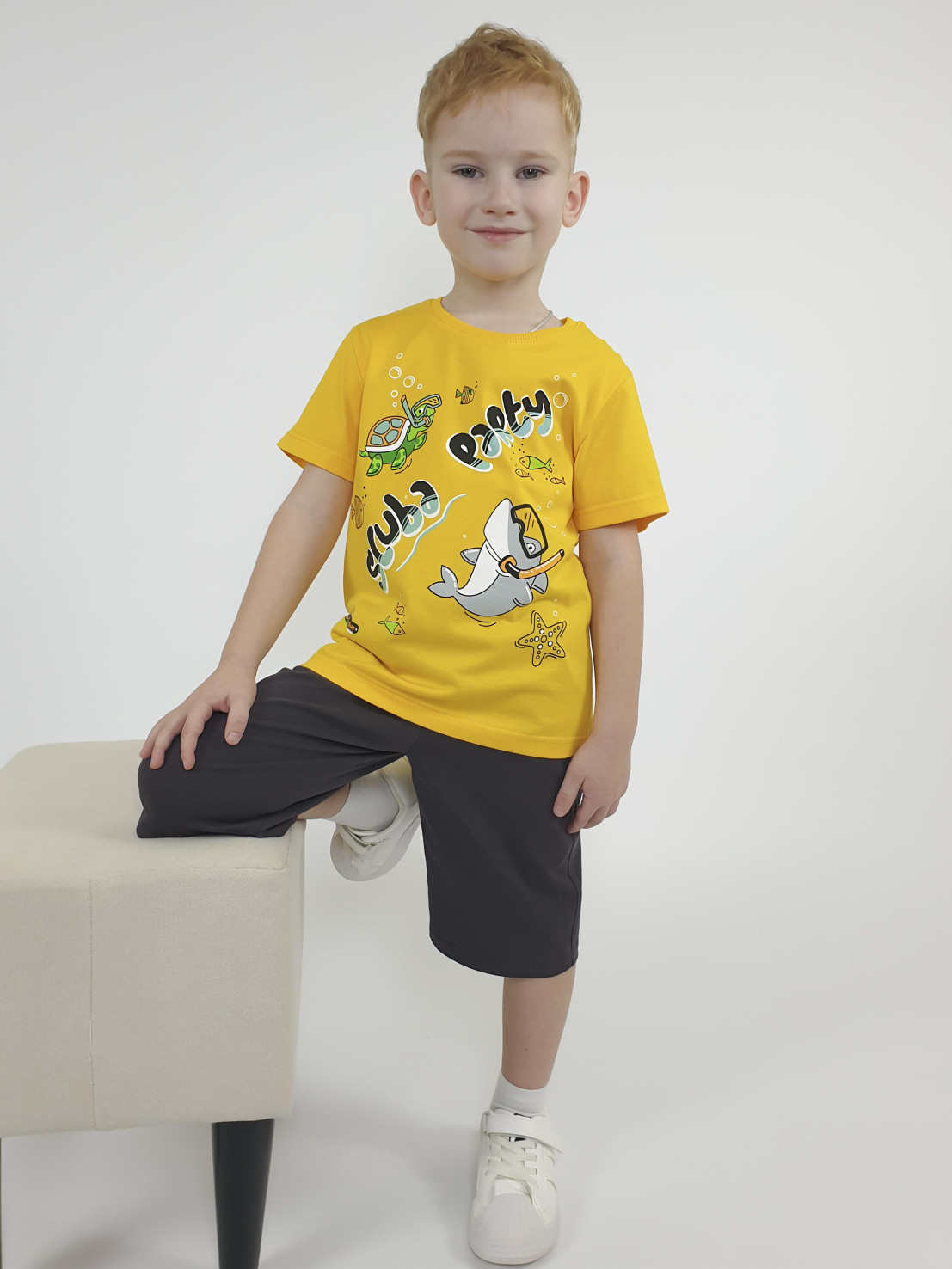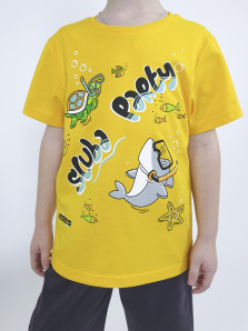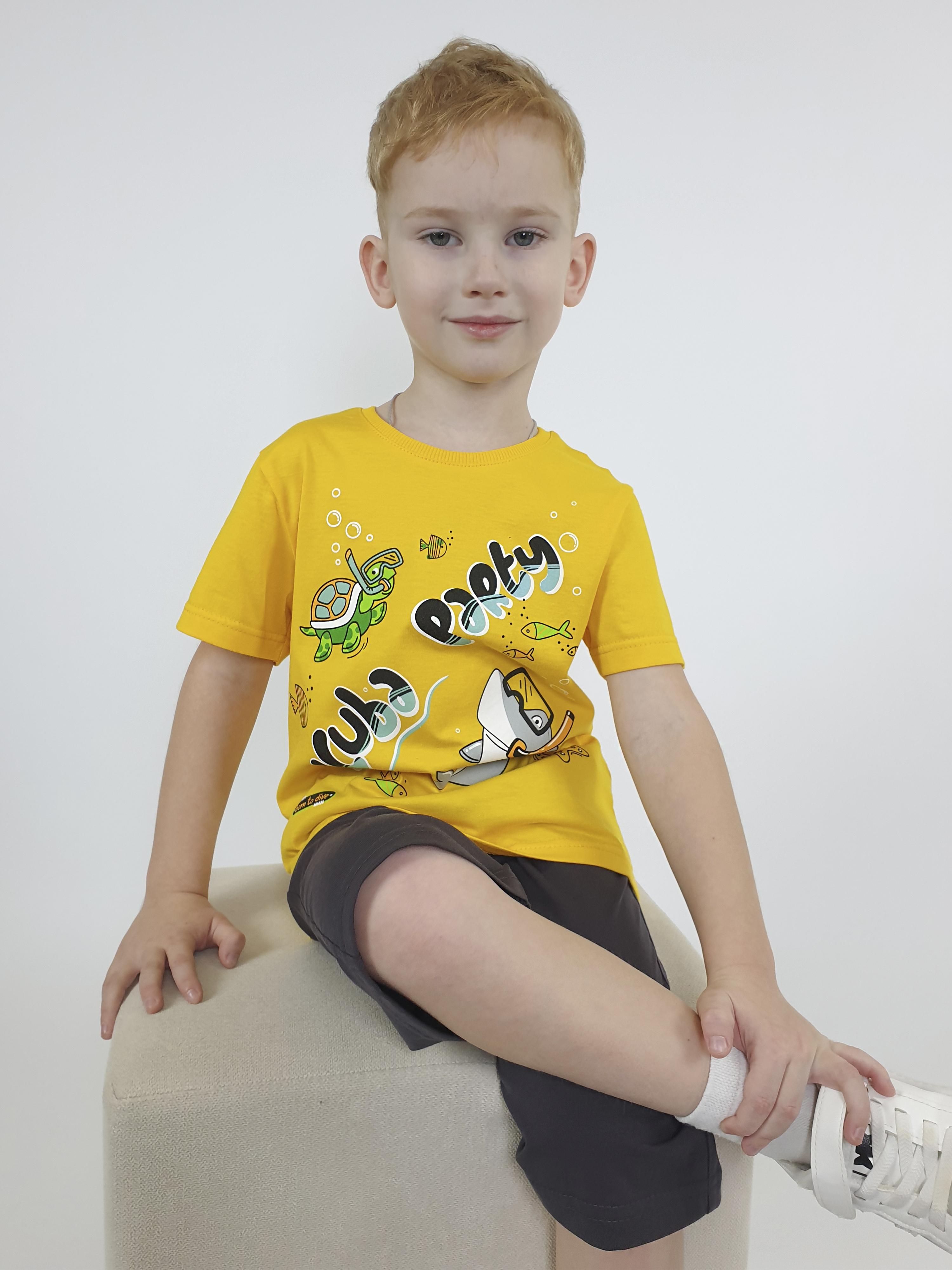 Кулирное полотно:100% х/б. Фуфайка-прямой силуэт,короткий втачной рукав.Горловина обработана ластиком.Печать на переде.