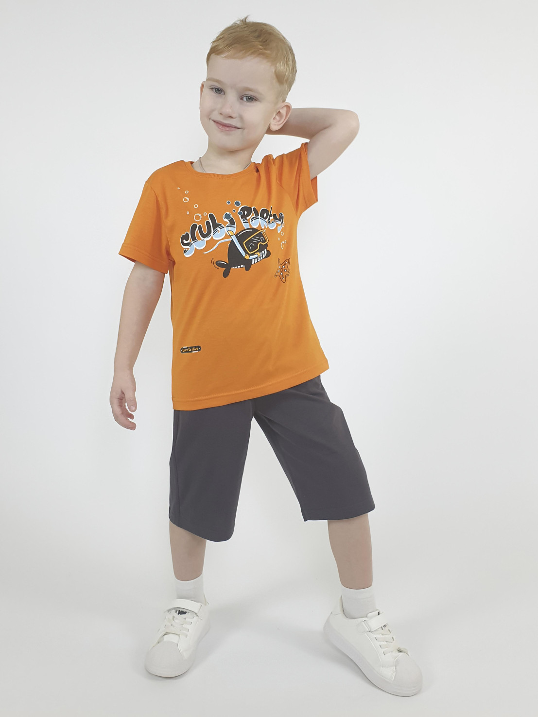 Кулирное полотно:100% х/б. Фуфайка-прямой силуэт,короткий втачной рукав.Горловина обработана ластиком.Печать на переде.