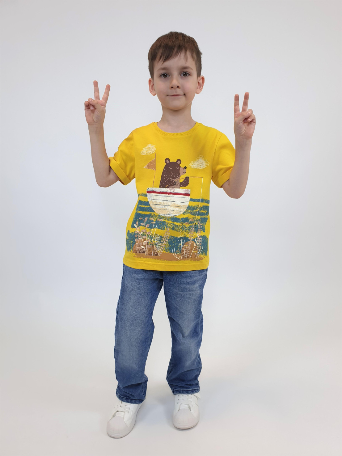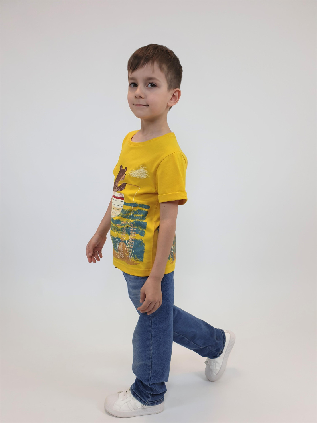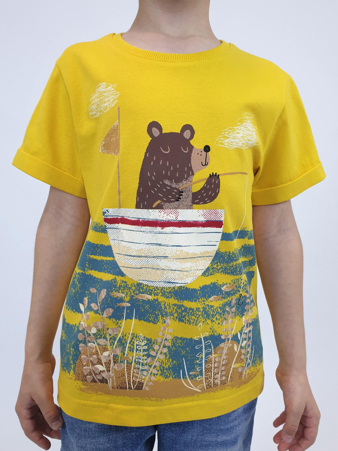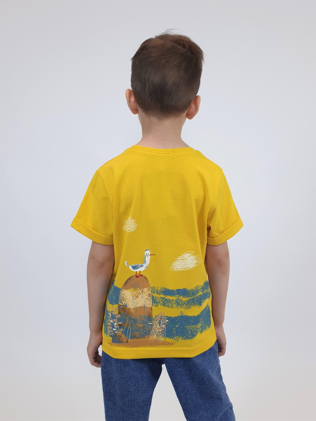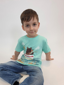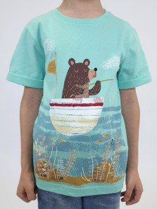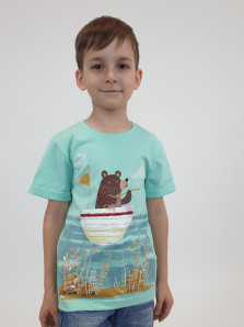 Кулирное полотно:100% х/б. Фуфайка-прямой силуэт,короткий втачной рукав с отворотом.Горловина обработана ластиком.Печать на переде и спинке.