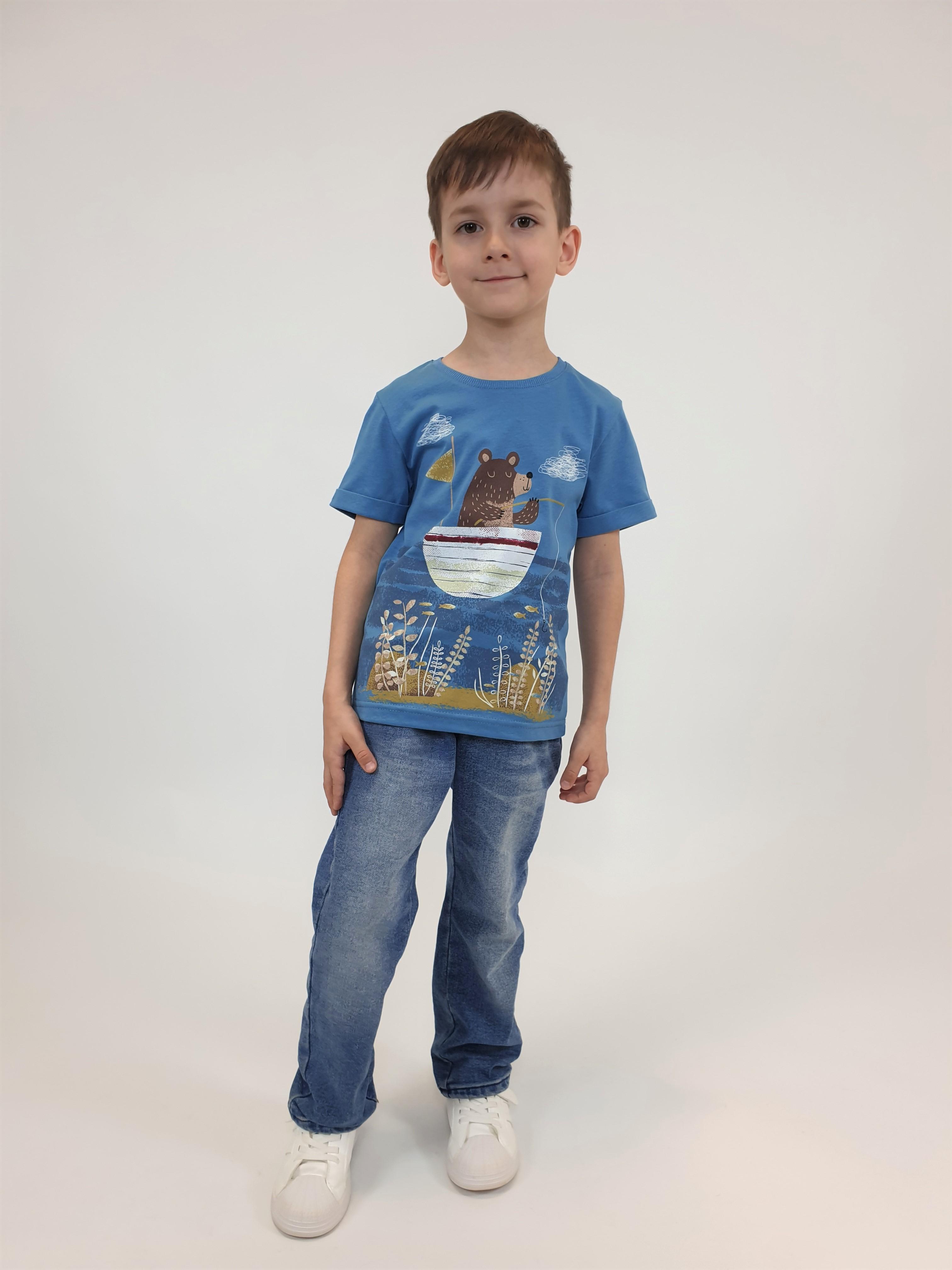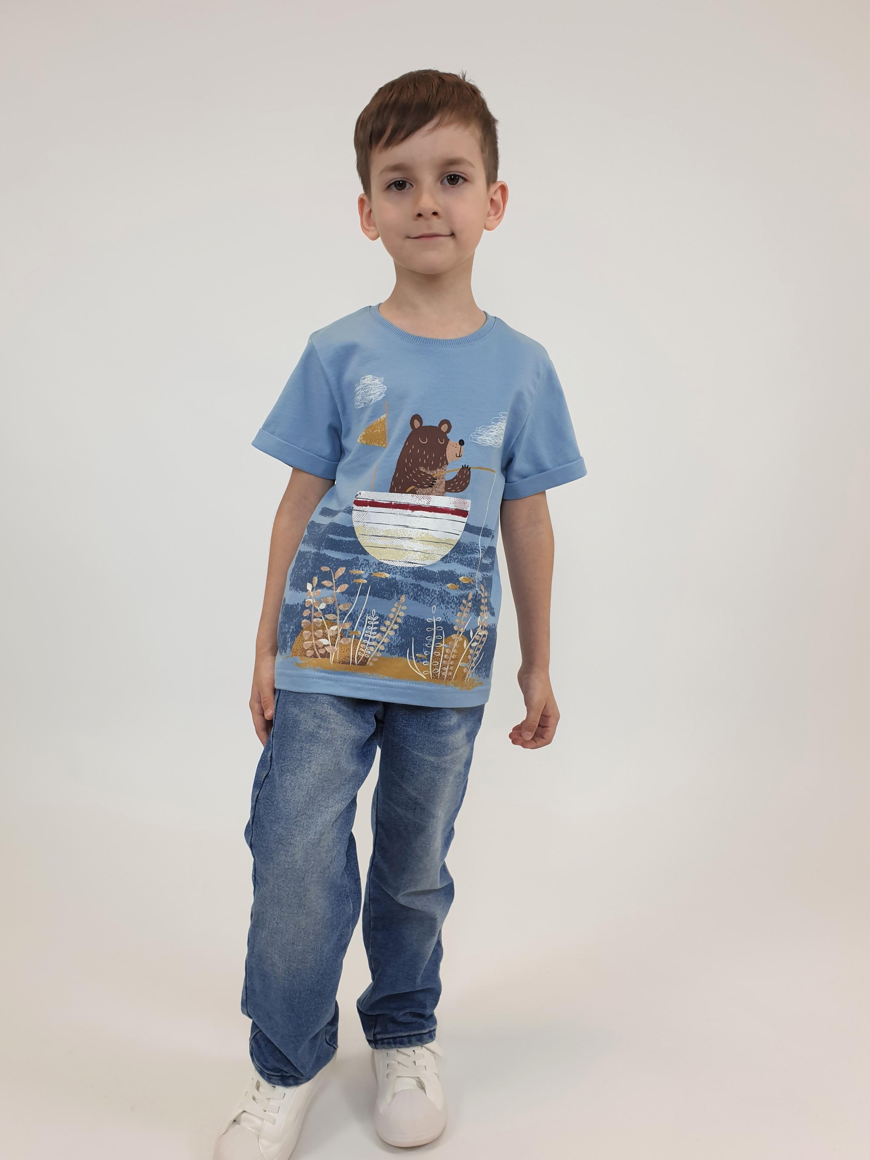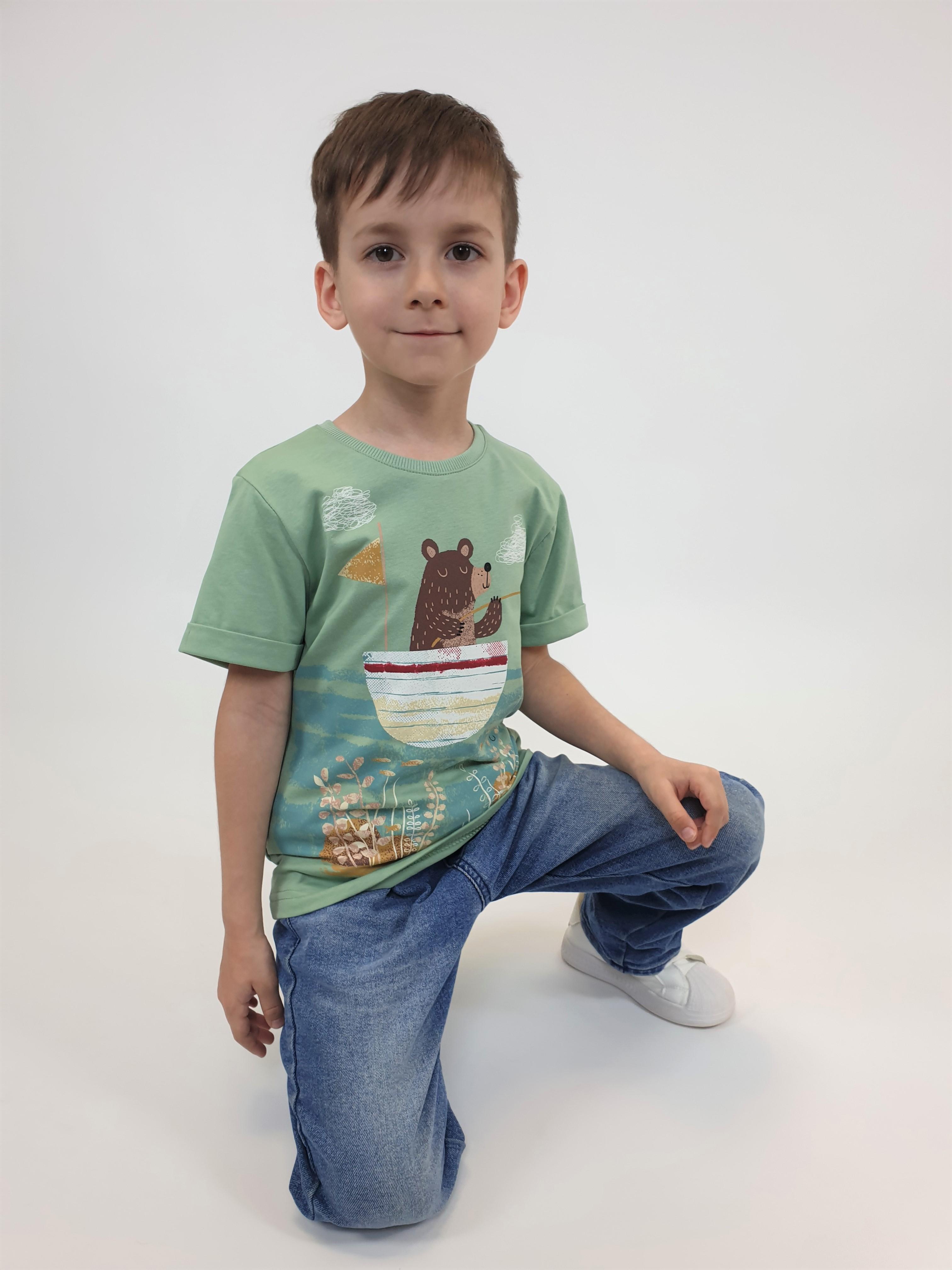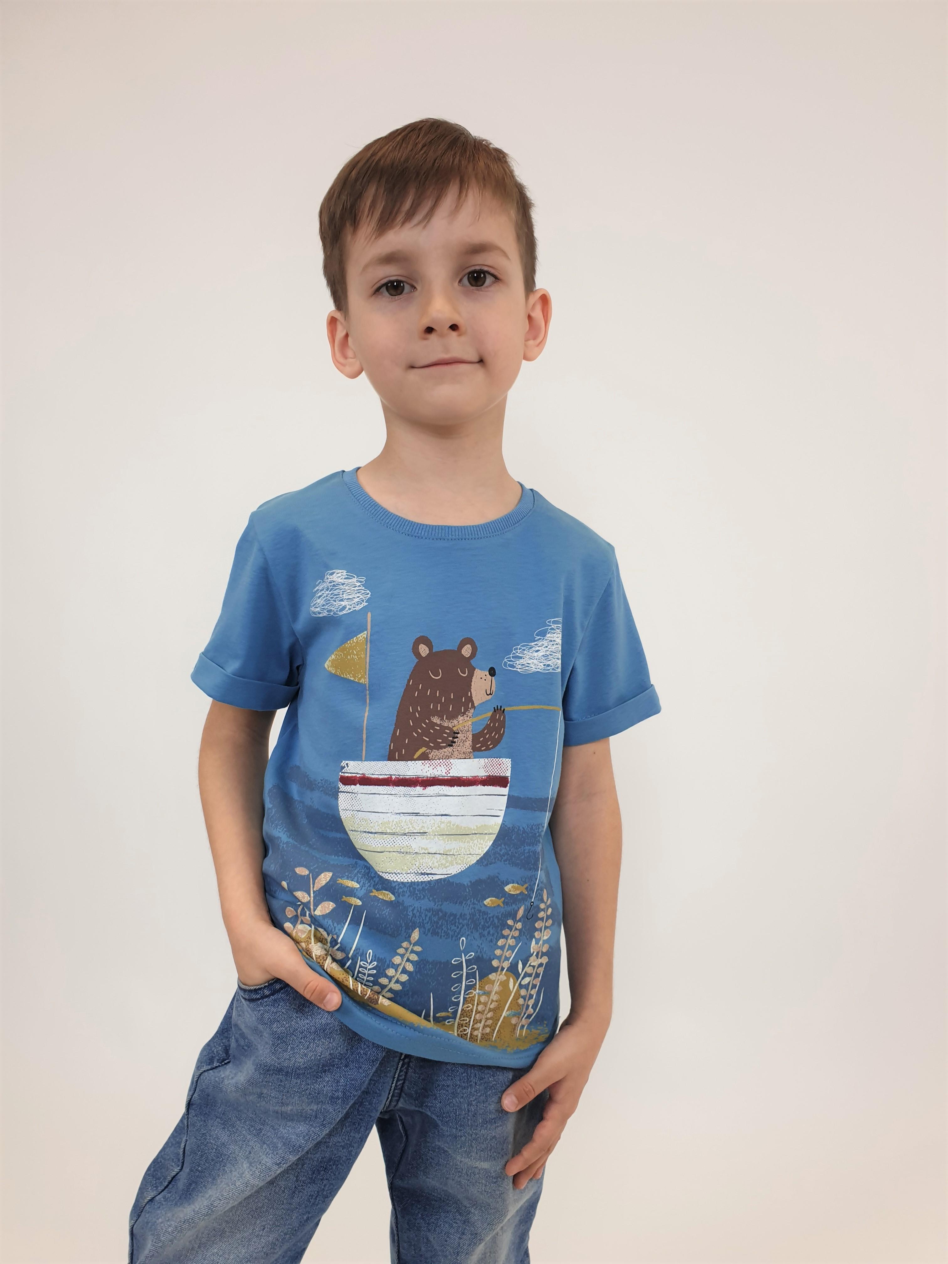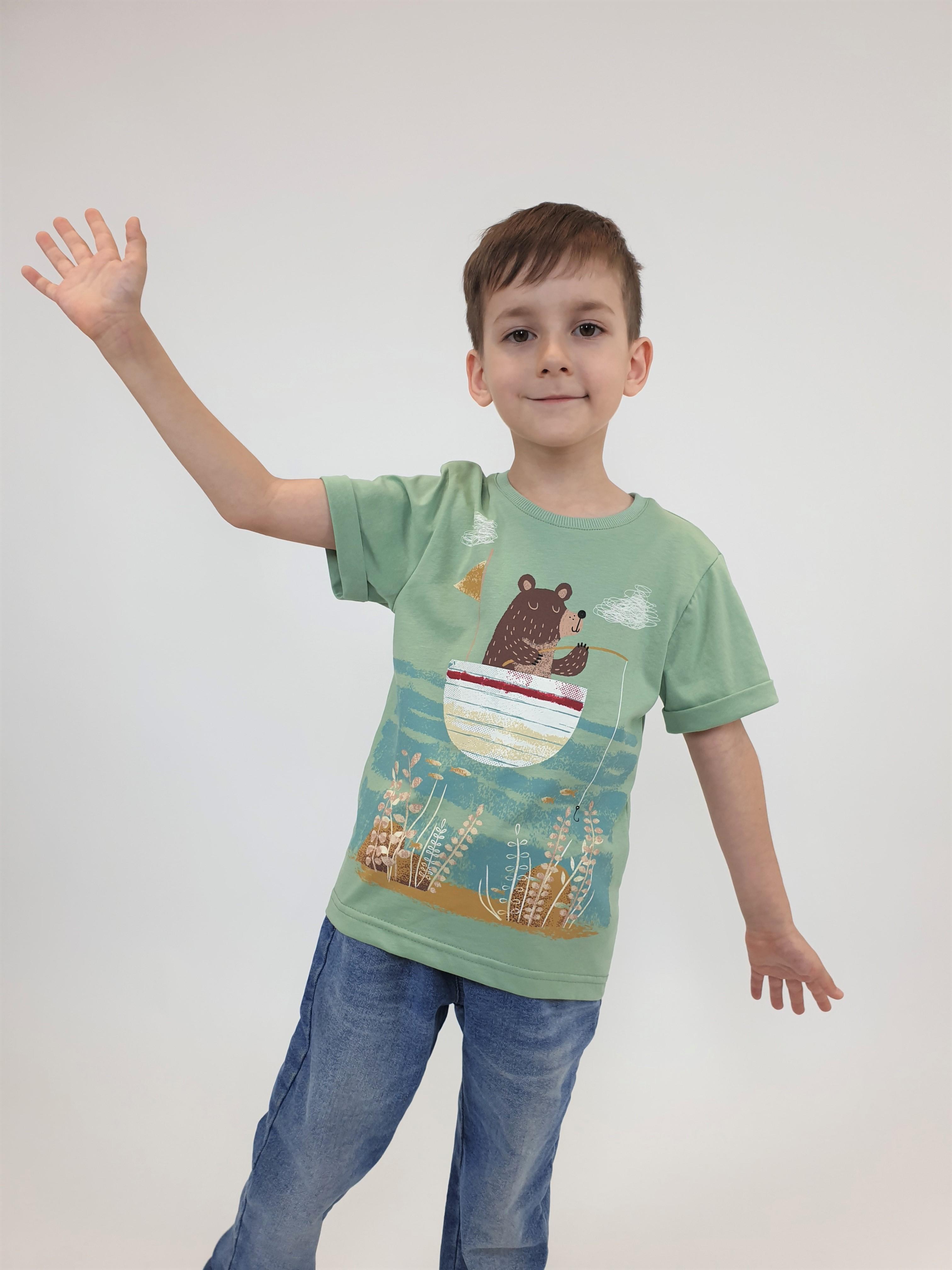 Кулирное полотно:100% х/б. Фуфайка-прямой силуэт,короткий втачной рукав с отворотом.Горловина обработана ластиком.Печать на переде и спинке.