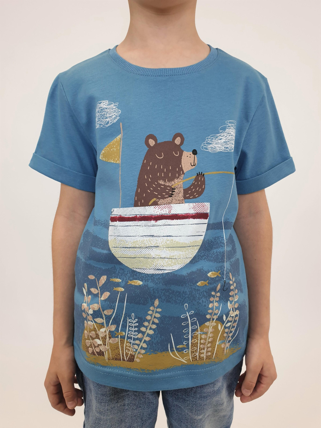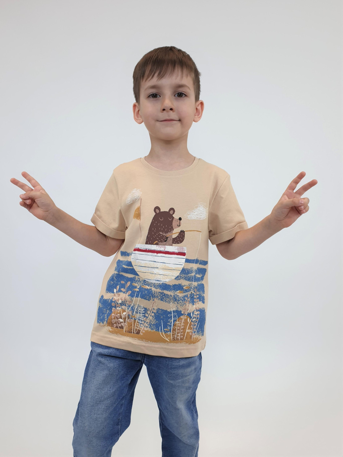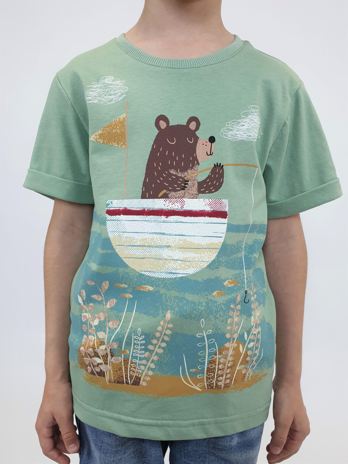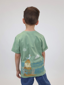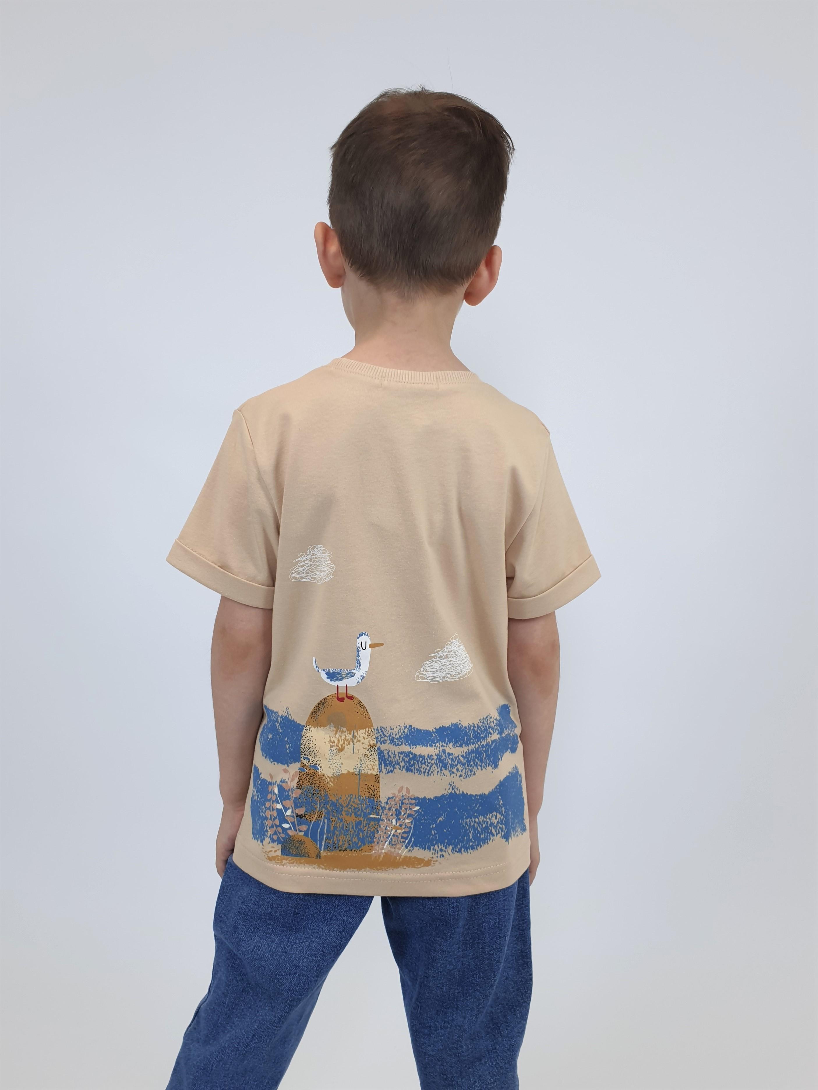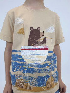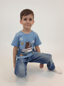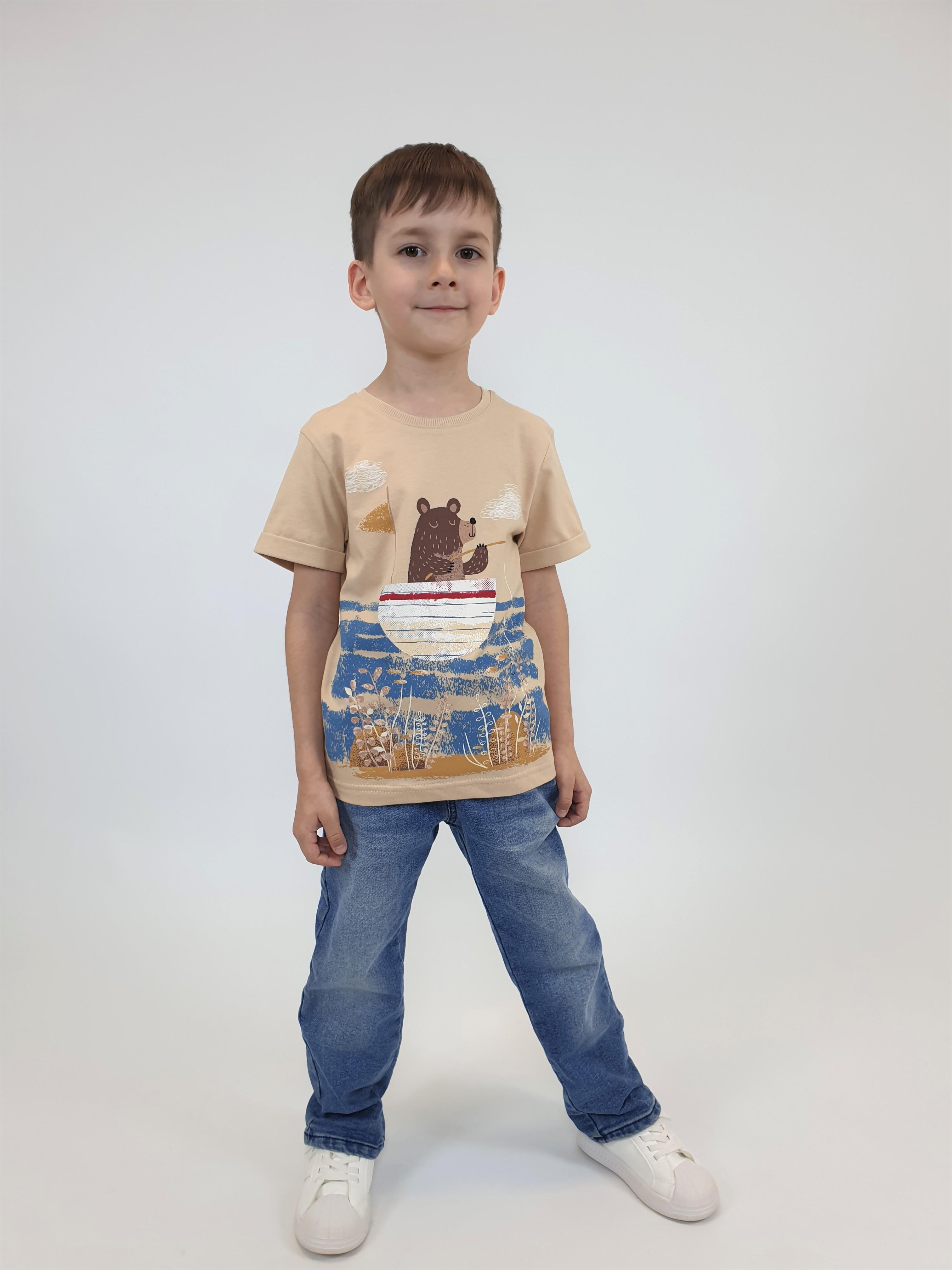 Кулирное полотно:100% х/б. Фуфайка-прямой силуэт,короткий втачной рукав с отворотом.Горловина обработана ластиком.Печать на переде и спинке.