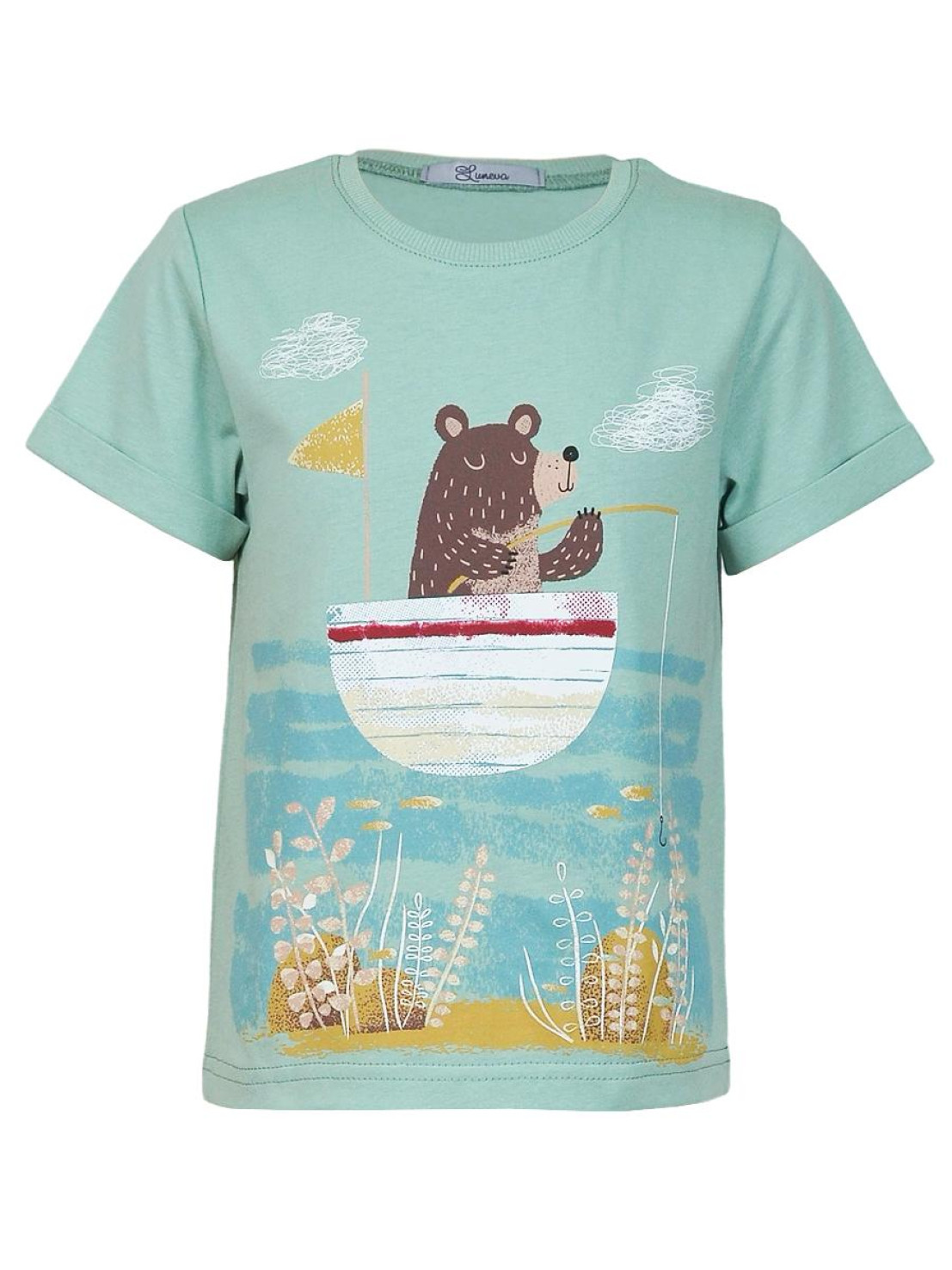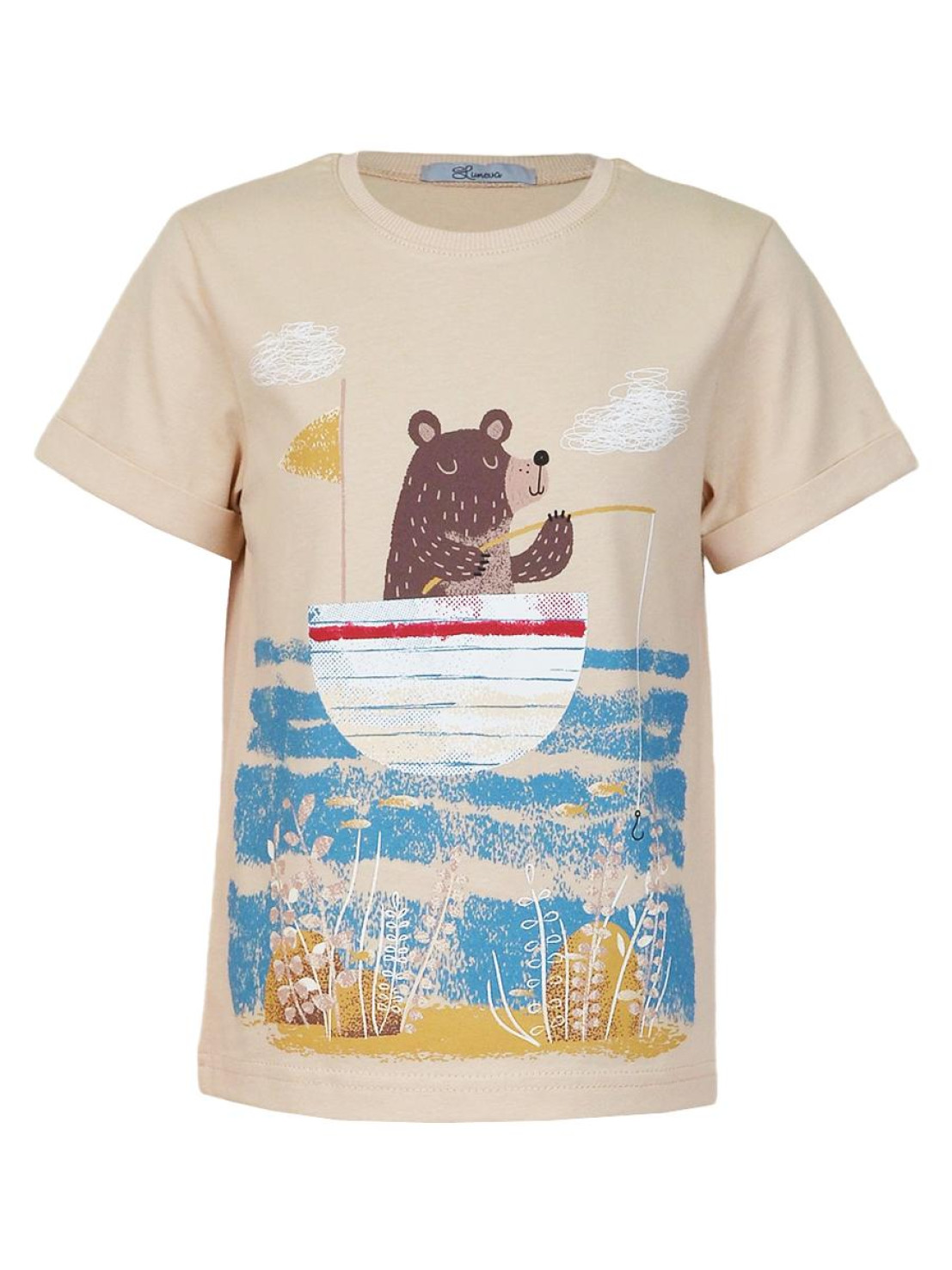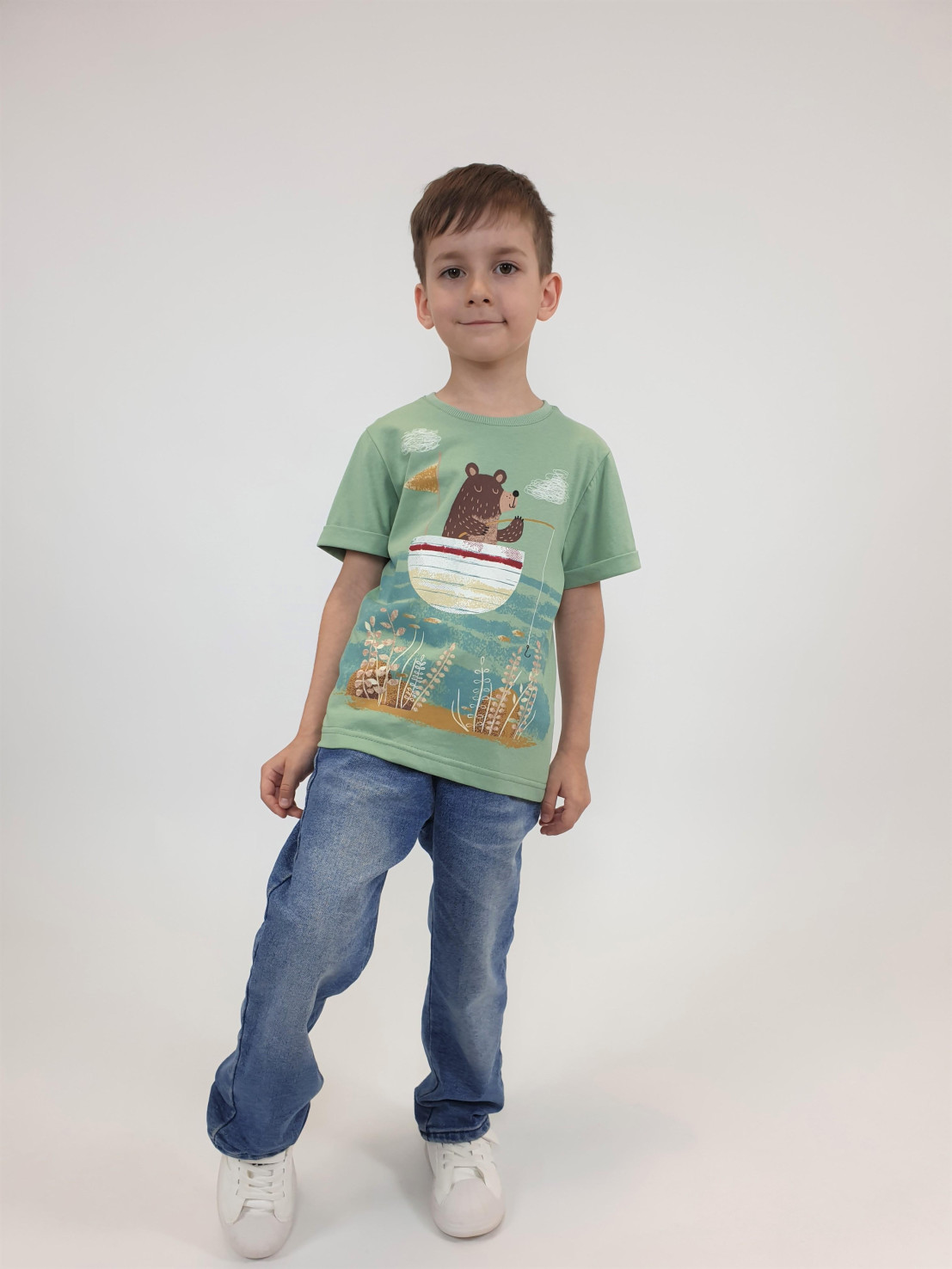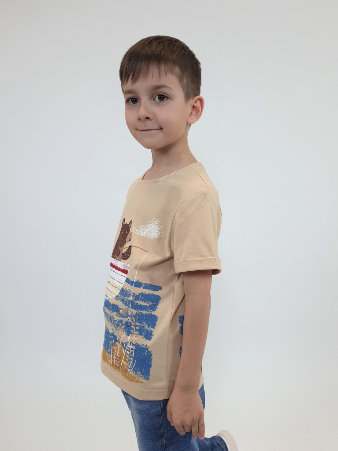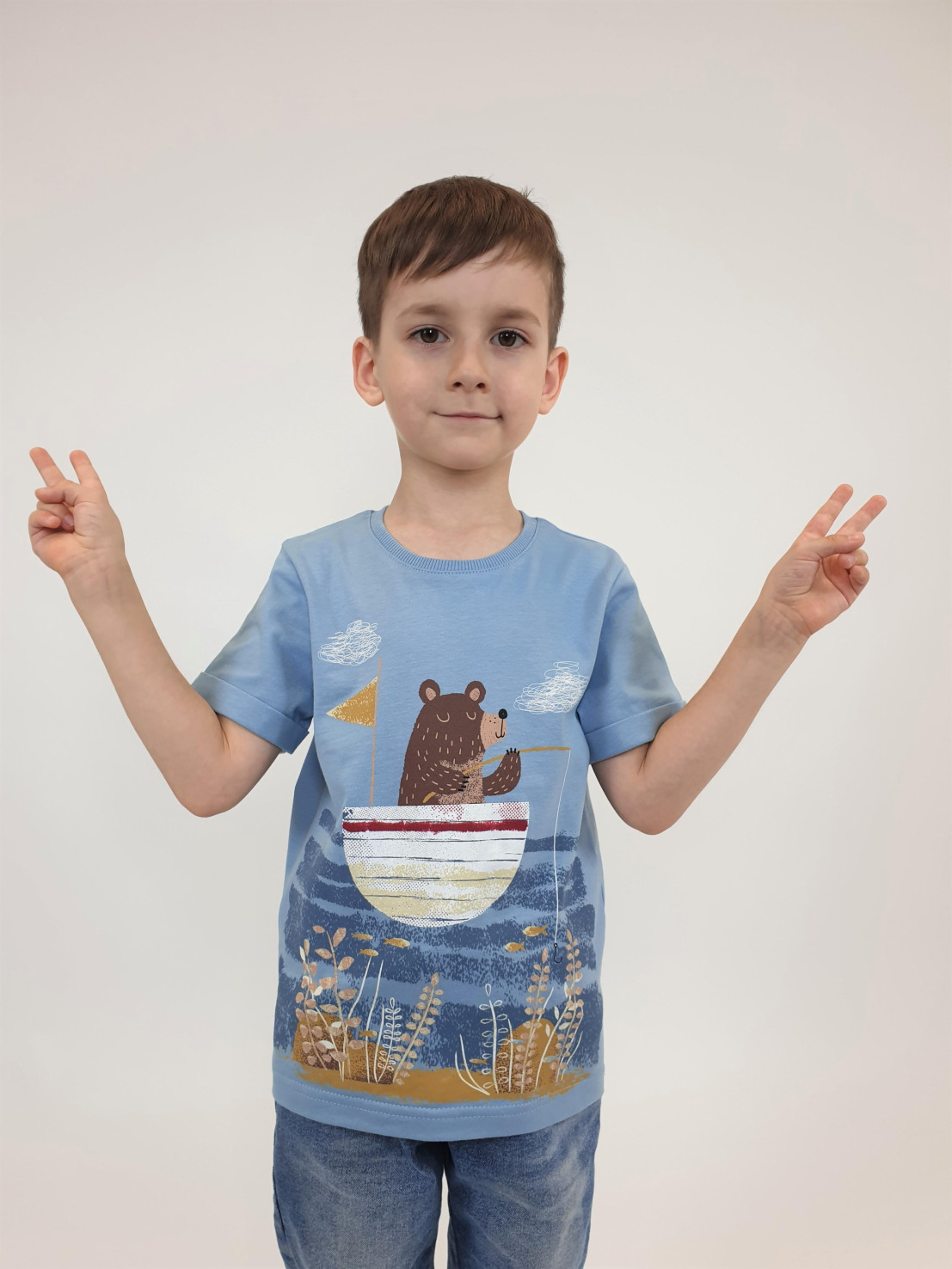Кулирное полотно:100% х/б. Фуфайка-прямой силуэт,короткий втачной рукав с отворотом.Горловина обработана ластиком.Печать на переде и спинке.