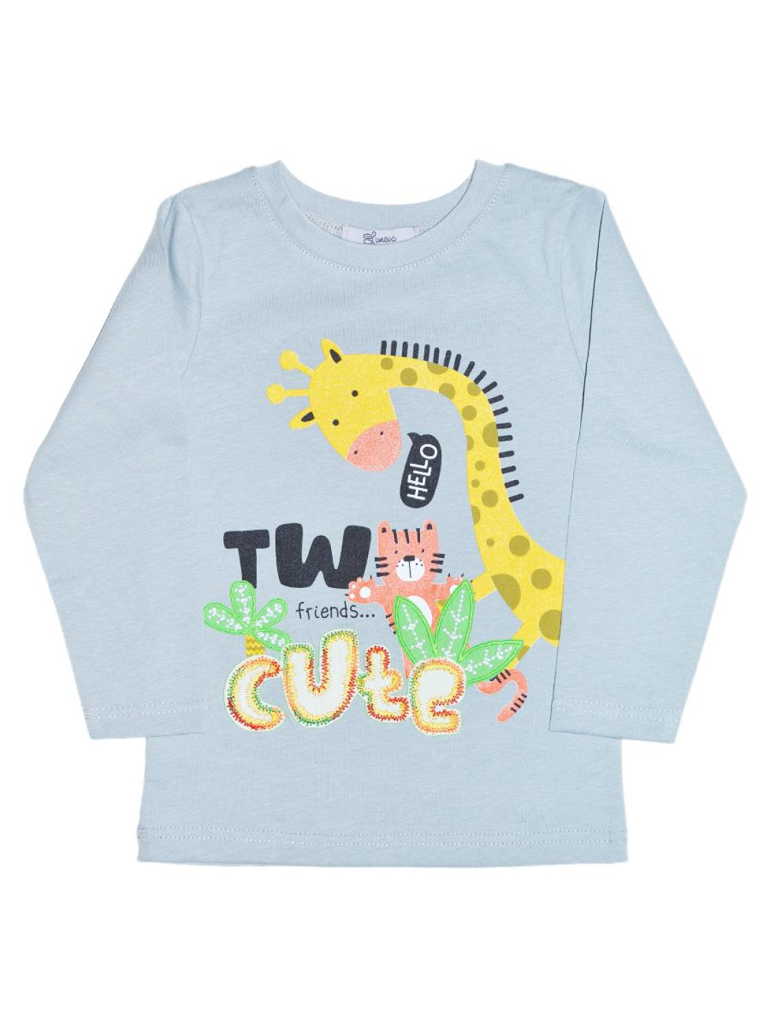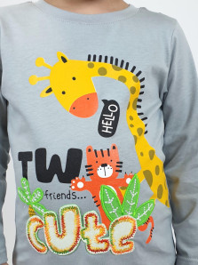 Кулирное полотно:100% х/б. Фуфайка-прямой силуэт,длинный втачной рукав.Горловина обработана ластиком.Печать и вышивка(аппликация) на переде.