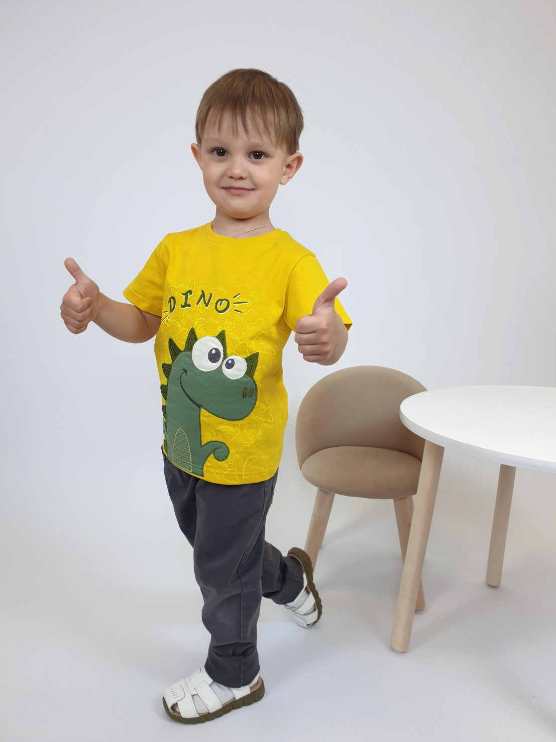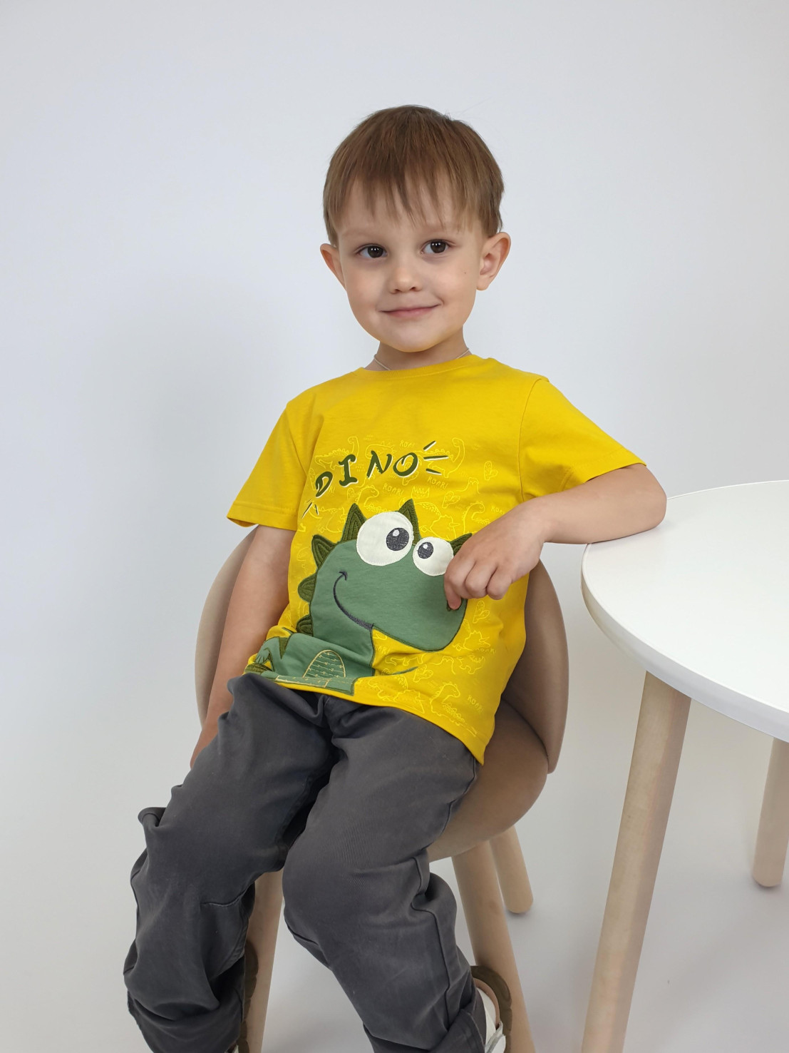 Кулирное полотно:100% х/б. Фуфайка-прямой силуэт,короткий втачной рукав.Горловина обработана ластиком.Печать и вышивка на переде.