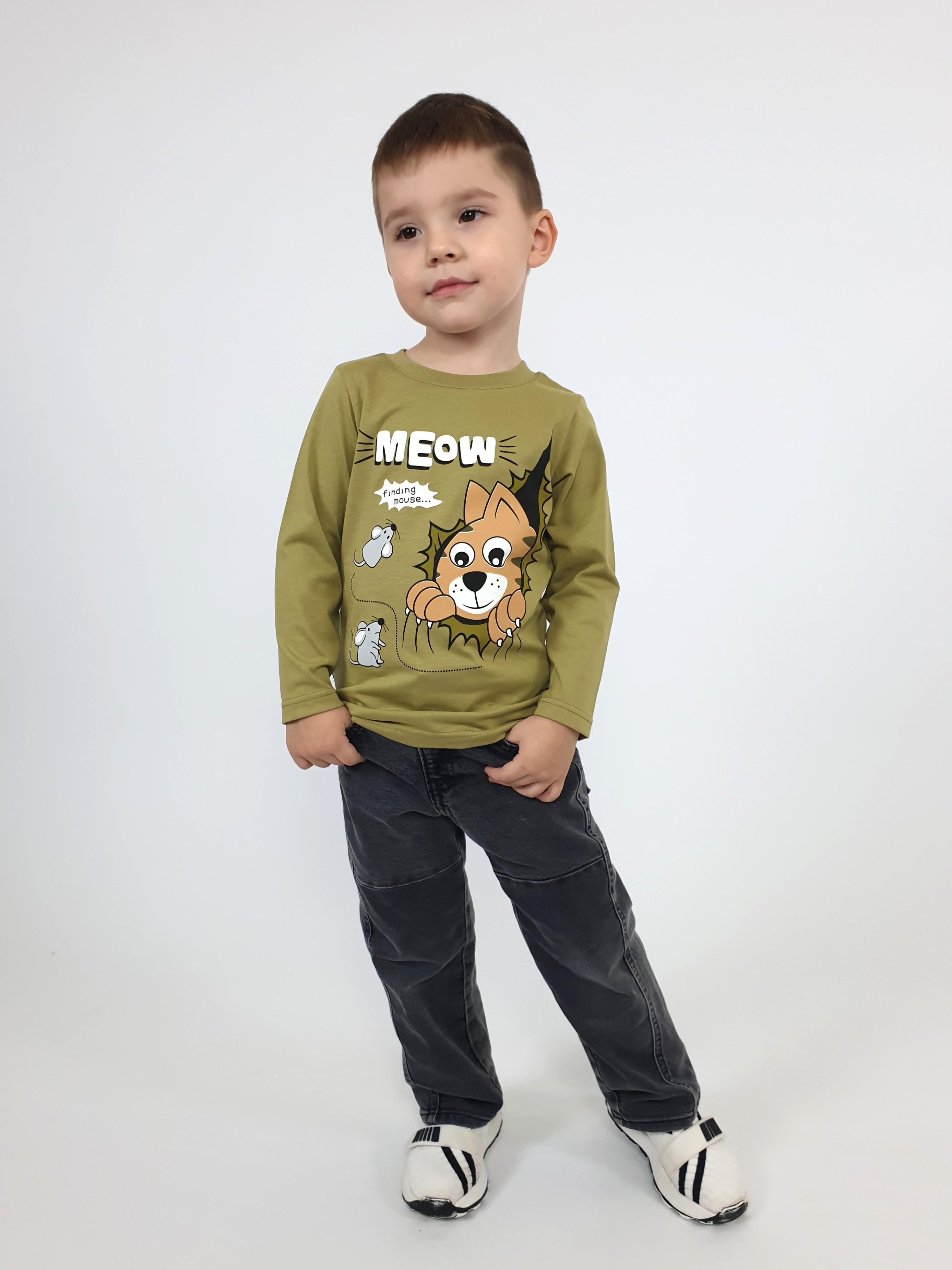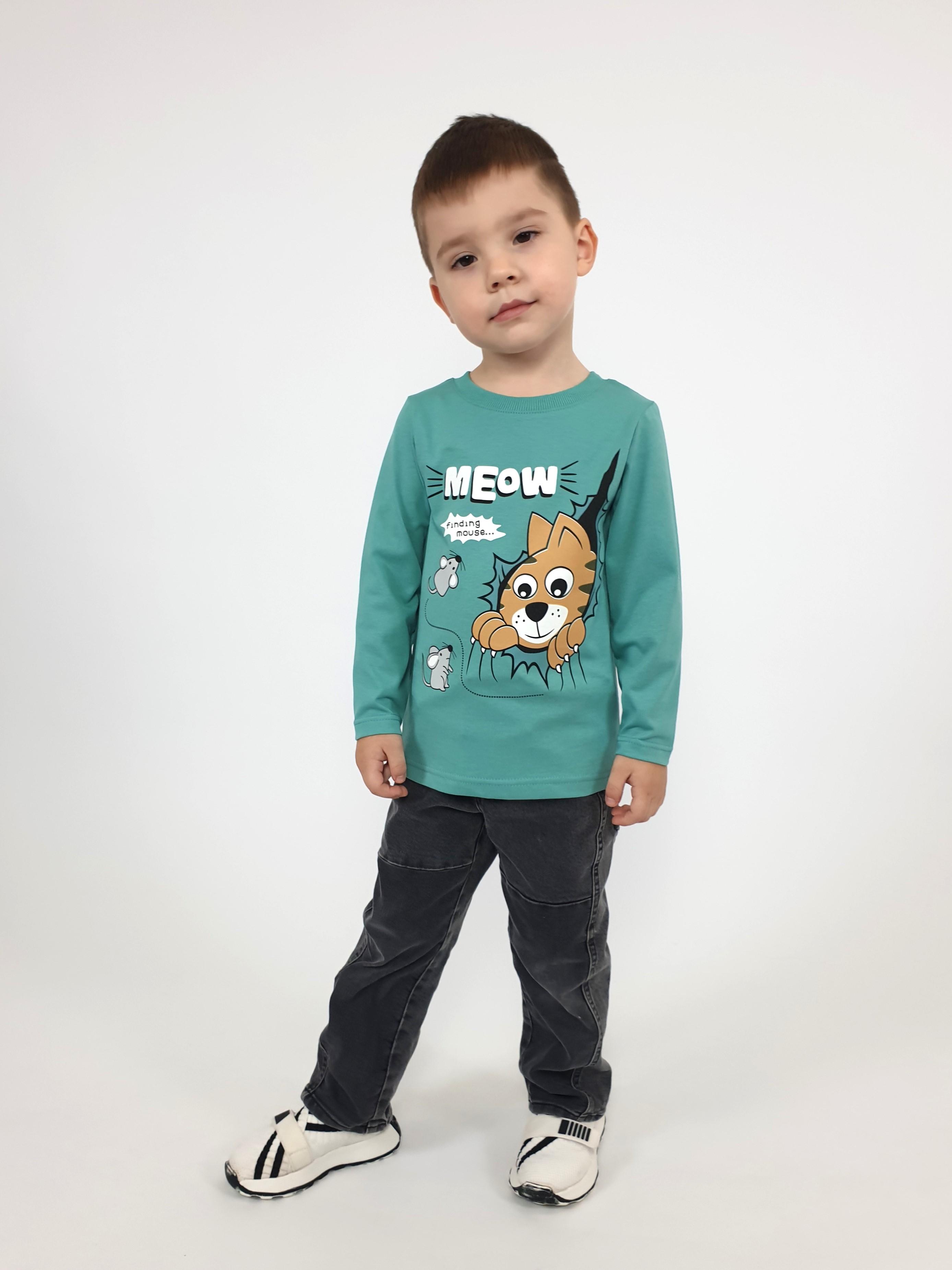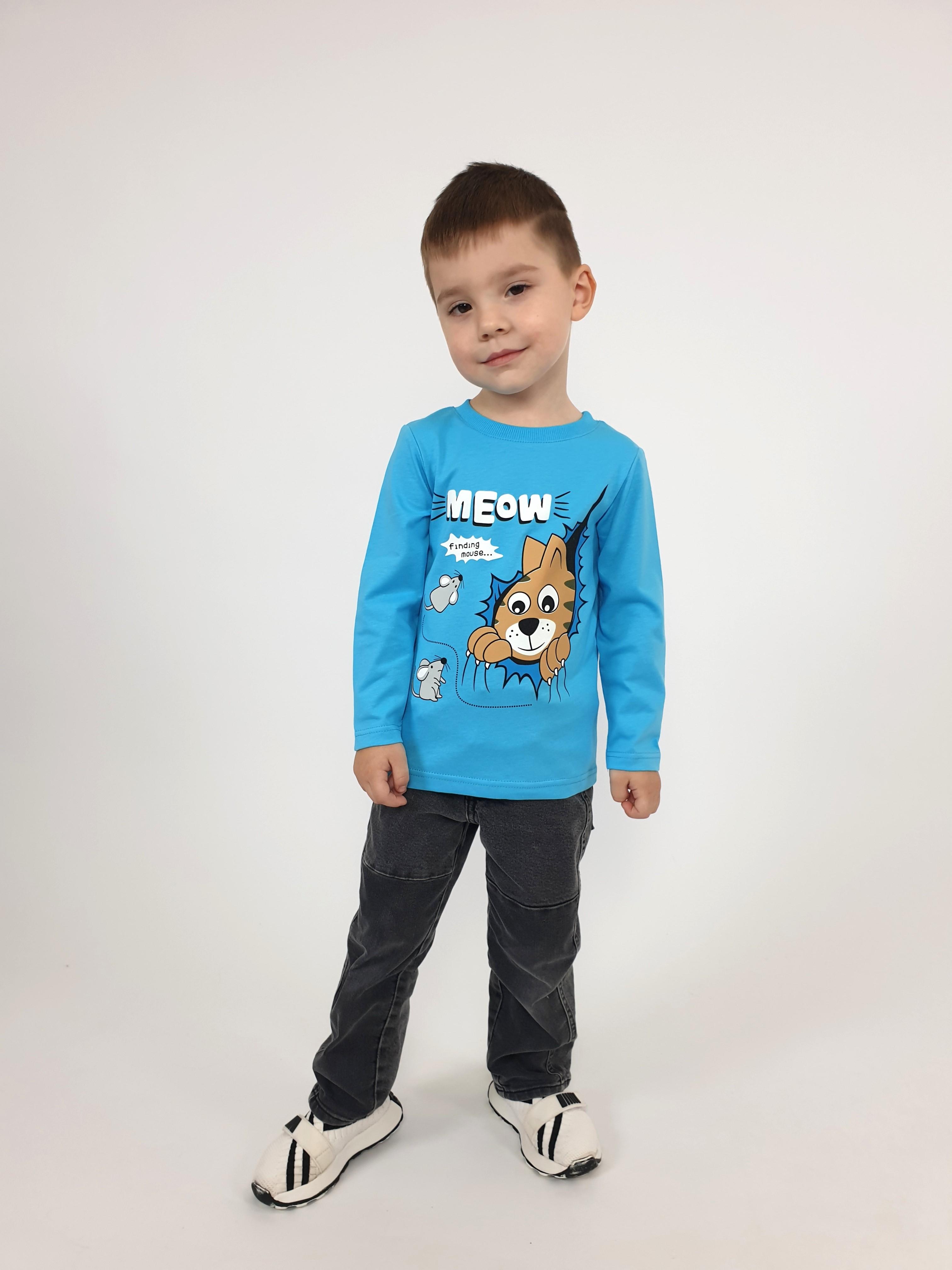 Кулирное полотно:100% х/б. Фуфайка-прямой силуэт,длинный втачной рукав.Горловина обработана ластиком.Печать на переде.