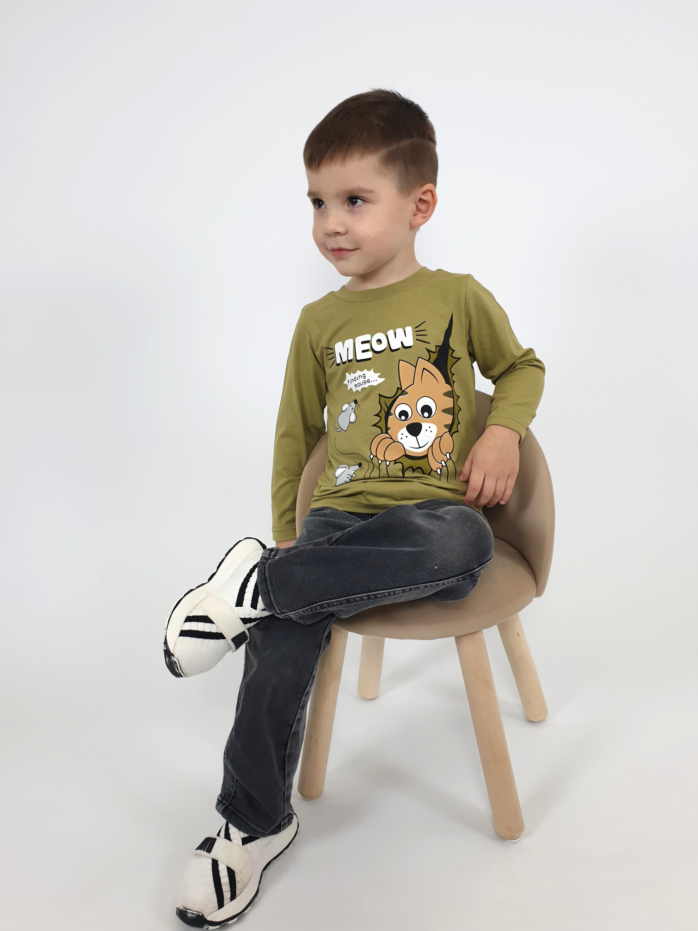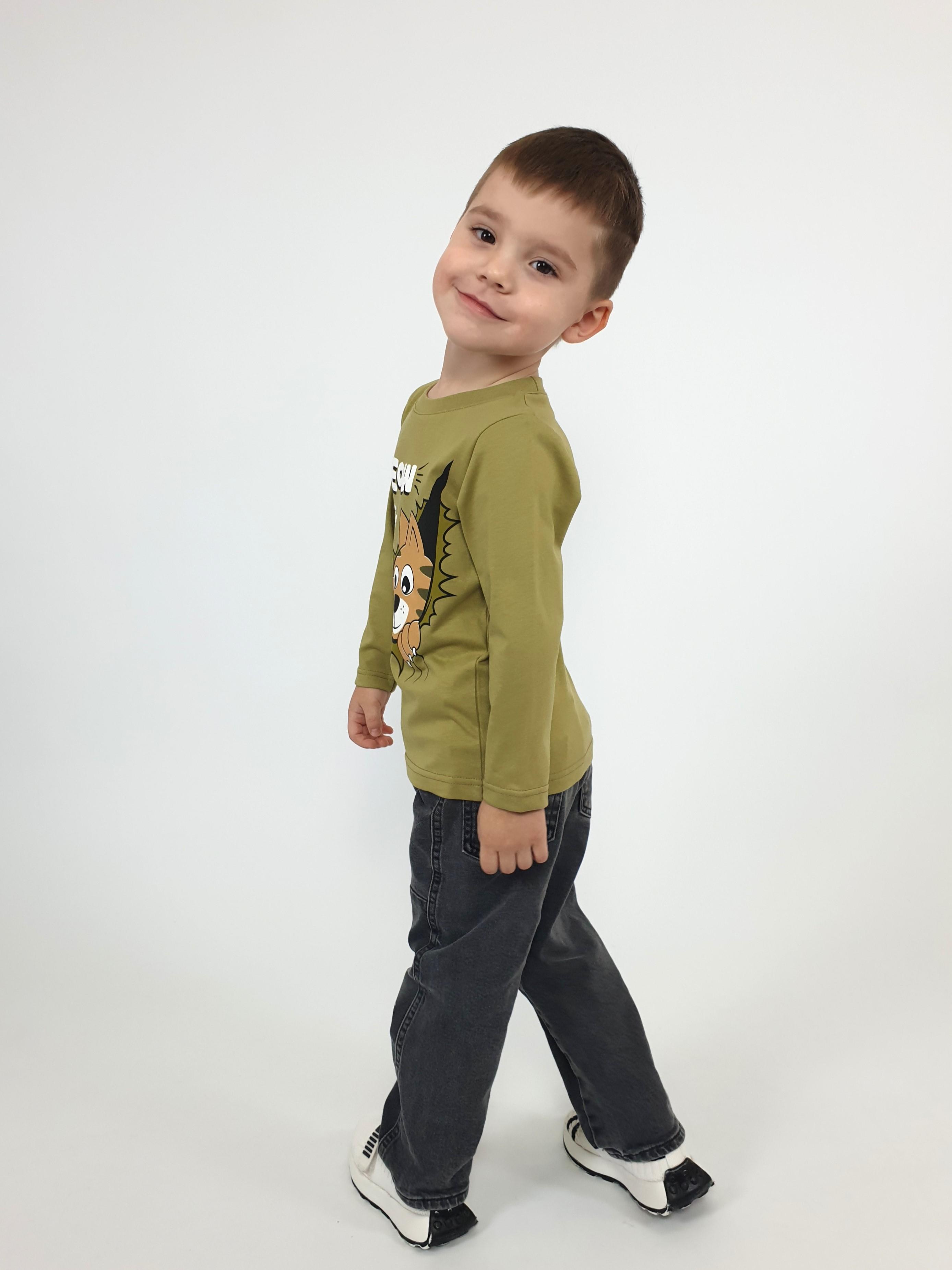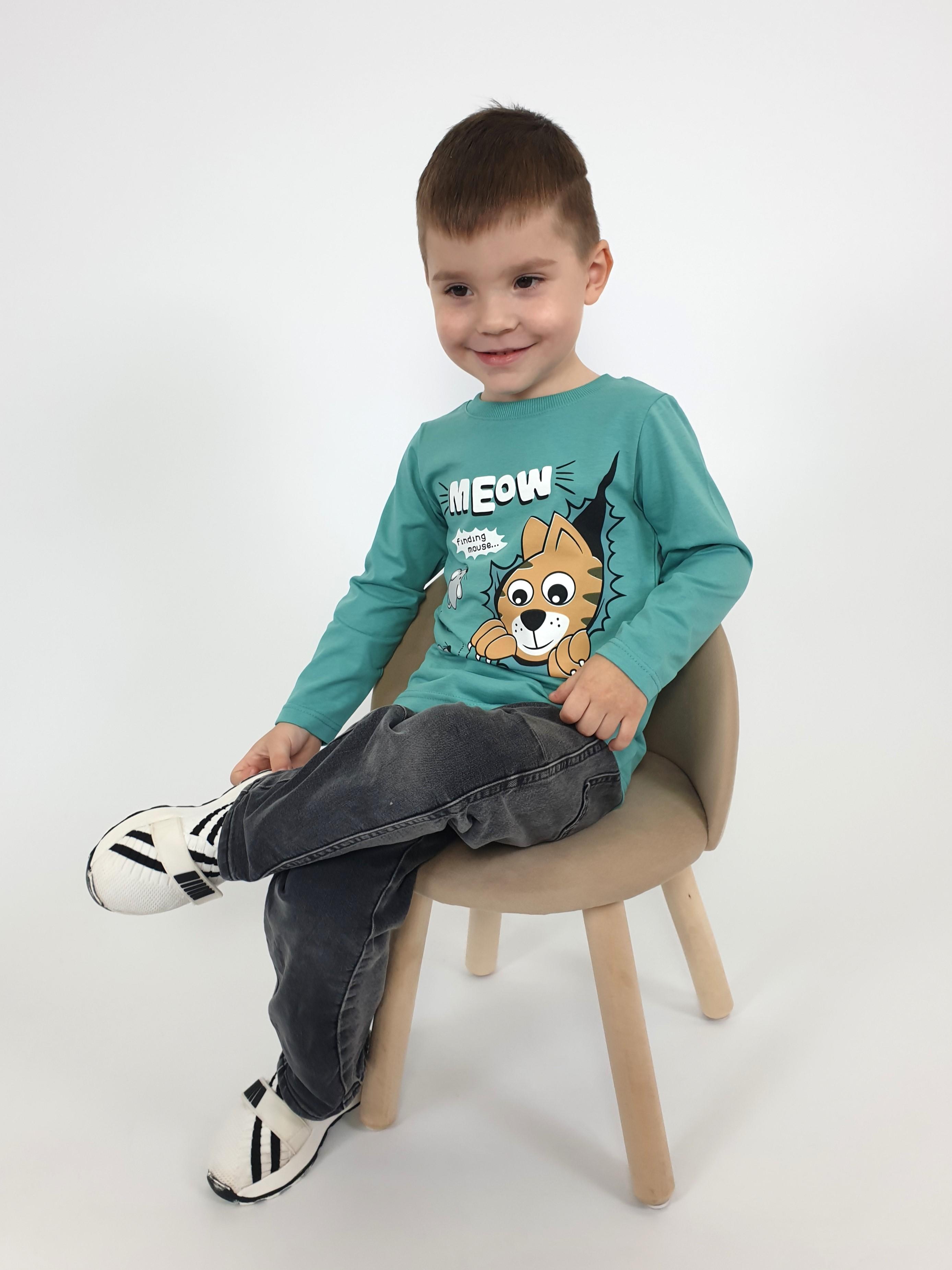 Кулирное полотно:100% х/б. Фуфайка-прямой силуэт,длинный втачной рукав.Горловина обработана ластиком.Печать на переде.