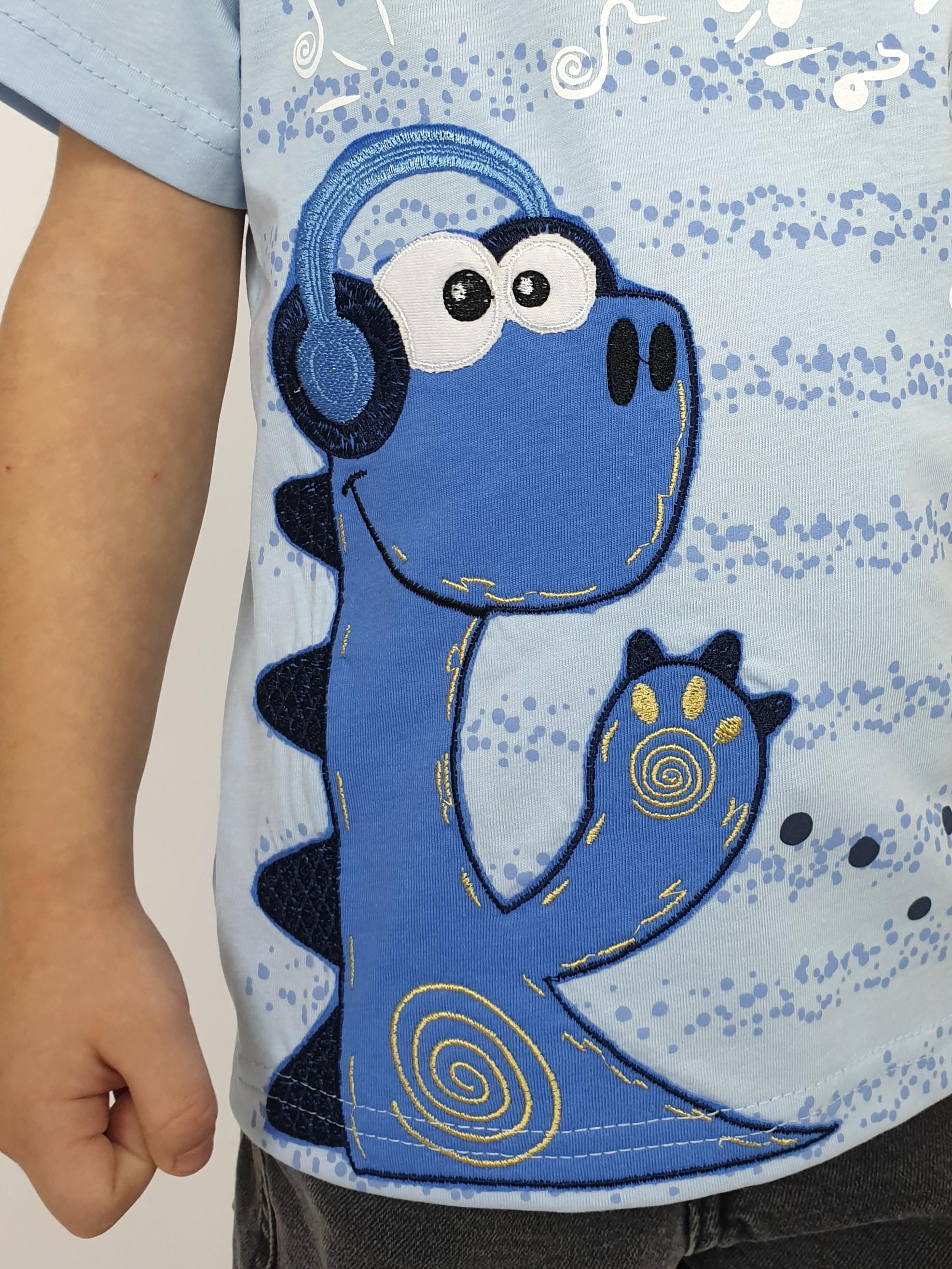 Кулирное полотно:100% х/б. Фуфайка-прямой силуэт,короткий втачной рукав.Горловина обработана ластиком.Печать и вышивка на переде.