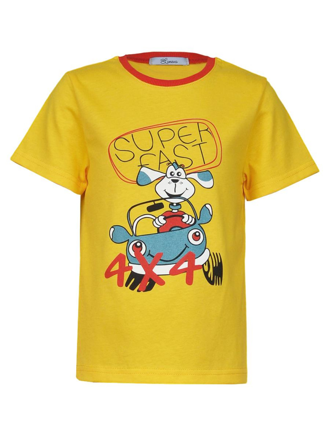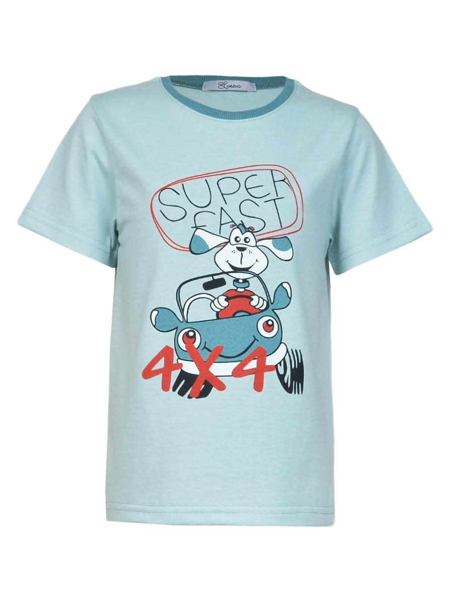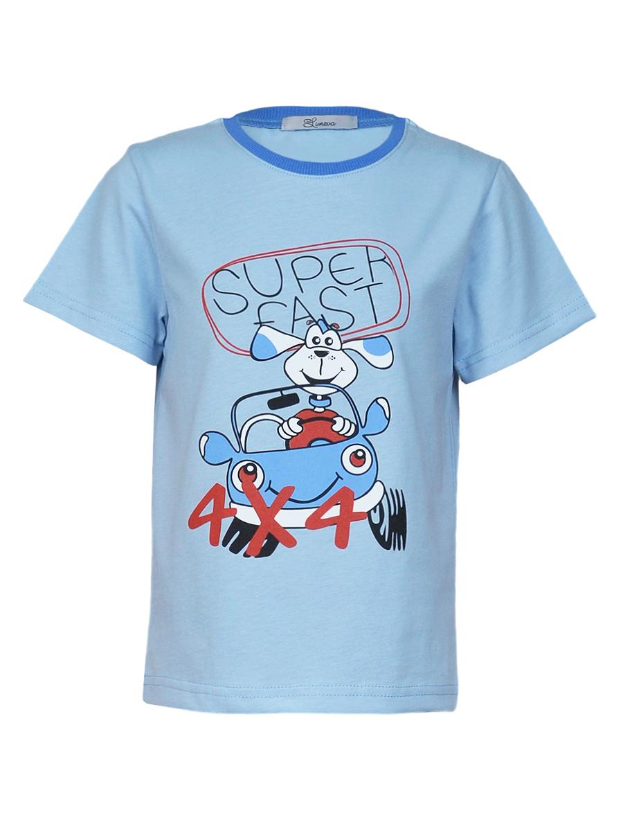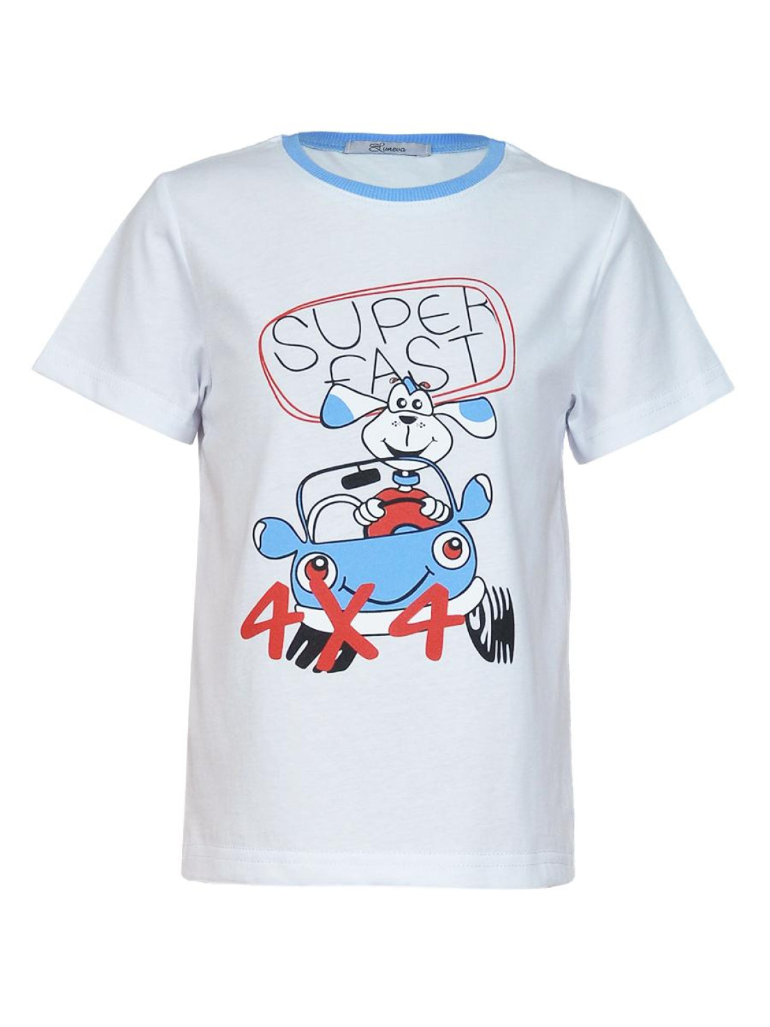 Кулирное полотно:100% х/б. Фуфайка-прямой силуэт,короткий втачной рукав.Горловина обработана ластиком контрастного цвета.Печать на переде.