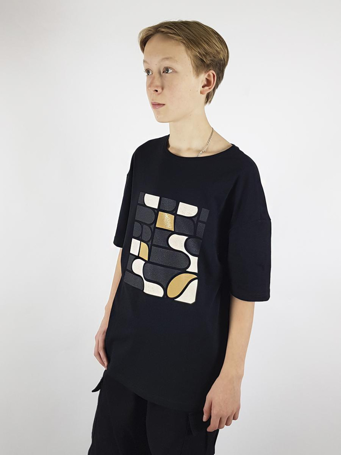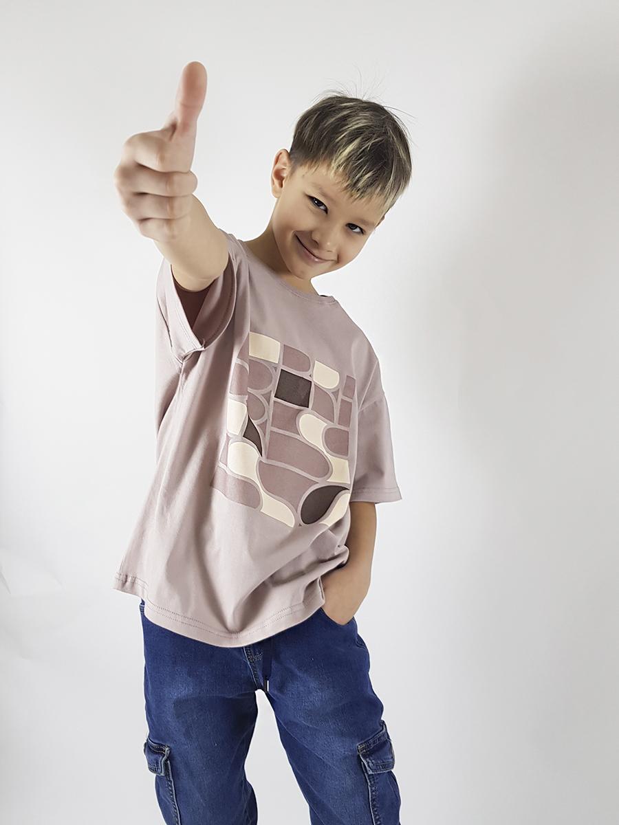 Кулирное полотно: 100% х/б. Футболка(оверсайз)-прямой силуэт,спущенное плечо,короткий рукав,перед и спинка с печатью.Горловина обработана ластиком. Низ изделия и рукава подшиты.